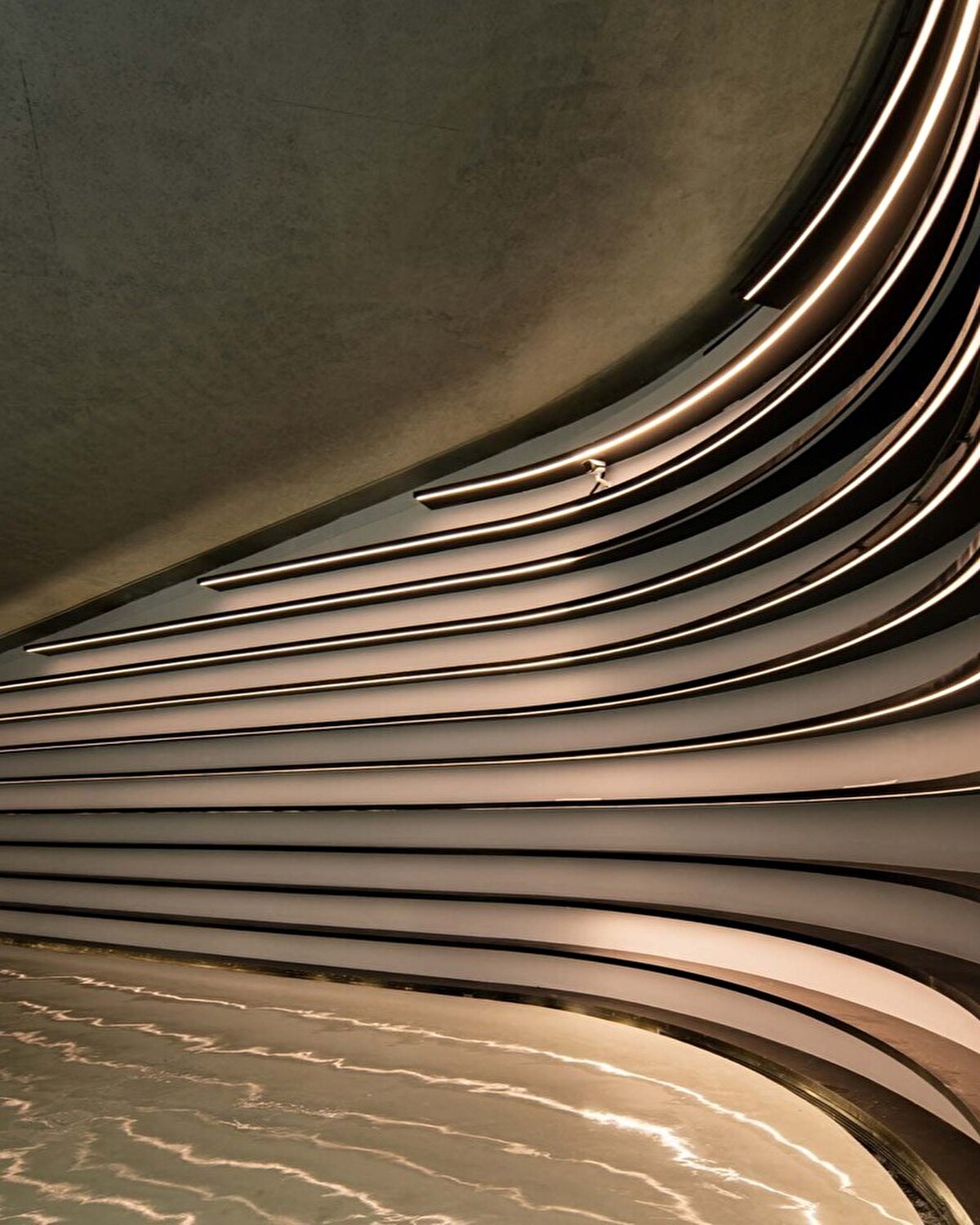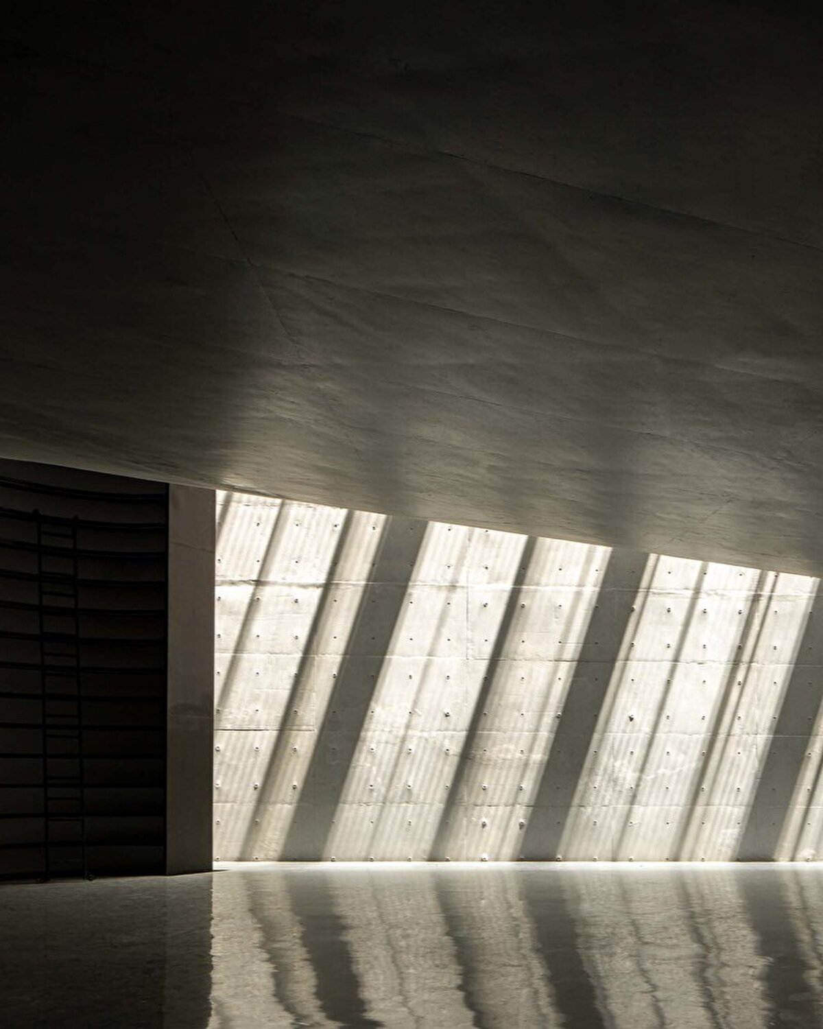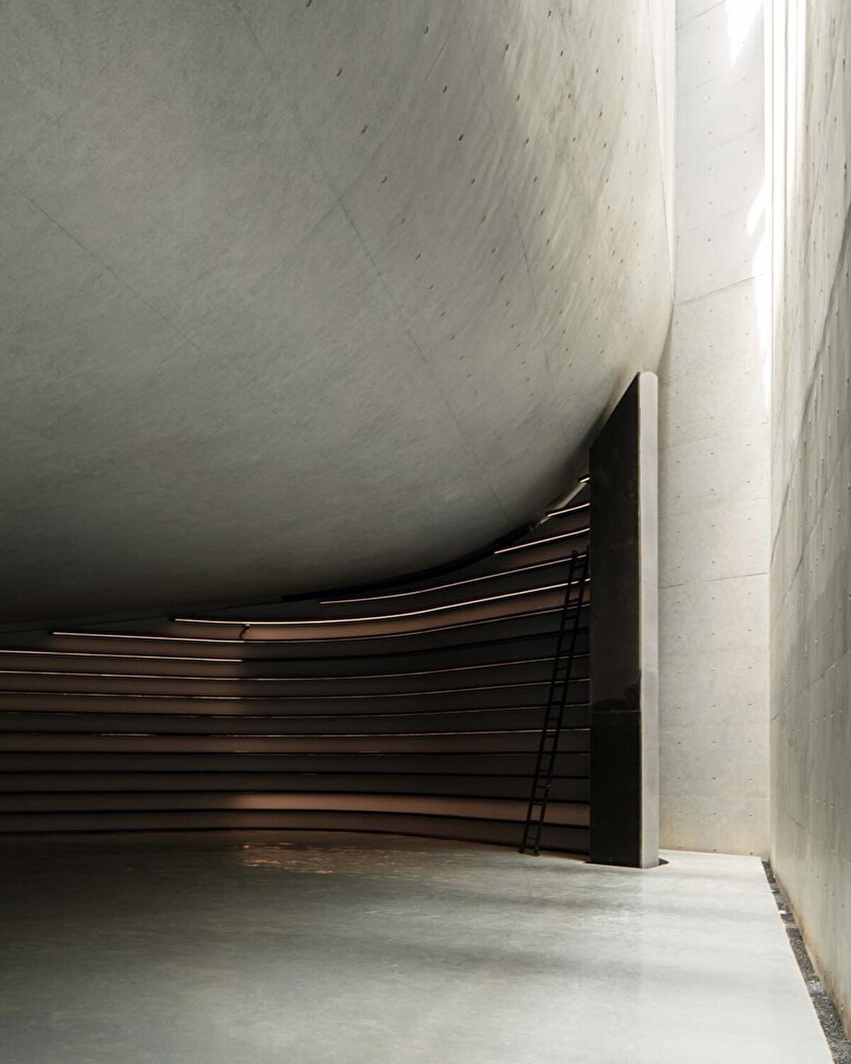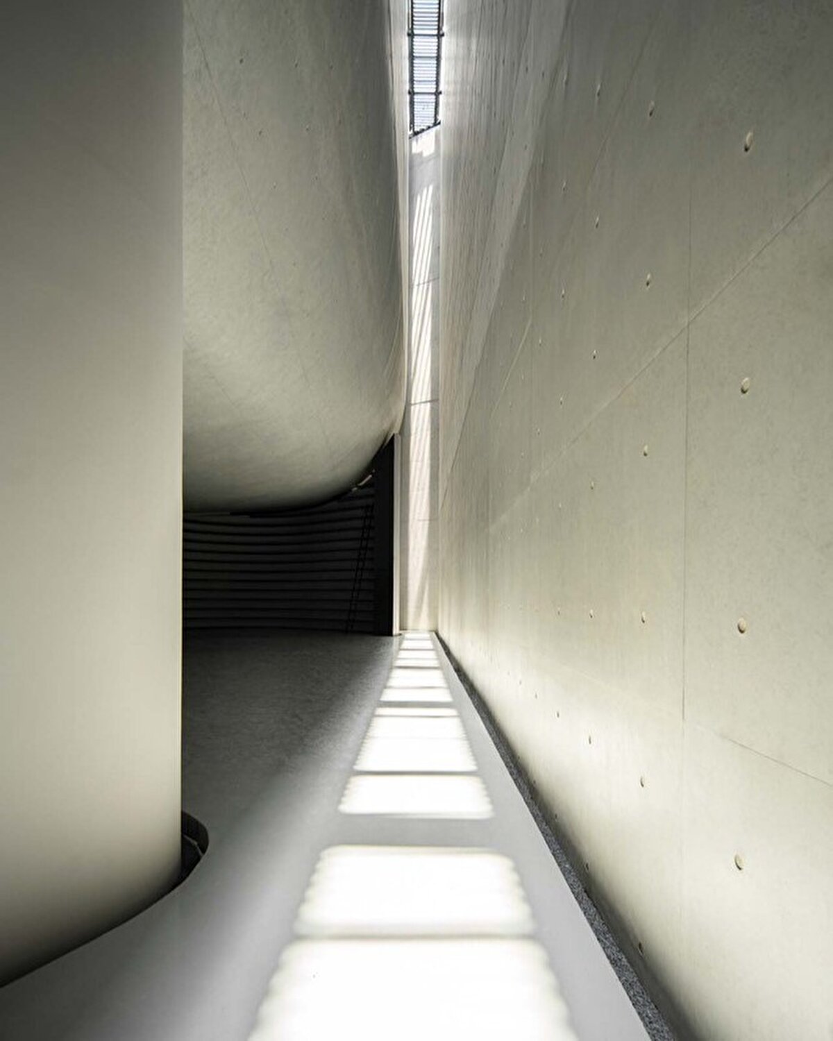 İç mekanda, beton duvarlar ve çatı arasında 24 metre yüksekliğinde bir yarıktan gelen güneş ışığı, Gotik bir kiliseyi andıran sakin ve yüksek bir atmosfer oluşturuyor. Bu alan, insanları sessizliğe, okumaya ve düşünmeye davet ediyor.