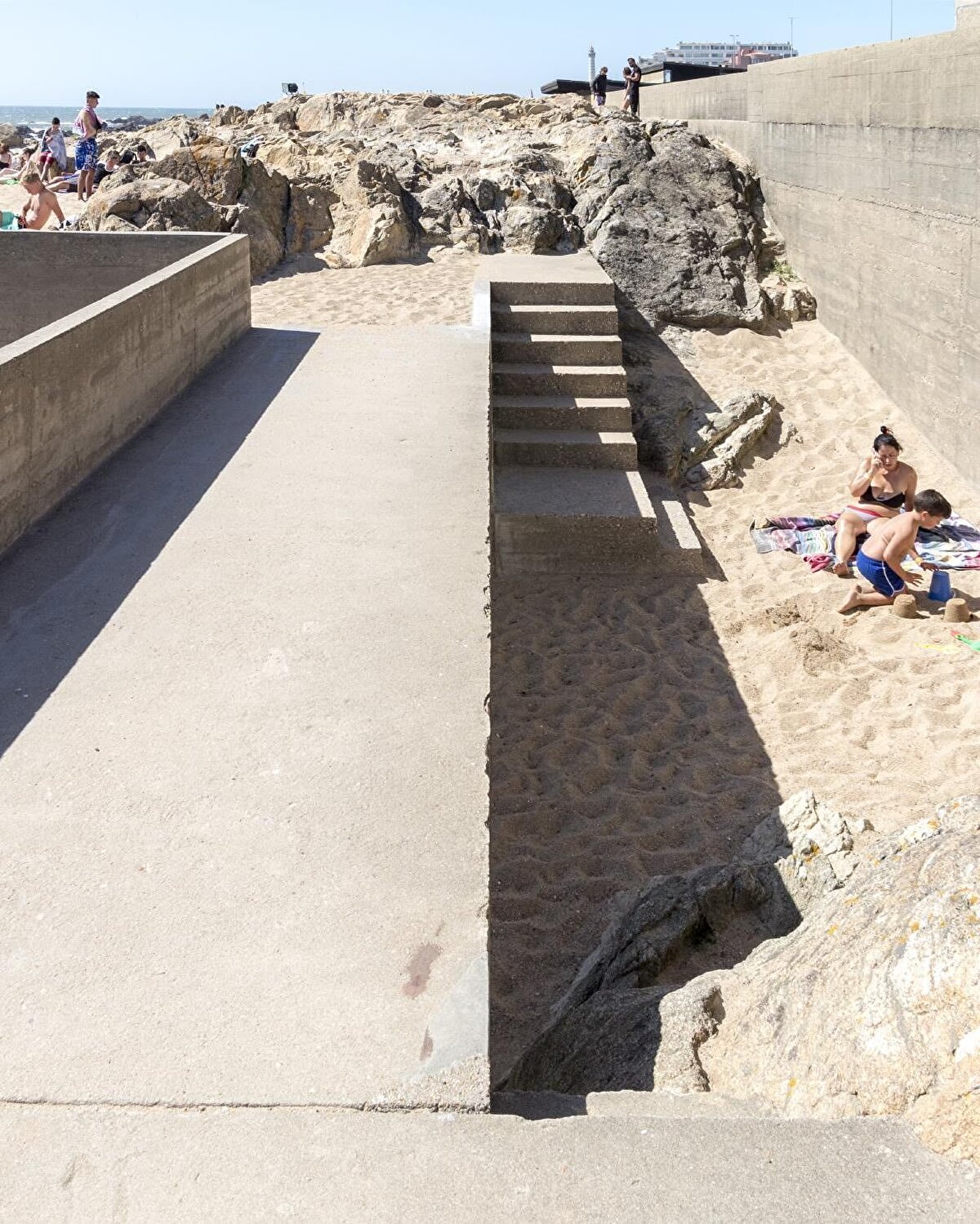 Yapının sınırları, manzarayı kesmeden alan kullanımını yönlendiriyor. Geometrik çizgiler ile doğal dokular arasındaki karşıtlık, yapı ile çevresi arasında bir etkileşim oluşturuyor. Piscina das Marés, kıyı peyzajına entegre bir kamusal alan olarak varlığını sürdürüyor. __