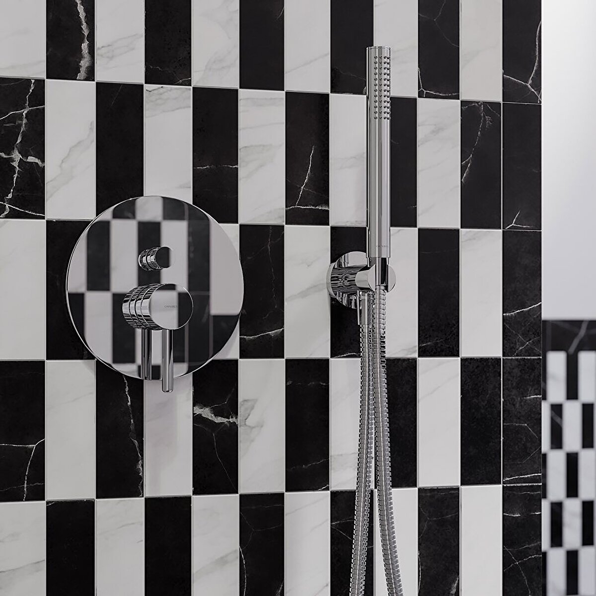 Bauhaus'un minimalist ve işlevsel anlayışını siyah-beyaz ağırlıklı bir yaklaşımla yorumlayan OMNIRES, tasarımı 'maksimalist banyo' olarak tanımlıyor.