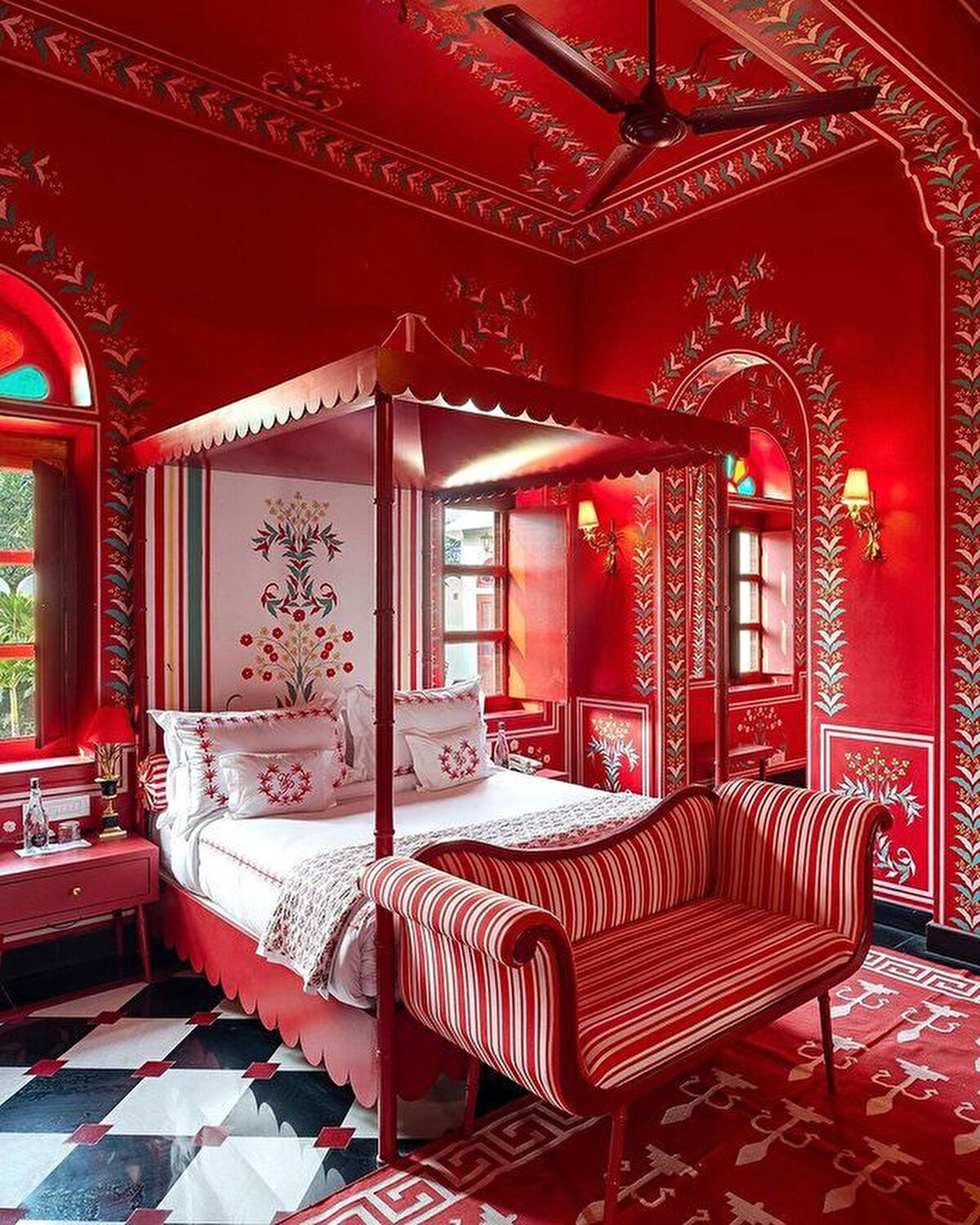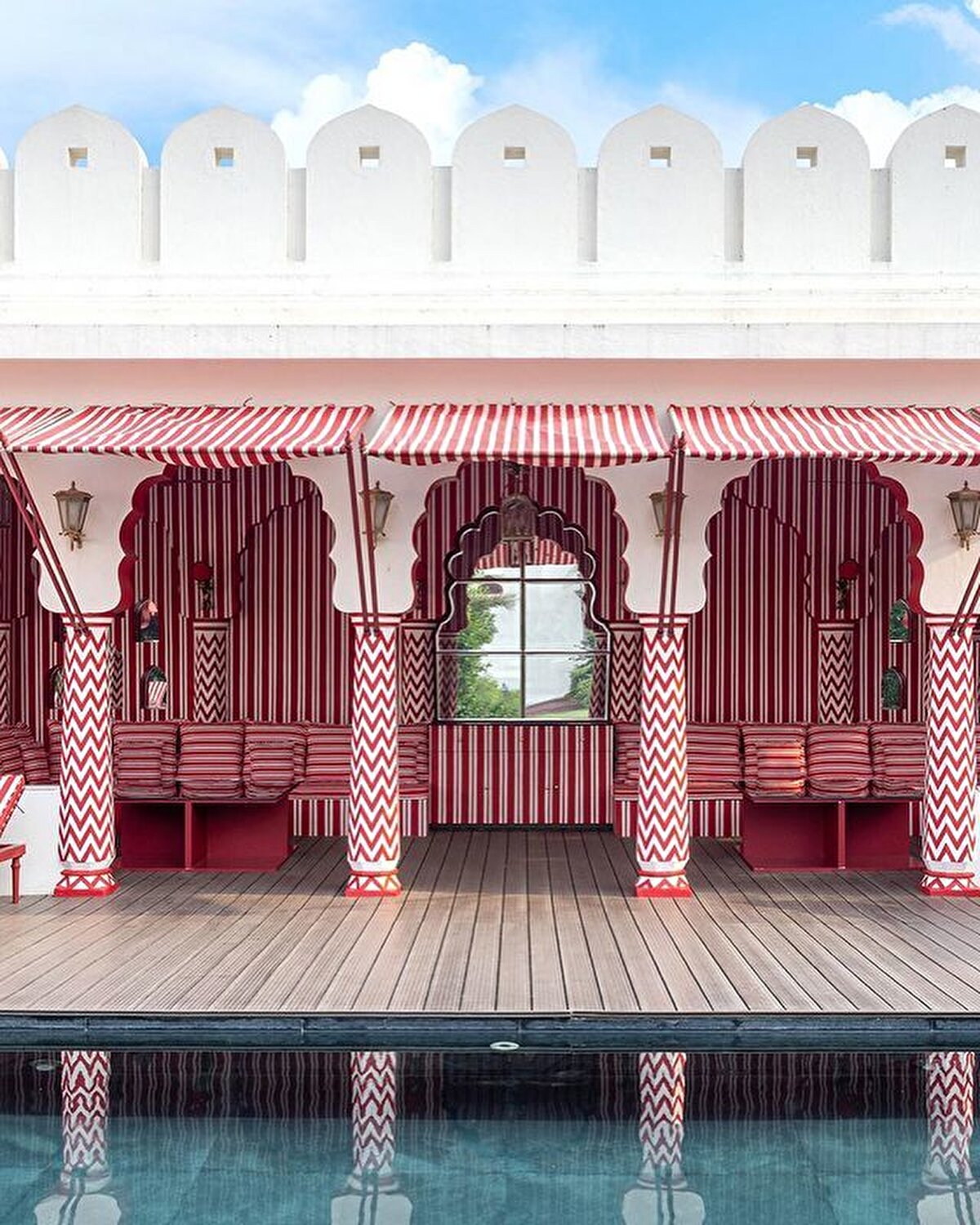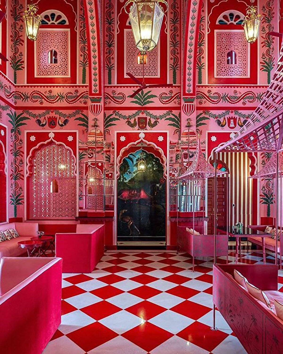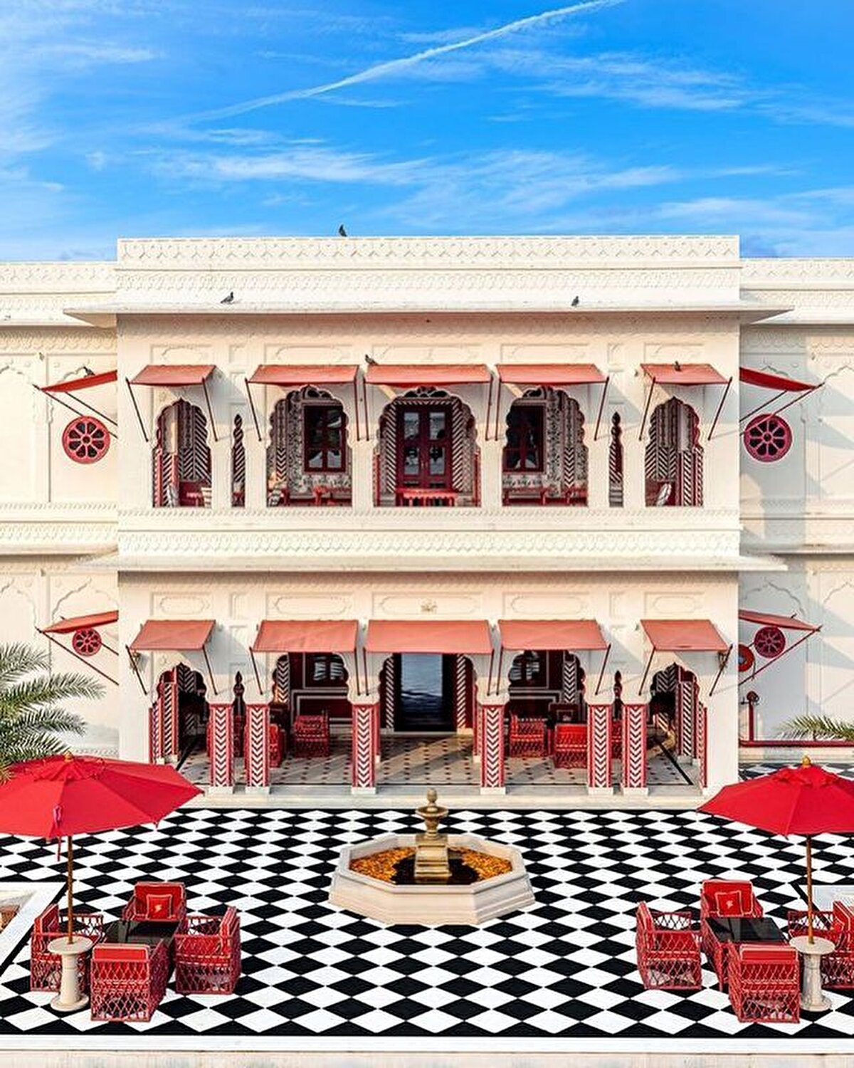 A living example of maximalism, the boutique hotel is located close to the Rajasthani capital. India's history inspired entrepreneur @barbara_miolini and Dutch designer Marie Anne Oudejans (@m.a.jaipur) to choose the colours and patterns for the interiors of the nine-room hotel. Built in the 1980s, it has been recently renovated and is now open to visitors, its structure characterised by multi-columned arches and layers of ornamentation.