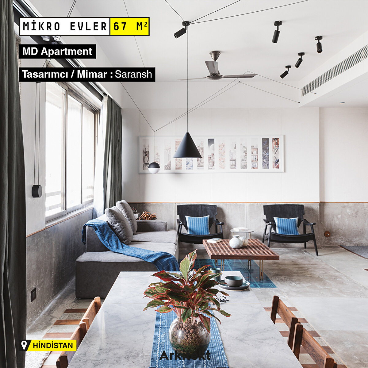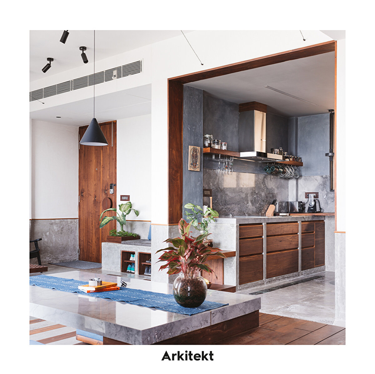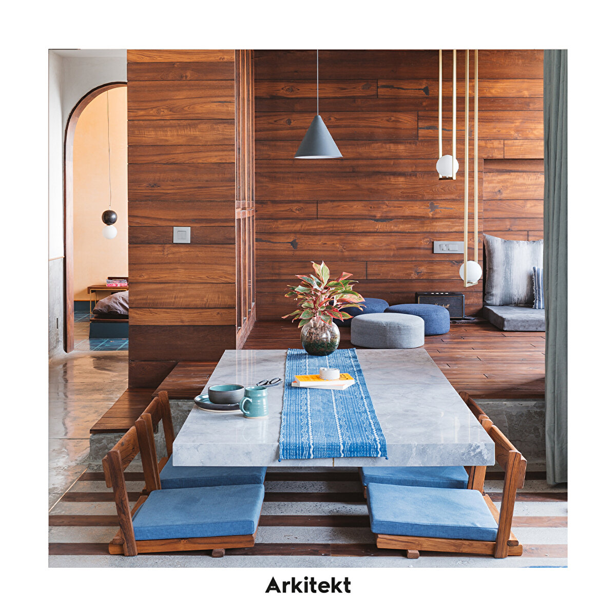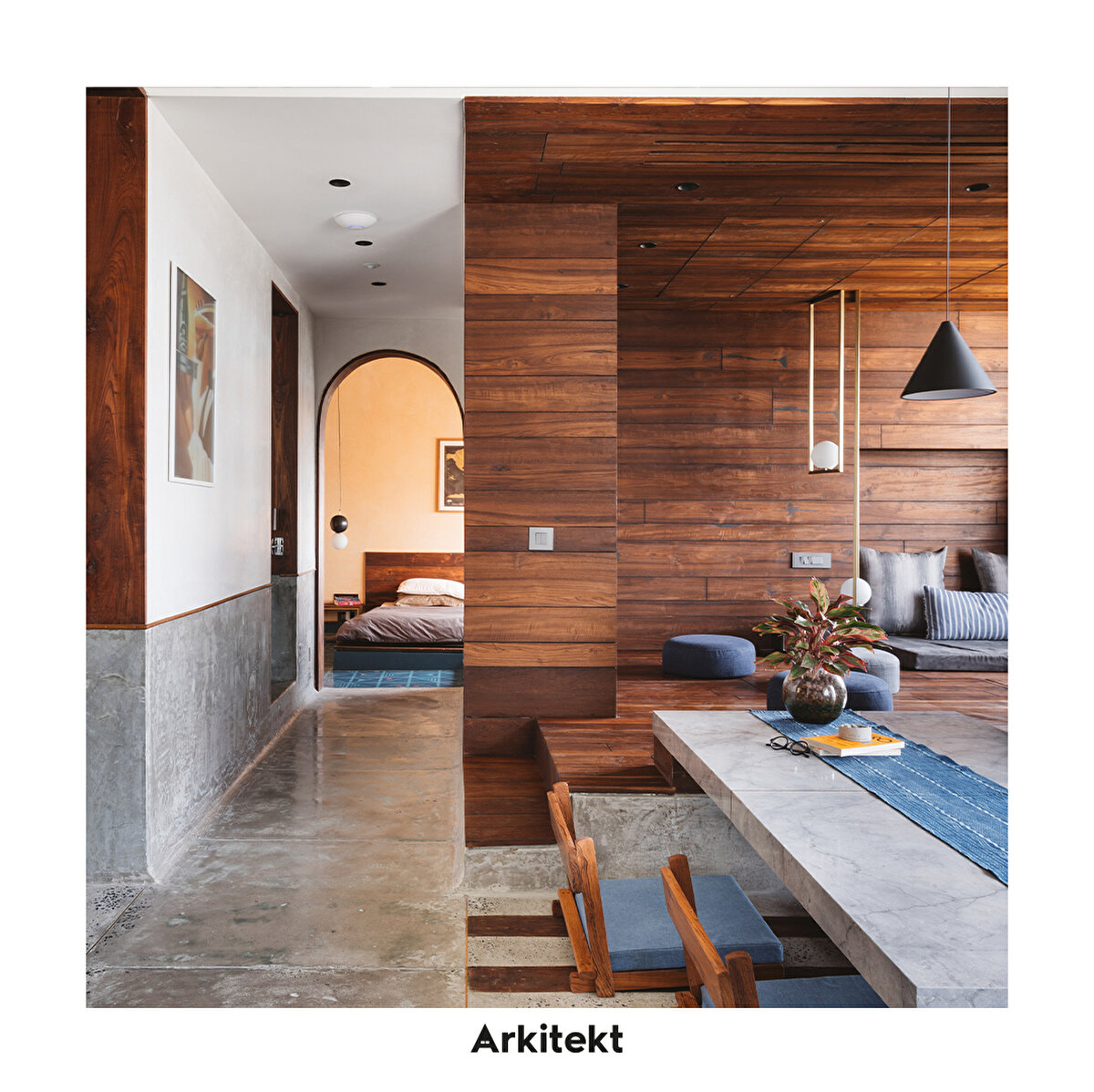 @studio_saransh, iç mekandaki malzeme kullanımlarıyla ön plana çıkan bir konut tasarladı.