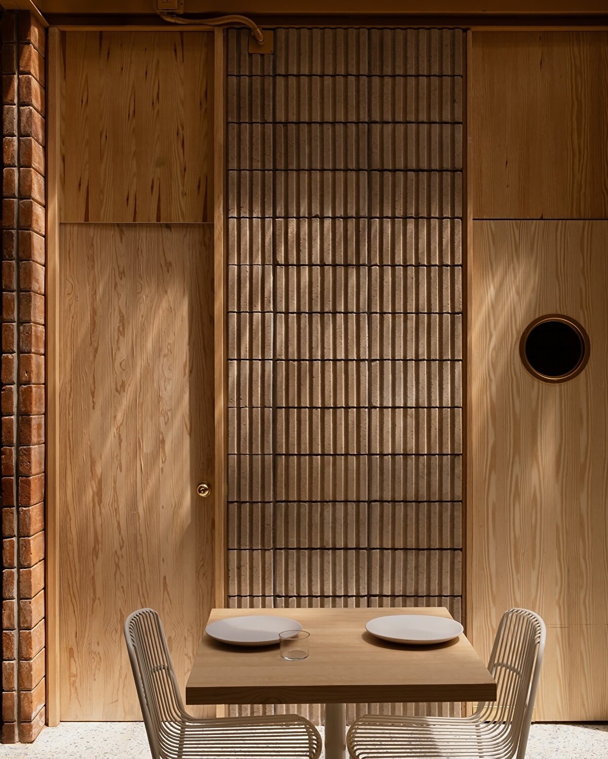 The integration of green elements reinforces the biophilic design approach while softening the boundaries between indoors and outdoors. Furniture and lighting elements selected from natural materials such as wood and terracotta harmonize with the overall material fiction of the space. Taking shape on a constrained site, the project optimizes the use of space, while addressing traditional construction techniques with a contemporary perspective.