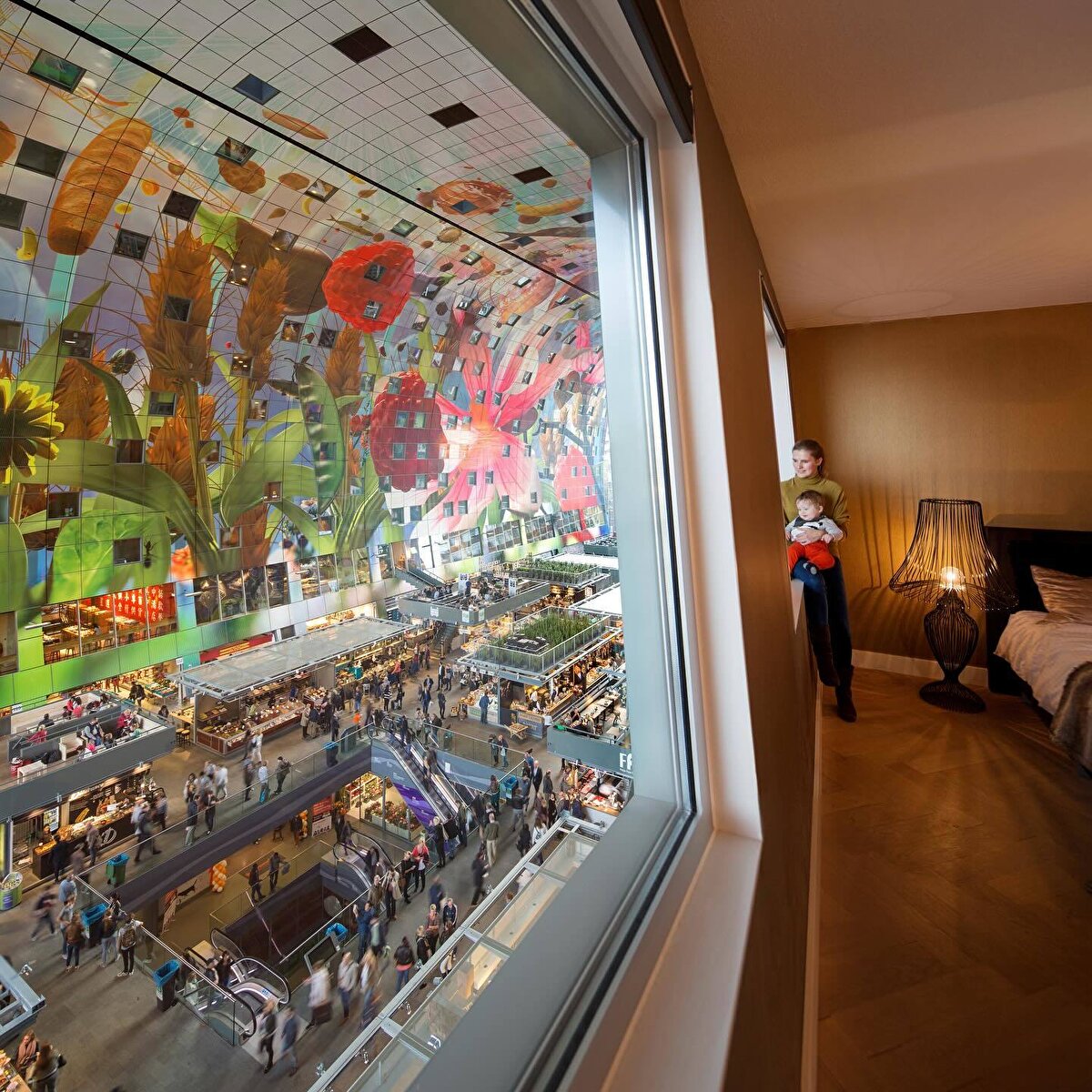 95.000 metrekarelik alanda 228 daire ve 1.200 yer altı park yeri bulunan bu yapı, 96 taze yiyecek tezgahı, restoranlar, kafeler, süpermarket ve perakende birimlerine ev sahipliği yapıyor. Yapının iç mekanını süsleyen, Arno Coenen ve Iris Roskam tarafından yapılan “Cornucopia" adlı devasa duvar resmi, büyütülmüş yiyecek, çiçek ve böcek imgeleriyle 17. yüzyıl Hollanda natürmortlarına bir gönderme yapıyor. Bu sanatsal çalışma, binanın estetik çekiciliğini artırıyor ve görsel bir şölen sunuyor.
