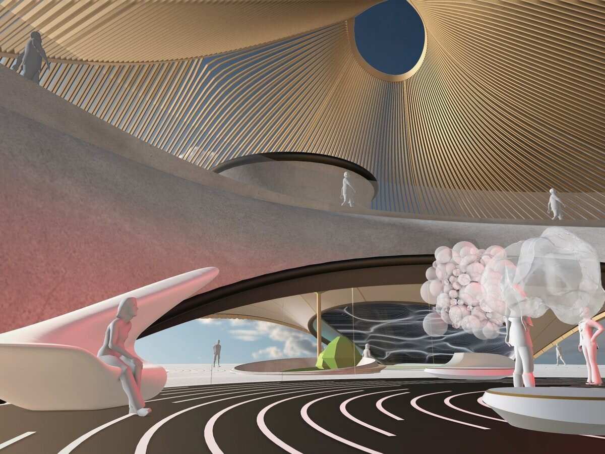 Havada asılı çatılar, çözümlenmesi zor problemlere odaklanmayan iç mekanlar ve içlerindeki kullanıcı sayısına göre genişleyip küçülebilen oditoryumların yer aldığı bu fütüristik kent, geleceğin kentlerine dair ipuçları sunuyor.