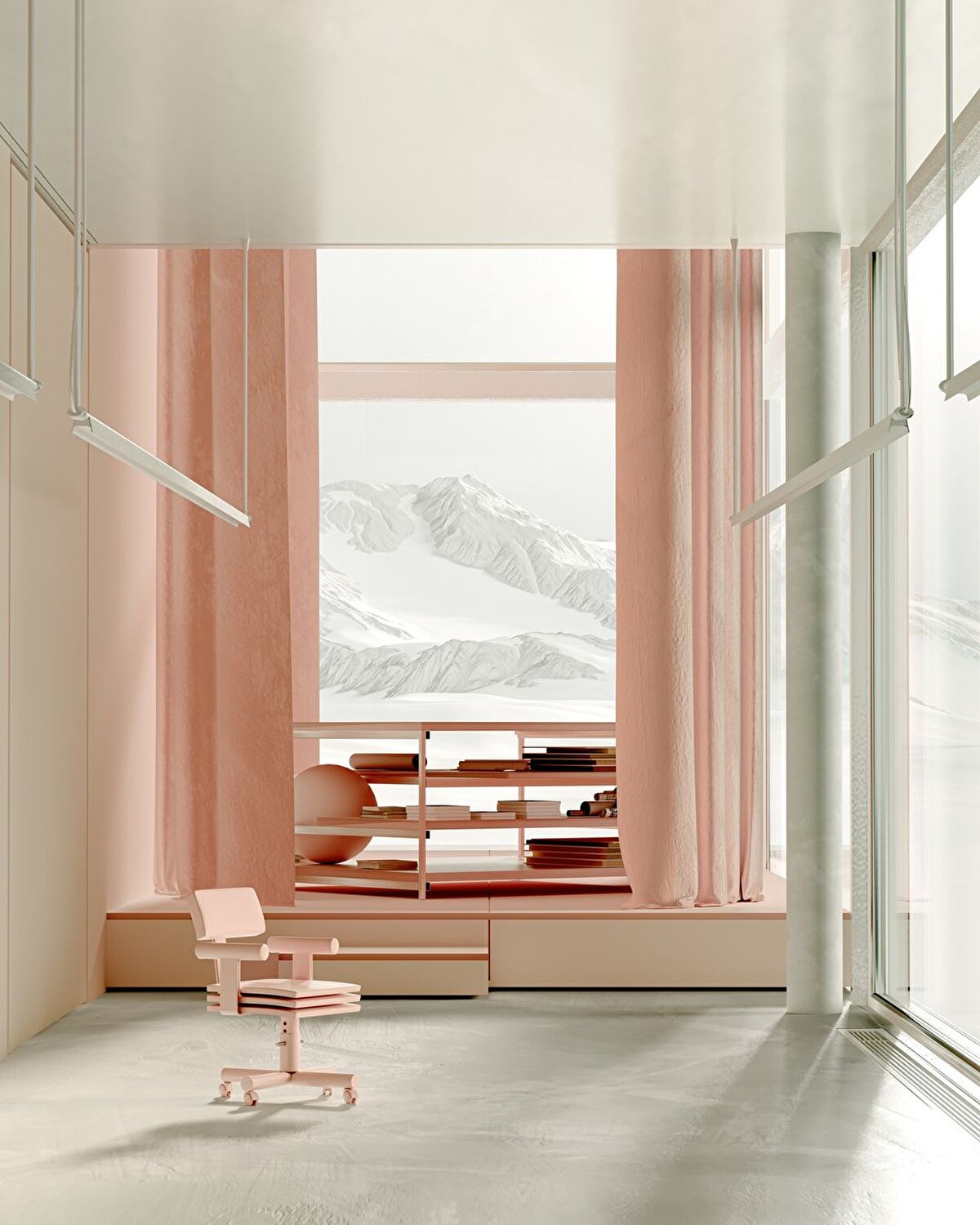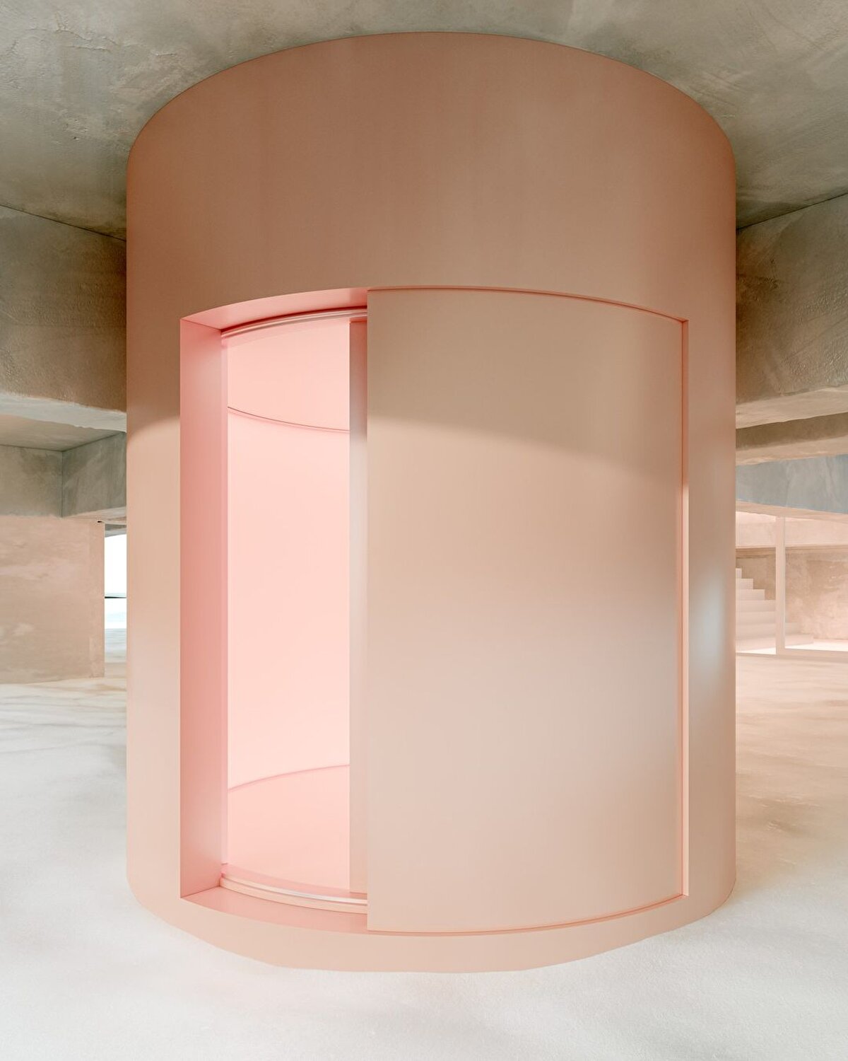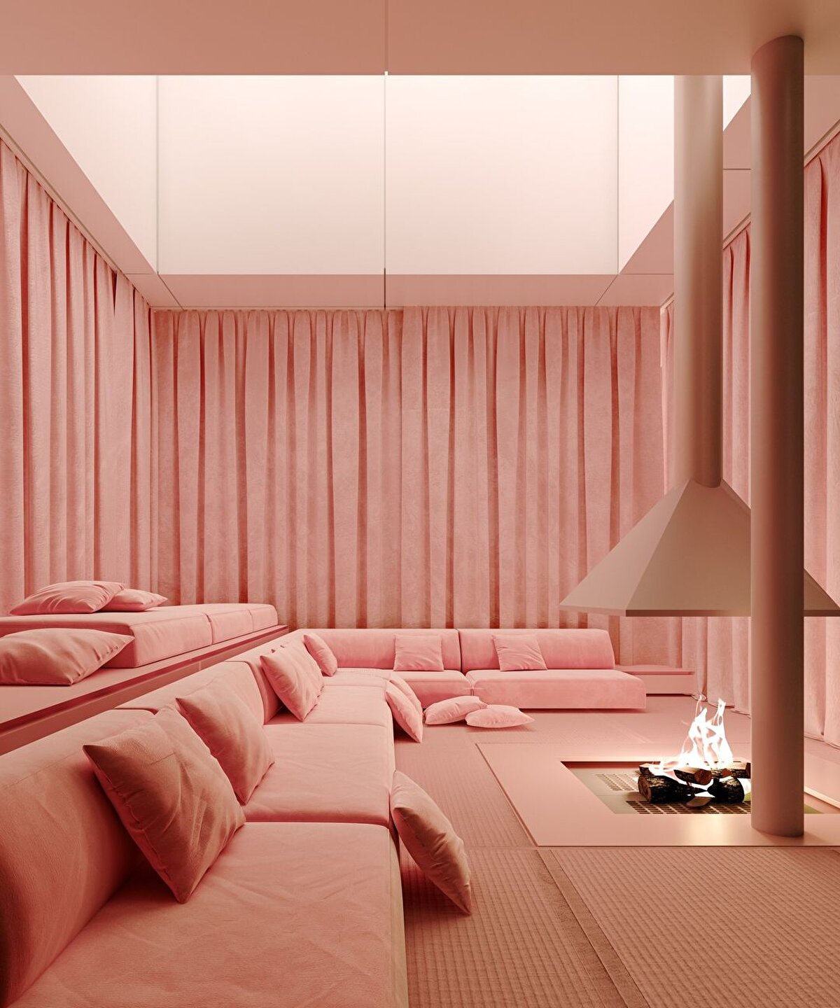 Pembe tonların ön plana çıktığı proje; gerçeklik ve sanallık, doğa ve insan yapımı gibi zıtlıklara vurgu yapıyor.