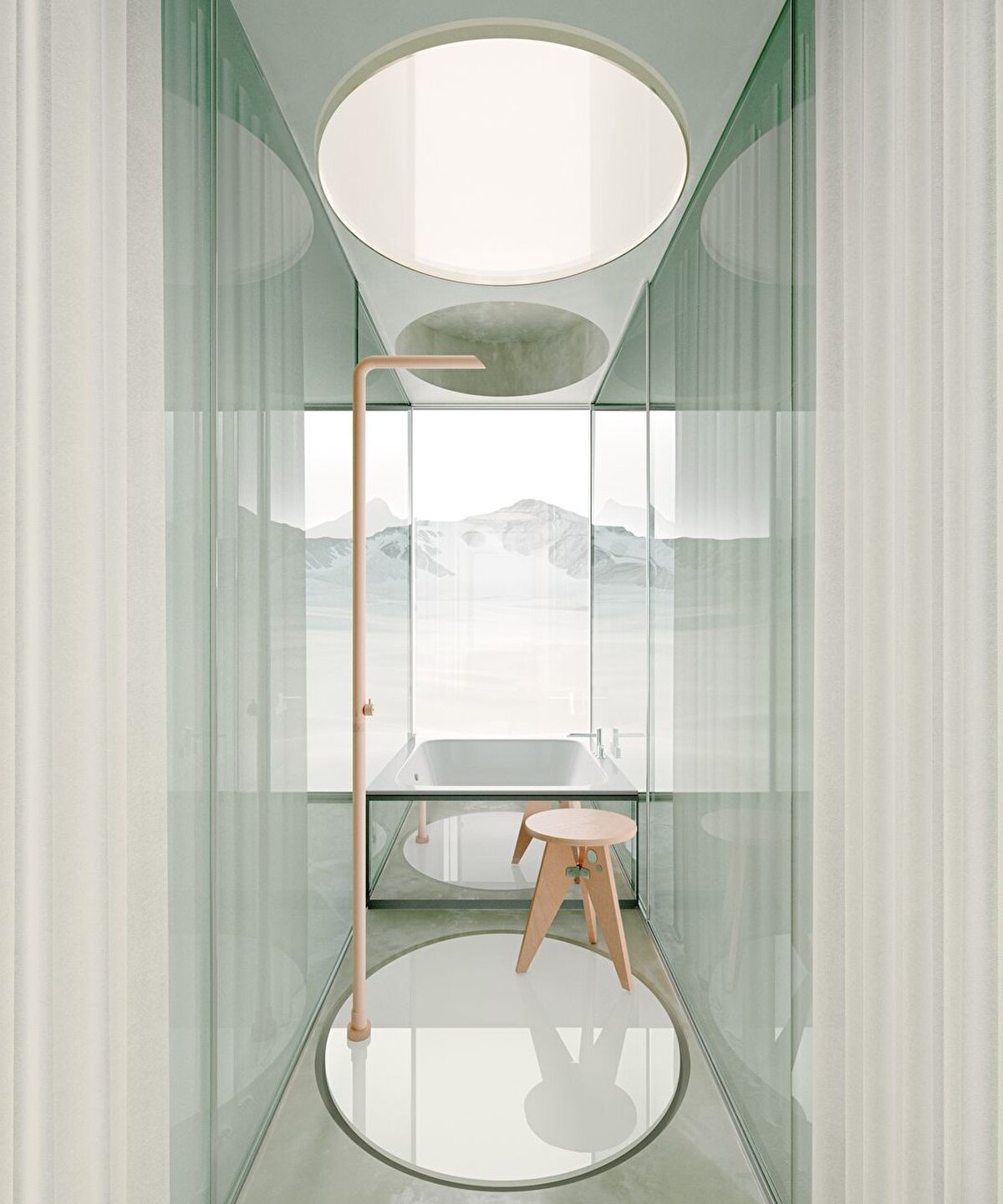 Sanal evrende kurgulanan tasarım, kış manzarasında modernist bir ev olarak kuruluyor.