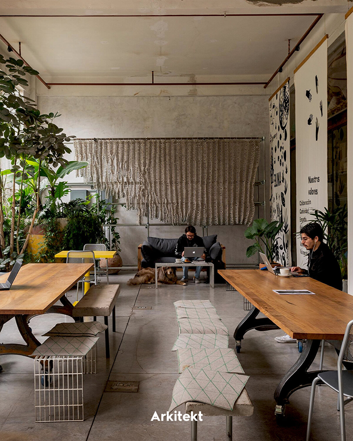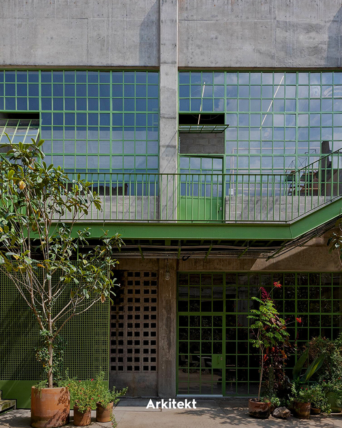 Built in the 1920s in Mexico City's Doctores neighborhood, the textile and yarn factory is being redesigned by Productora as a production-based complex through a phased transformation strategy in 2023. The intervention aims to transform the courtyards, which have lost their function over time, into a circulation and interaction-focused backbone, referencing the original concrete structural system, square iron grid facade, and the spatial organization developed around two courtyards.