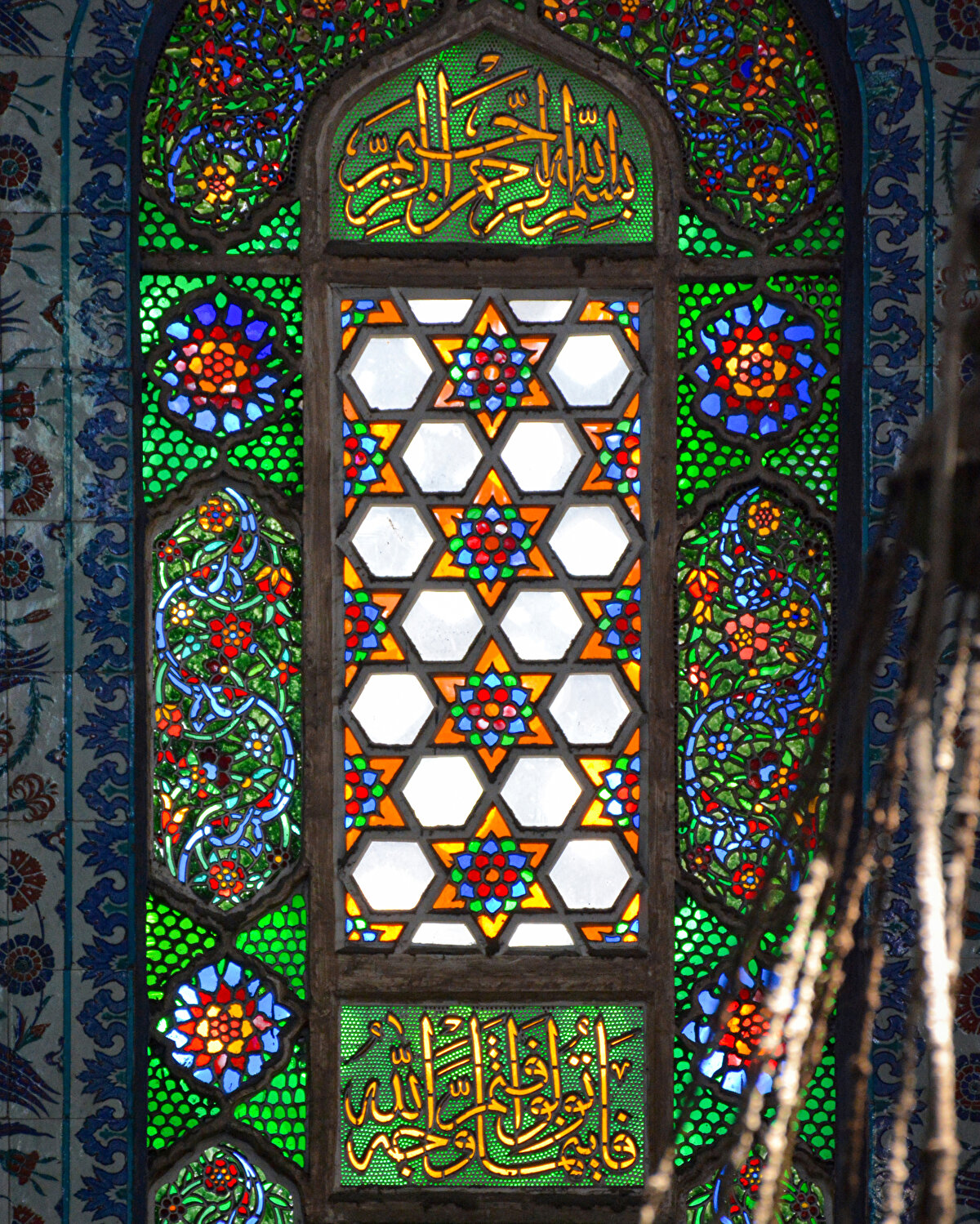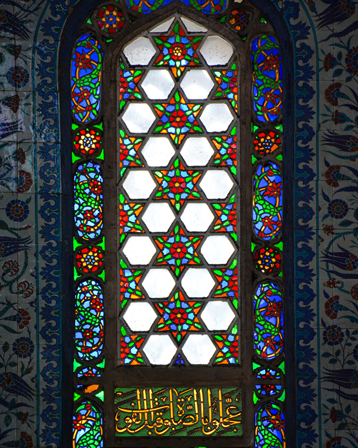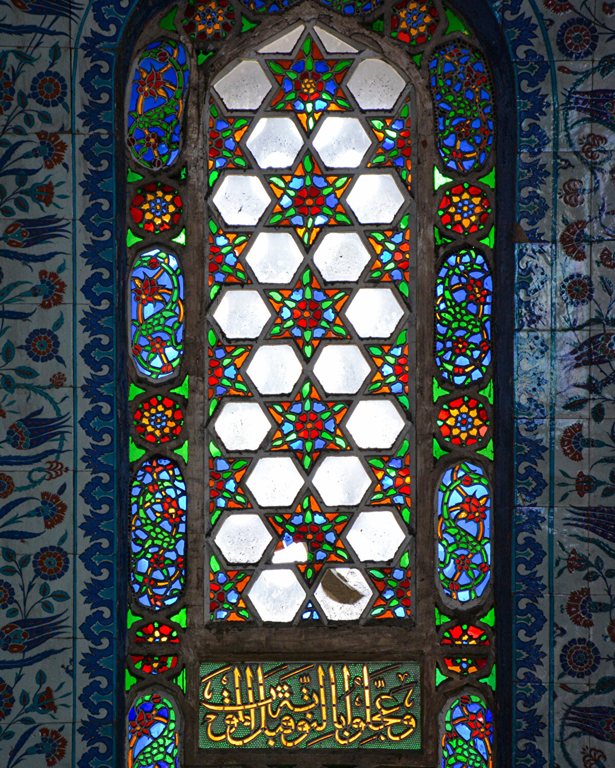Mimar Sinan tarafından 1572 yılında inşâsı tamamlanan İstanbul Kadırga'daki Sokullu Mehmet Paşa Camii'nin mihrap duvarında, üzerine dini içerikli yazıların da nakşedildiği altı adet fevkalâde müzeyyen revzen bulunmaktadır.