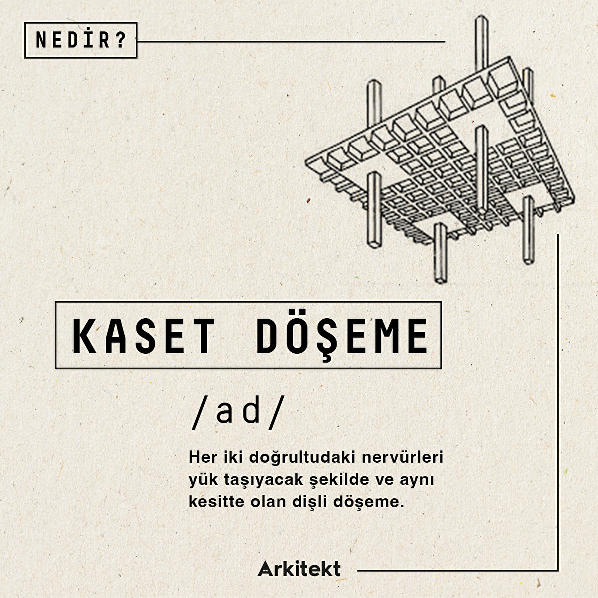 Mimarlık sözlüğünde bugün “kaset döşeme" var. Kaset döşemenin sözlük anlamı ile beraber, uygulanmış örneklerini inceliyoruz.