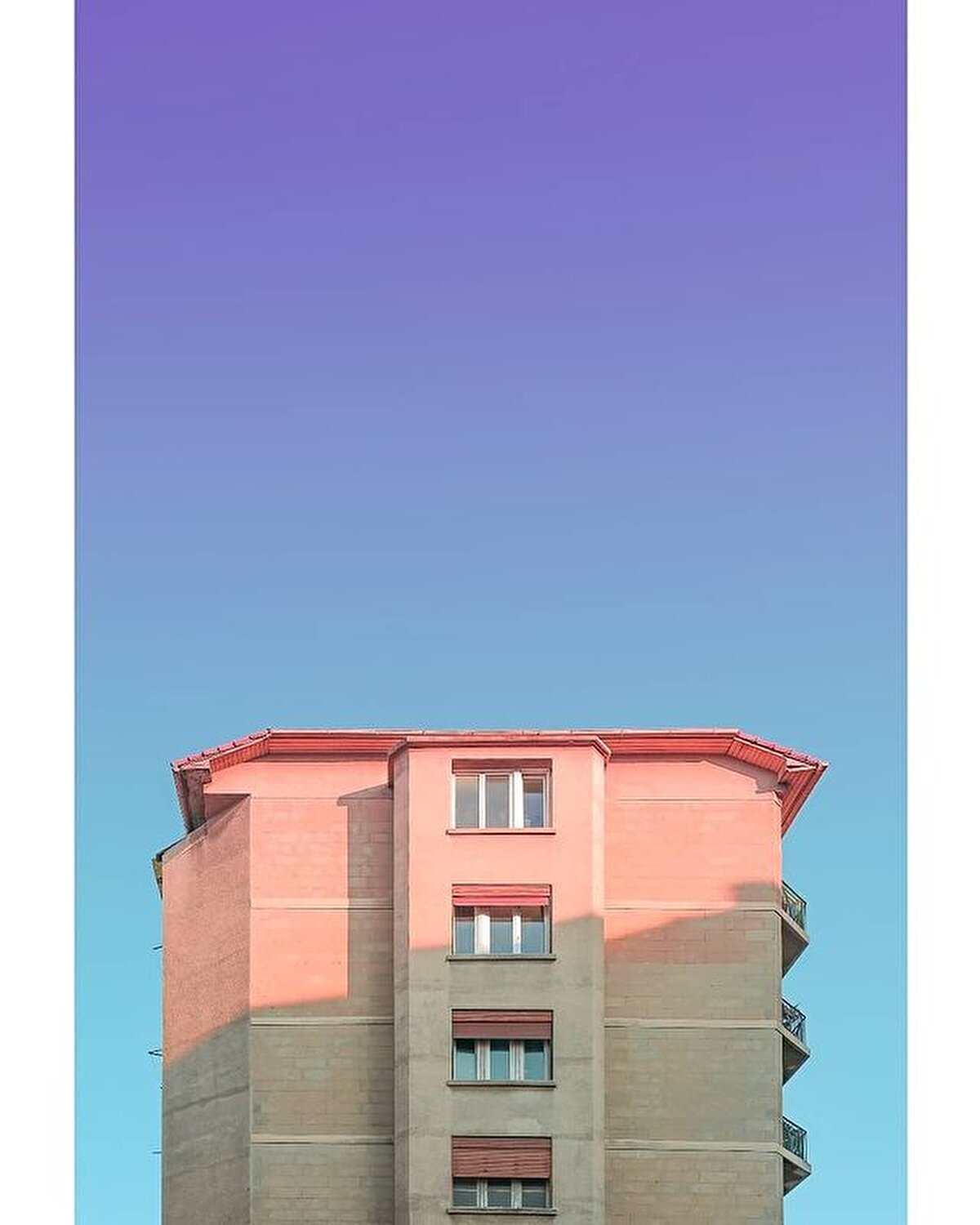 Yapıların gölge, renk ve ışıkla zamana göre değişen cephelerini görselleştiren sanatçının ''Boş şehir'' isimli mimari fotoğraf projesine gelin birlikte bakalım...