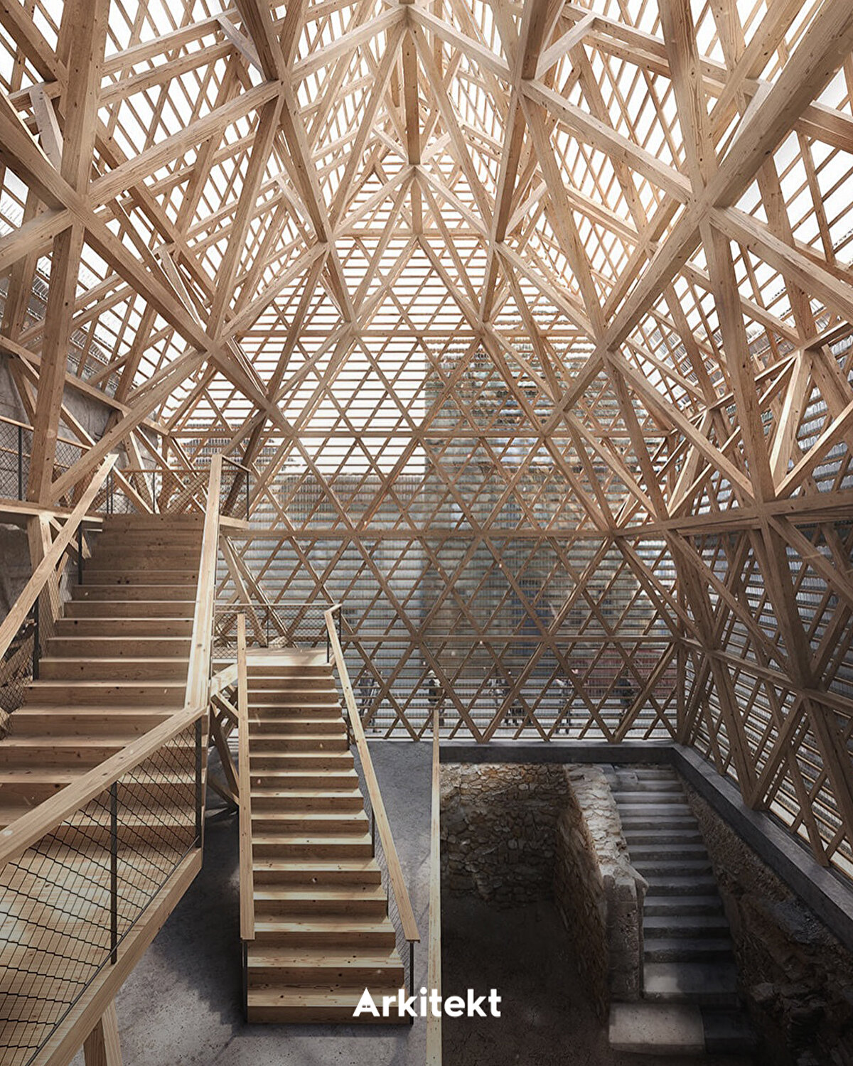 Museum Historische Oberamteistraße projesi, 14. yüzyıl Steinernes Haus’ın izlerini parametrik ahşap tasarımla yeniden kurguluyor
