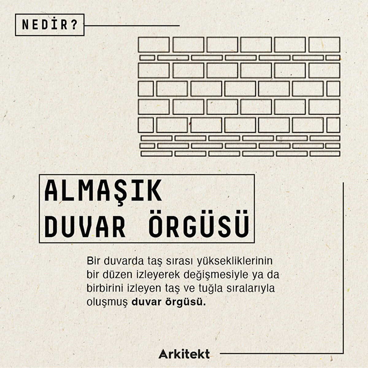 Mimarlık sözlüğünde bugün “almaşık duvar örgüsü" var. Almaşık duvar örgüsünün sözlük anlamı ile beraber, uygulanmış örneklerini inceliyoruz.
