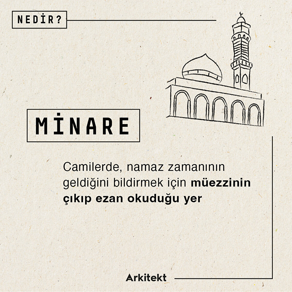 Minare kavramı camilerde, namaz zamanının geldiğini bildirmek için müezzinin çıkıp ezan okuduğu yer olarak karşımıza çıkıyor. İslam'ın yaygınlaşmasından dolayı farklı kültür, coğrafya ve tarihsel etkenlerden dolayı minareler, zaman içerisinde çeşitlenmiş ve farklı özellikler kazanmıştır.