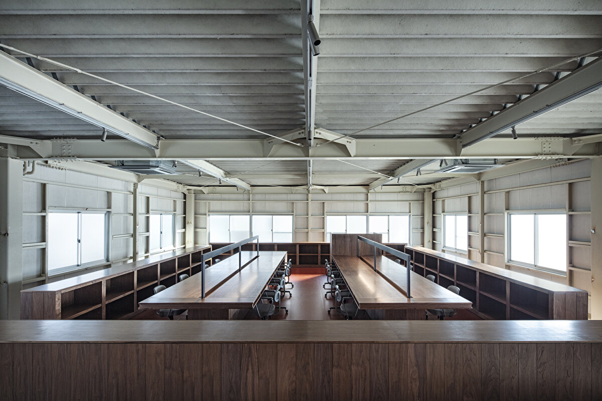 Birinci katta, yüksek tavanlı ve dışarıdan bol ışık alan bir alan bulunuyordu. Bu alana depo fonk-siyonlarını ayırmak için hafif strüktürlü geçirgen bir panel ekleniyor. Bu panel sayesinde, insanlar çevreyi hissedebilirken aynı zamanda dışarıdan gelen ışığı daha iyi bir şekilde deneyimlemelerine imkan tanıyor. Mekanın ana hatları ve temel fonksiyonları belirlenirken, geri kalan alan ise esnek bir şekilde değişebilecek bir boşluk olarak bırakılıyor. Tasarımcılar, binada boş alanların ve açık-lıkların bulunmasının binanın gelecekteki kullanımını artıracağına inanıyor.