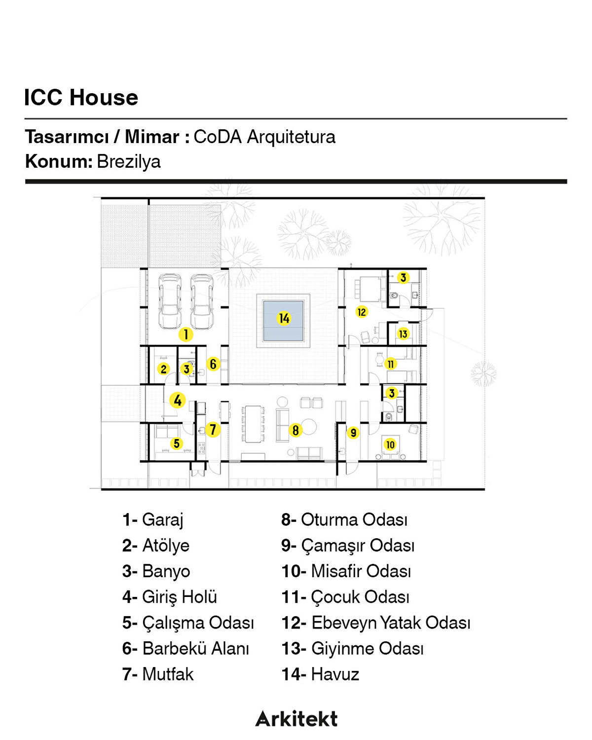 Brasília Üniversitesi'nin Merkezi Bilimler Enstitüsü (ICC), Oscar Niemeyer ve João Filgueiras Lima (Lelé) tarafından 1960'larda tasarlanan ve Brezilya'da prekast beton deneylerinin simgesi haline gelen bir yapı. Bu etkileyici yapı, Brasília'nın mimarisine hayran olan bir müşteri tarafından yeni ev projelerine ilham kaynağı olarak seçiliyor. Lelé ve Niemeyer'in tasarımı, açık beton kullanımı, geniş açıklıklar, mekânsal akışkanlık ve ritmik yapı gibi öne çıkan unsurlarla, evin temel konseptine yön veriyor.