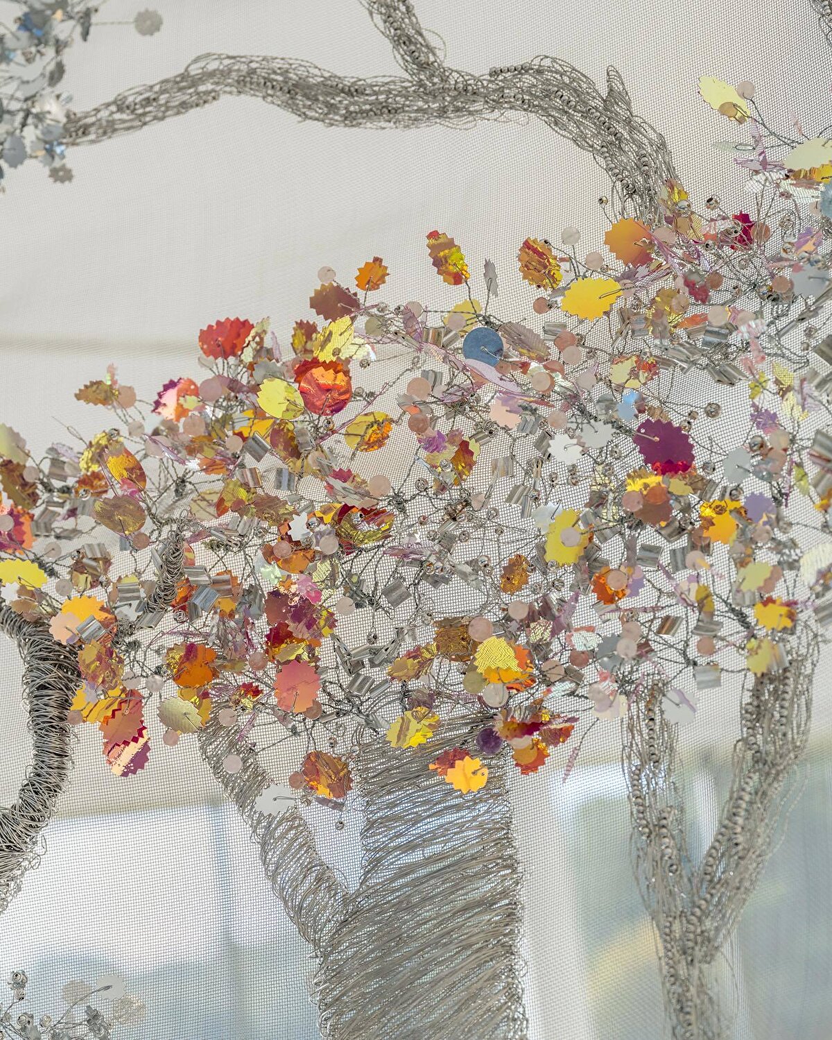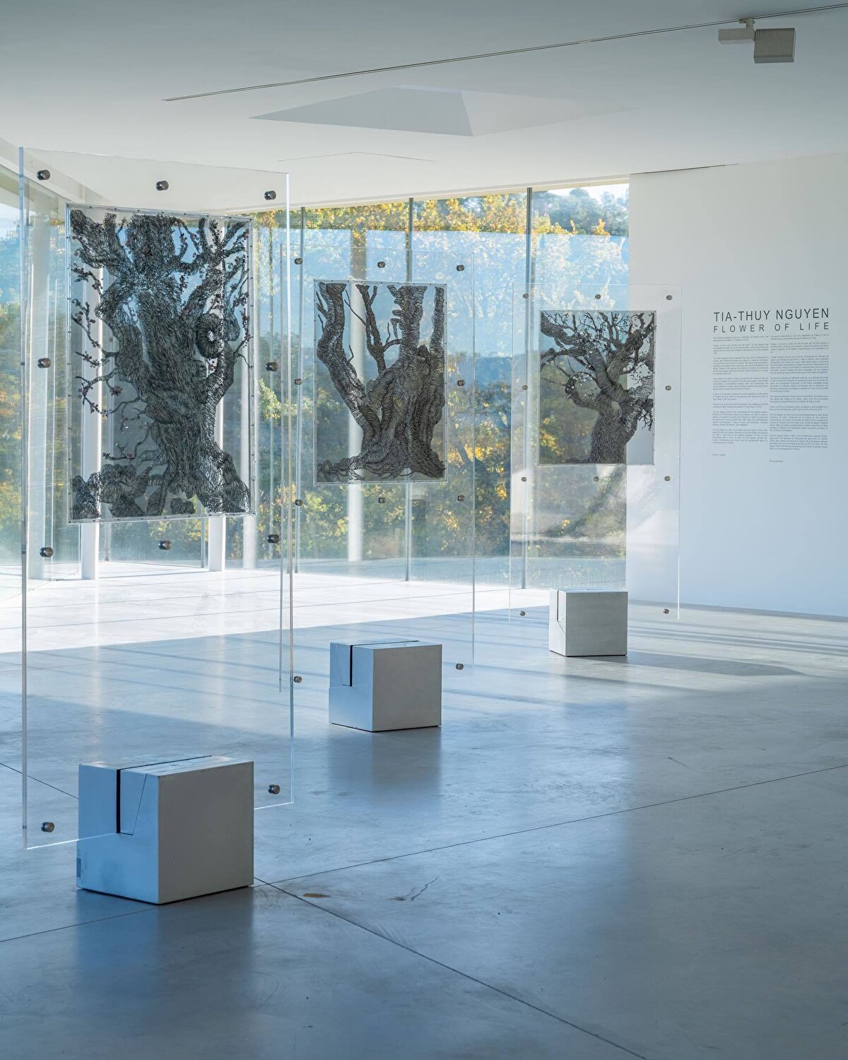 Sergide 'Yaşam Çiçeği' adlı ana eserden türeyen rölyefler, paslanmaz çelik ipliklerden işlenmiş çift taraflı resimler ve yağlı boya tablolar yer alıyor.