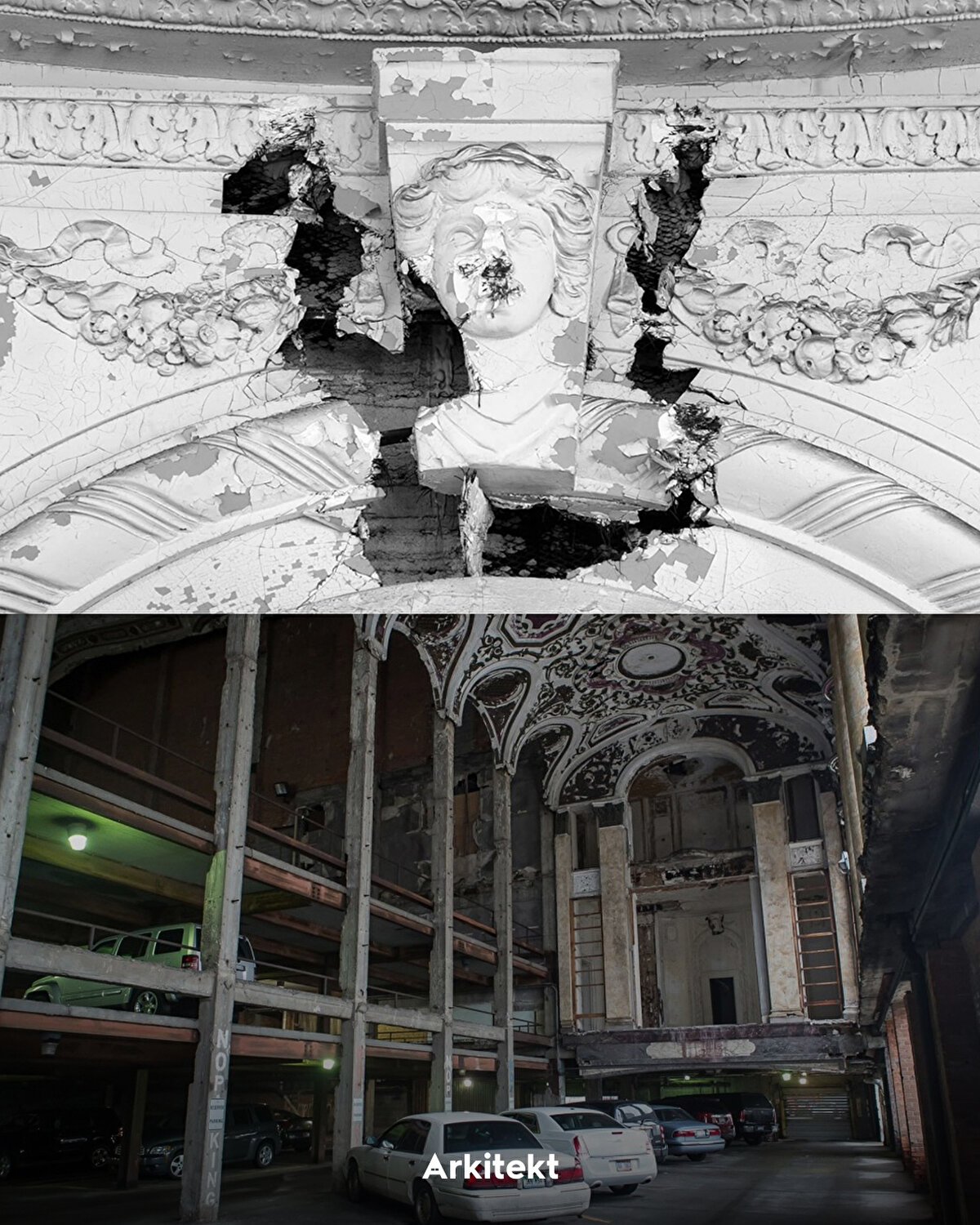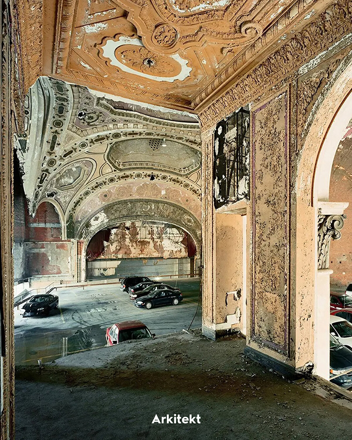 A once-grand theatre building now used as a car park 🎭