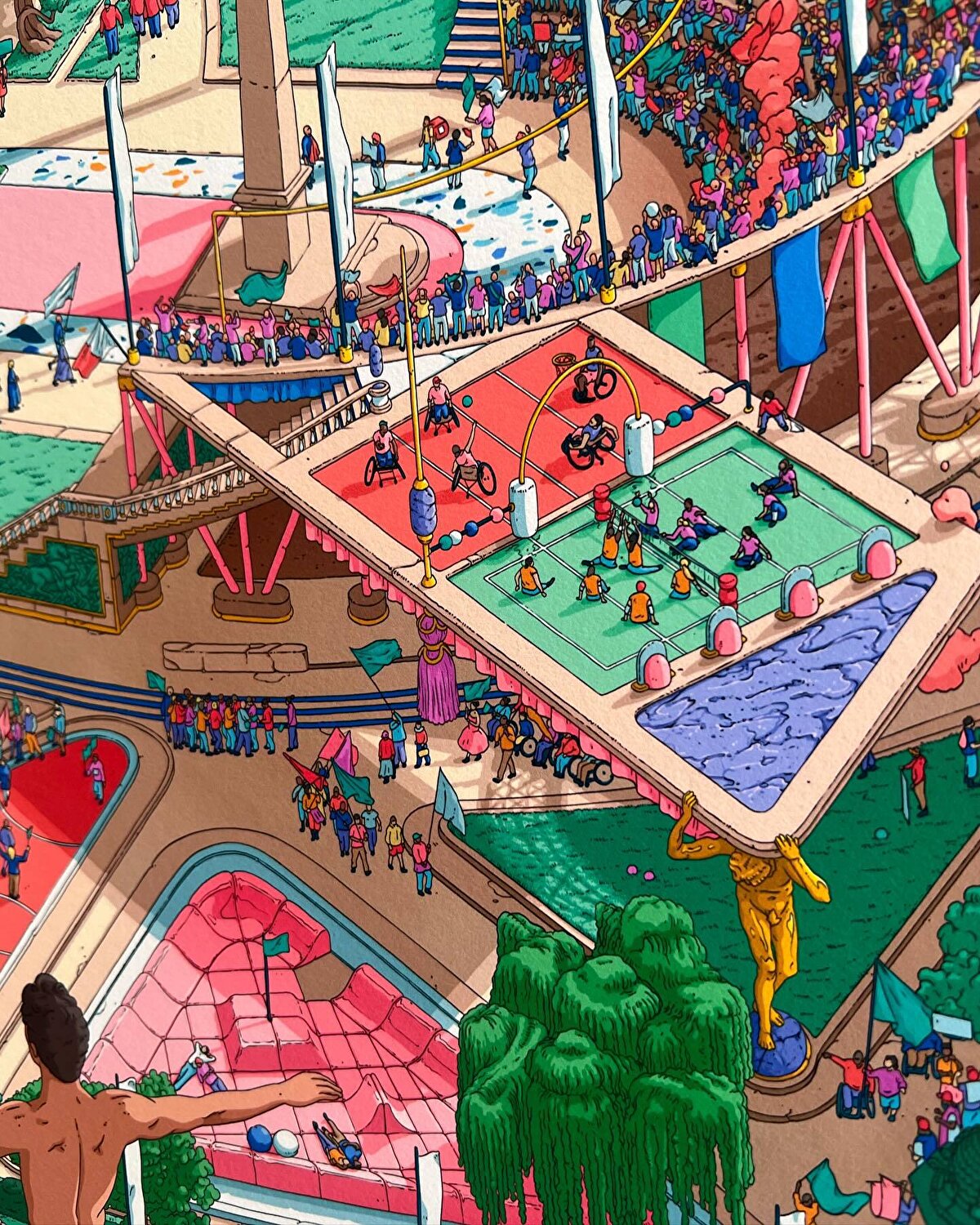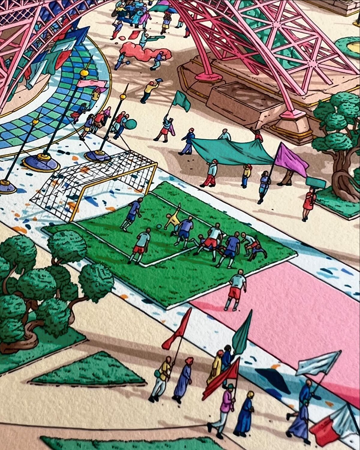 Gattoni, etkinliklerin gerçekleşeceği Paris'in ikonik yapılarına da yer verdiği bu çalışmayı, 2000 saatin üzerinde bir efor sarf ederek ortaya koydu.