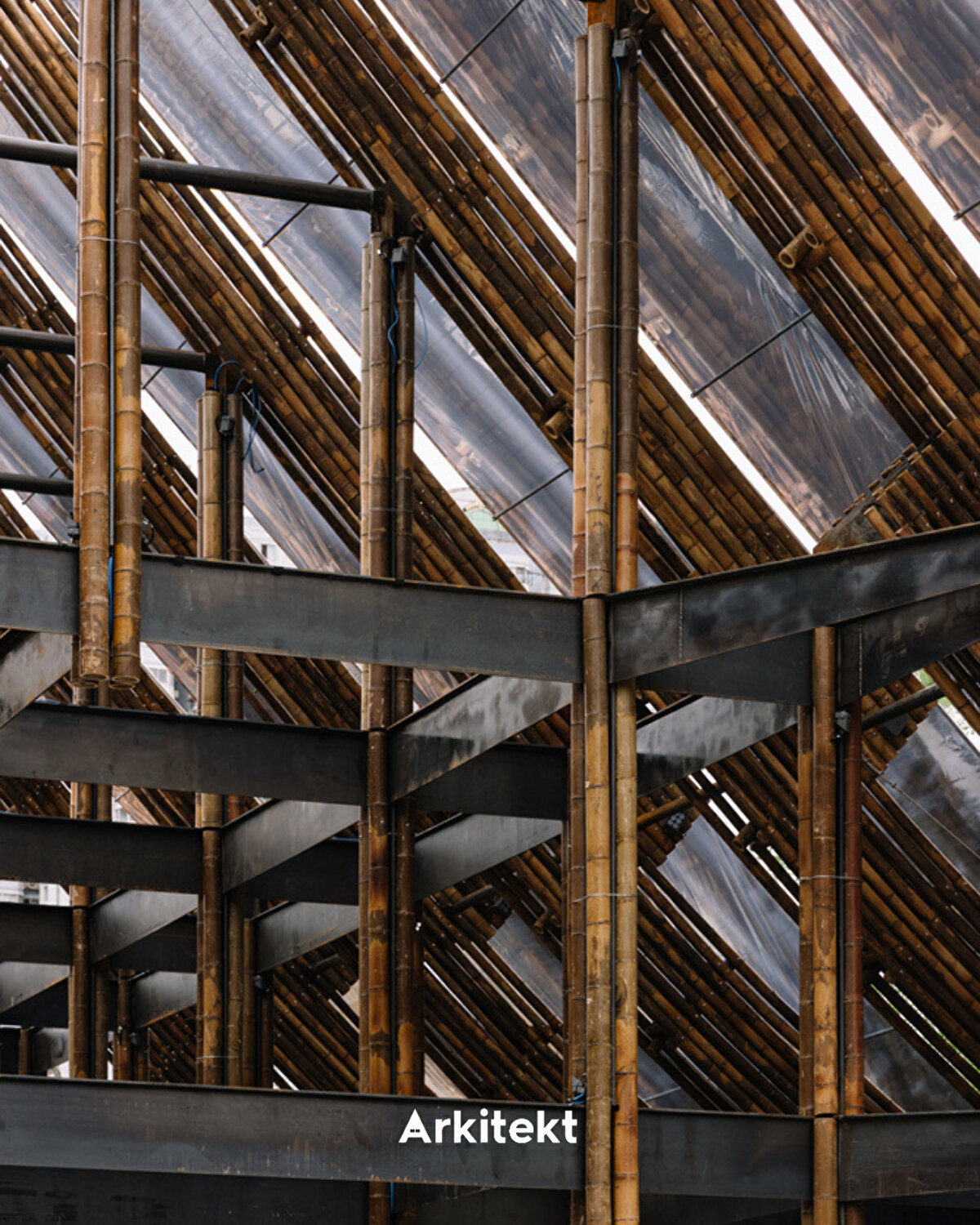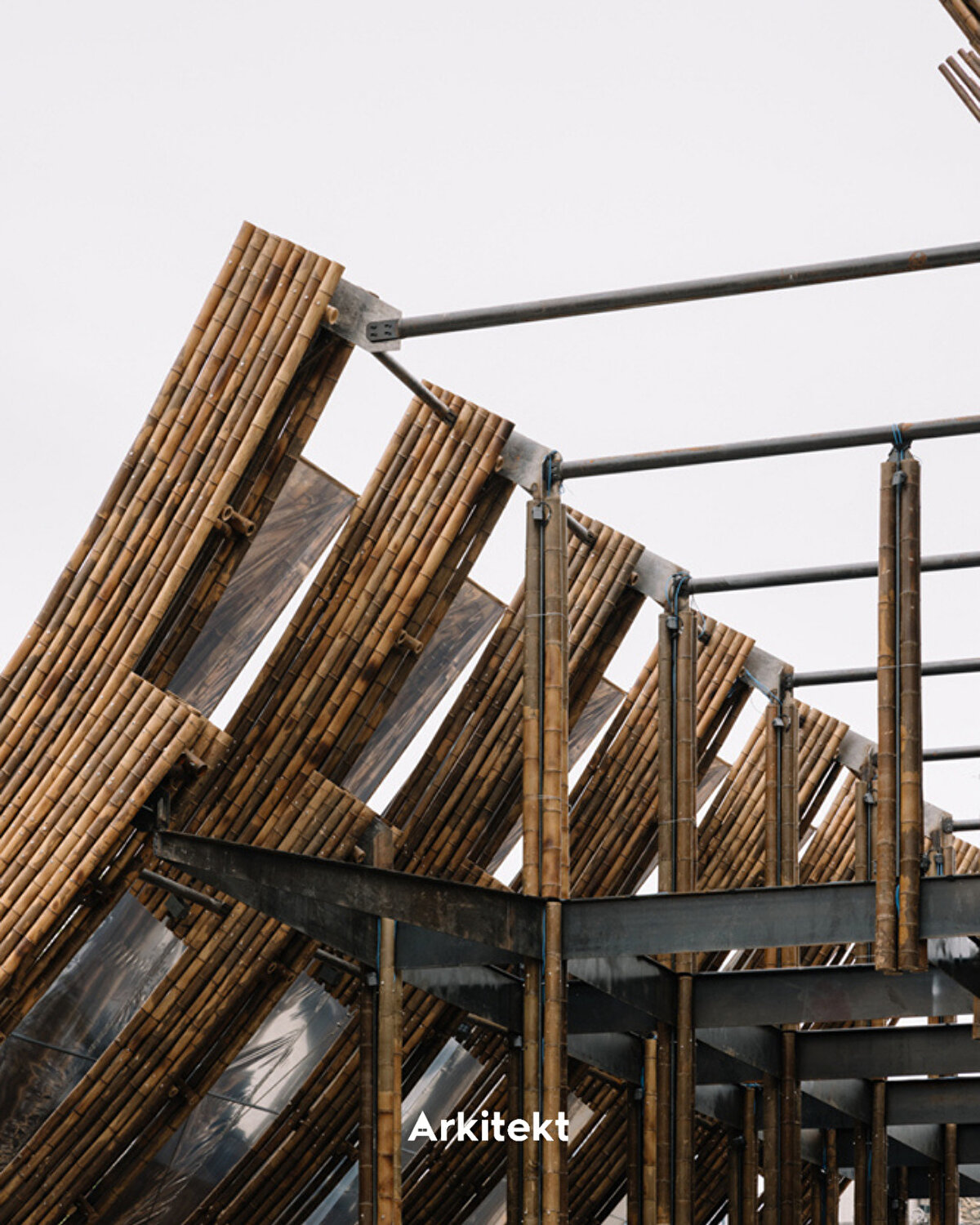 Yapı ana malzeme olarak şehrin kültürel temsilcisi olan bambuyu kullanıyor. Aynı zamanda bambu malzeme inşaat görevini tamamladıktan sonra geri dönüşüm ve yeniden kullanım sağlıyor.