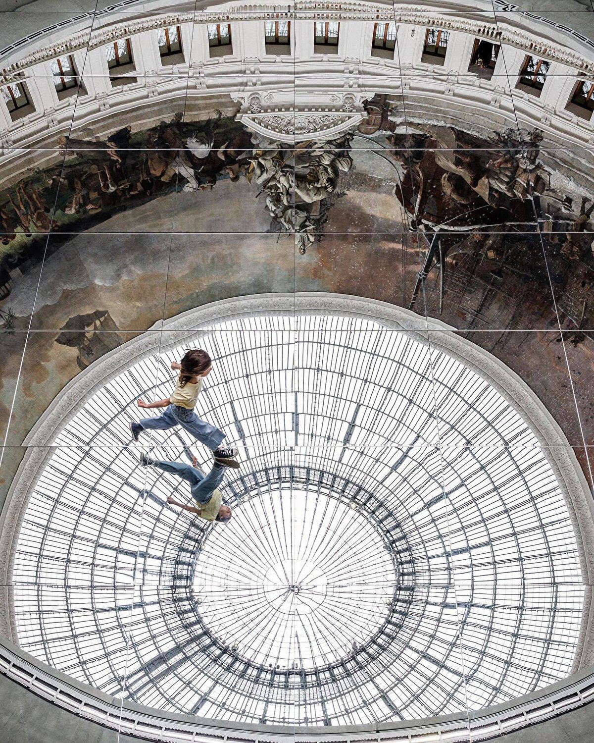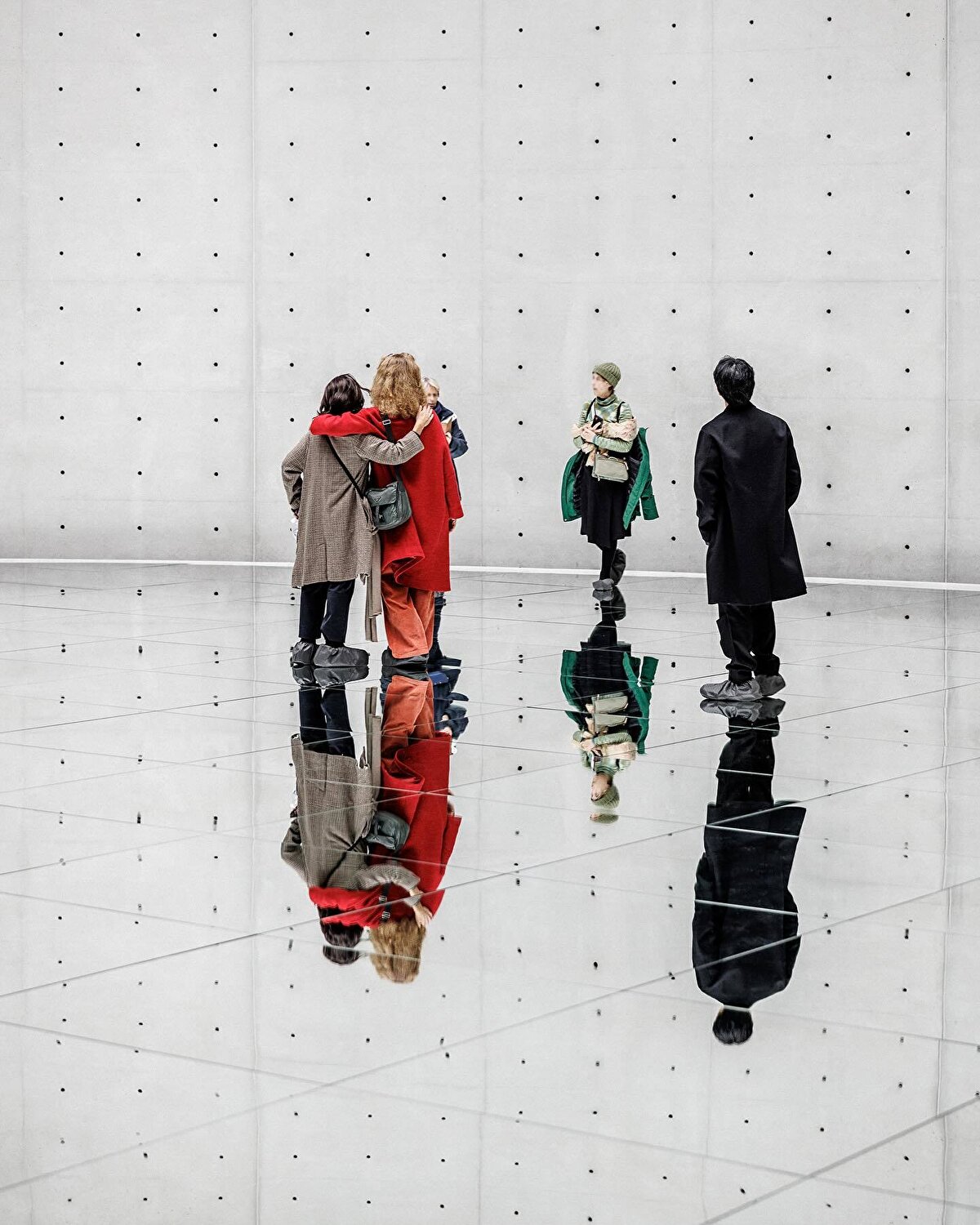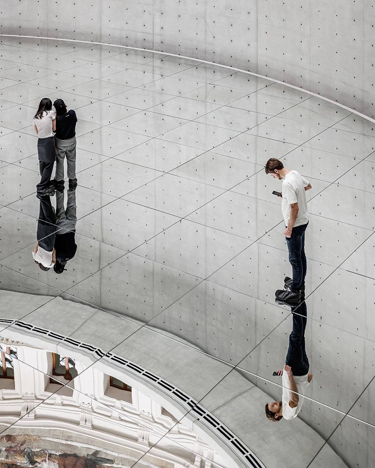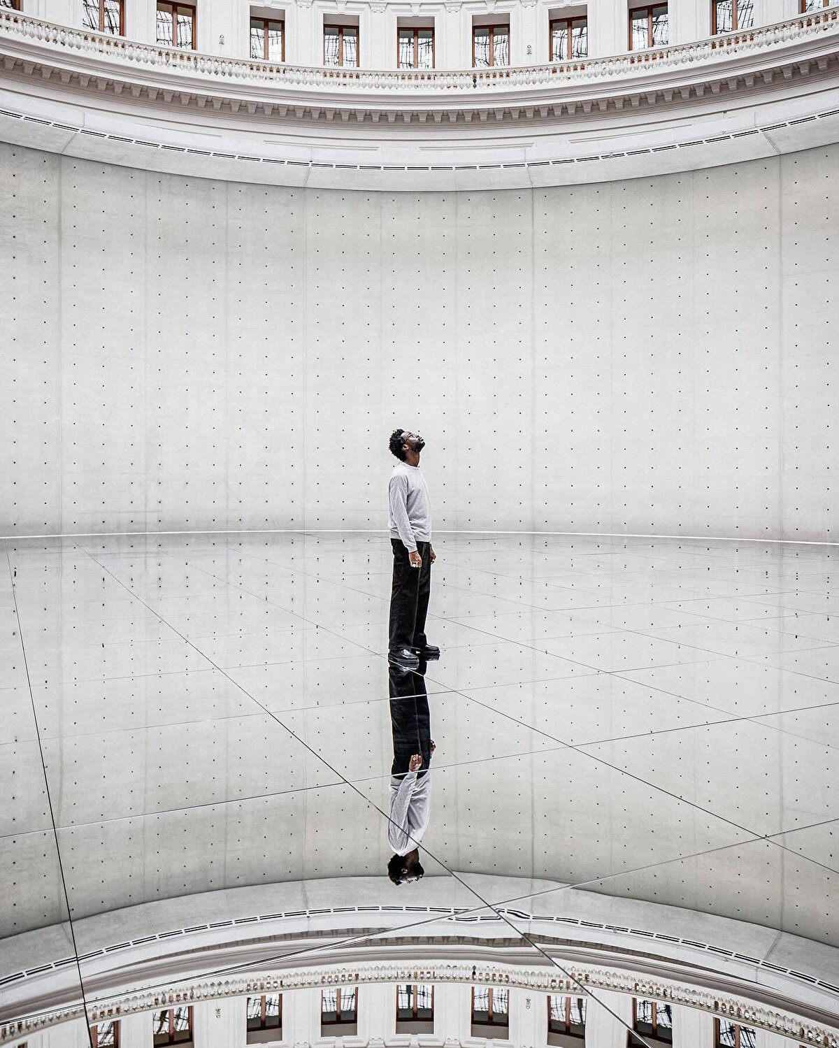 Kimsooja, a South Korean artist invited to work on the exhibition, uses huge reflective mirror surfaces to make the space seem as if it is suspended in mid-air.