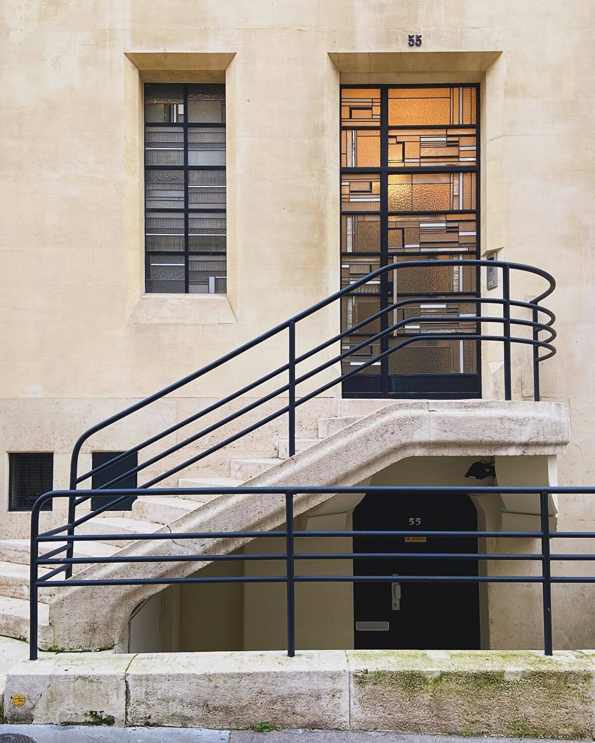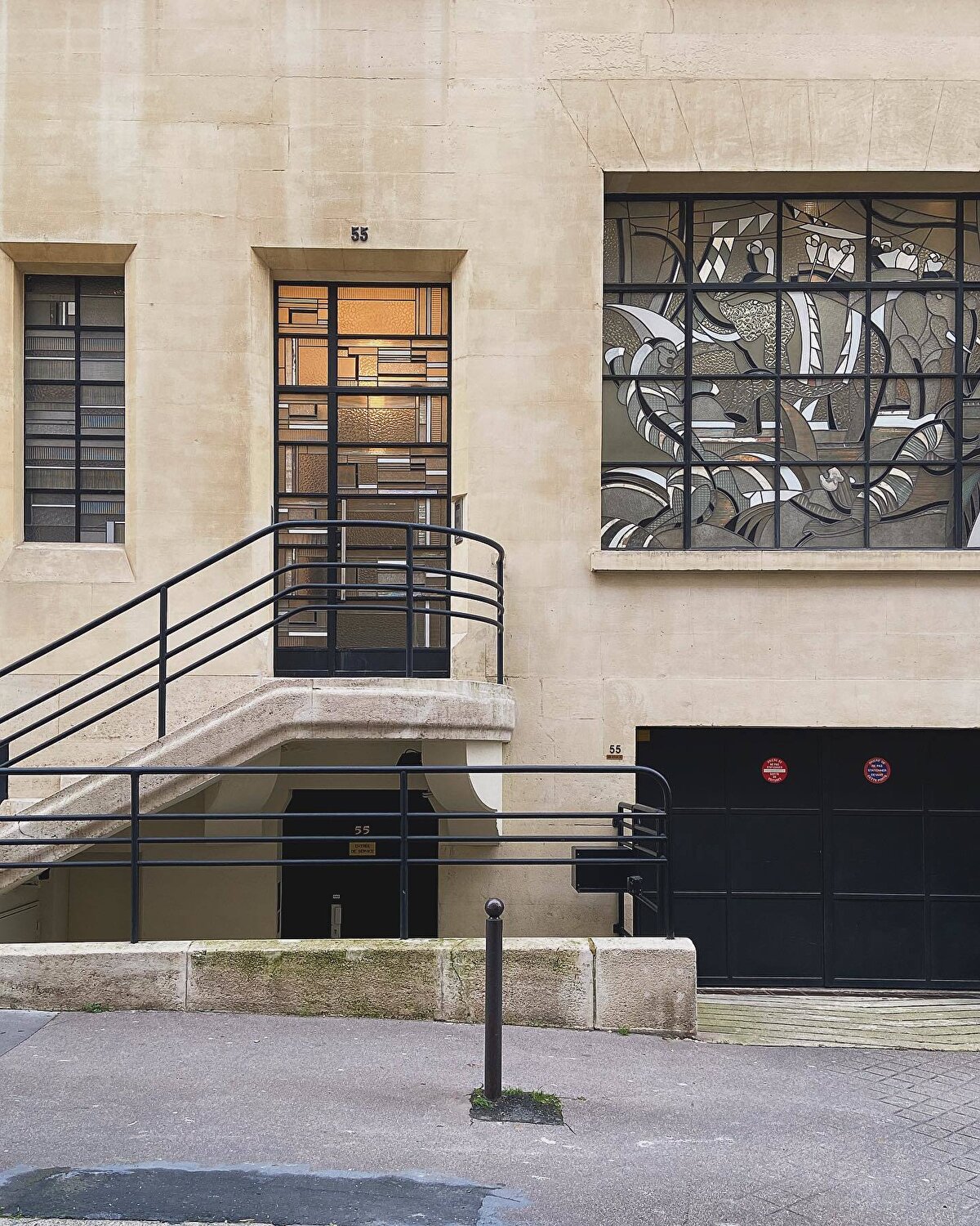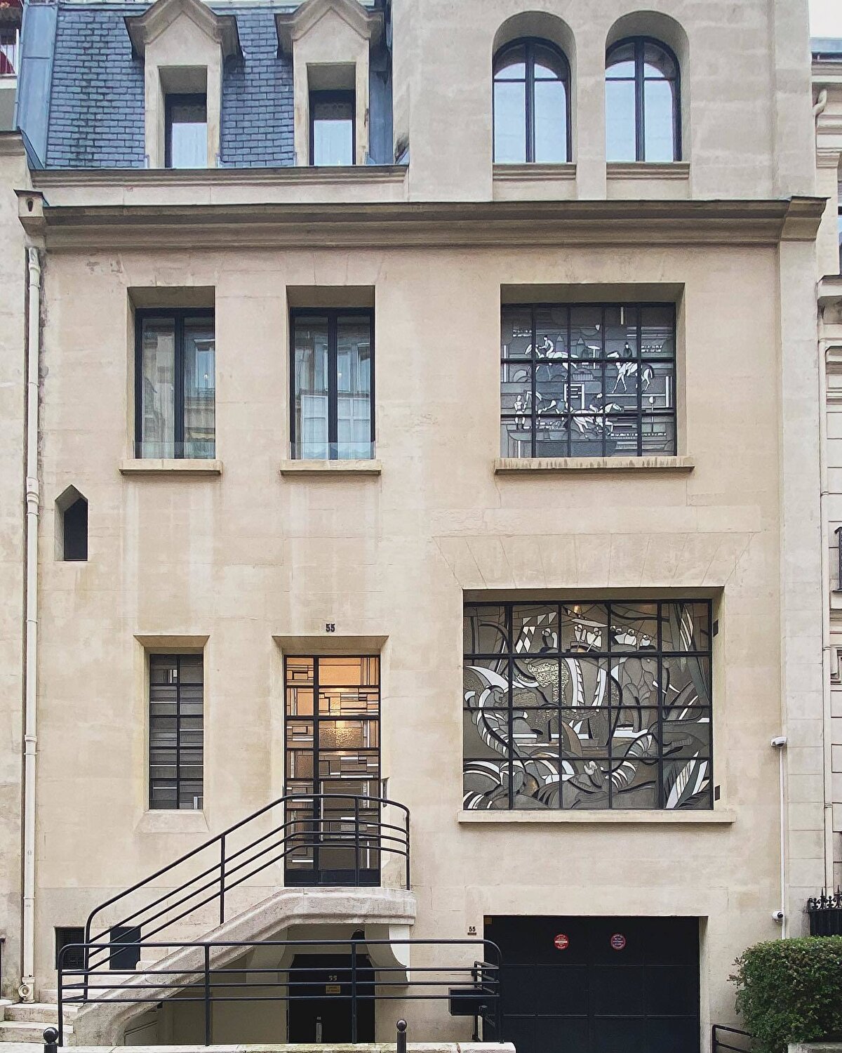 Otel, Louis Barrilet'in Art Deco vitray pencereleriyle süsleniyor. ---- Built in 1891 for the painter Guillain, the hotel was transformed in 1930 by the furniture designer and architect René Herbst in the Art Deco style for Princess Aga Khan.