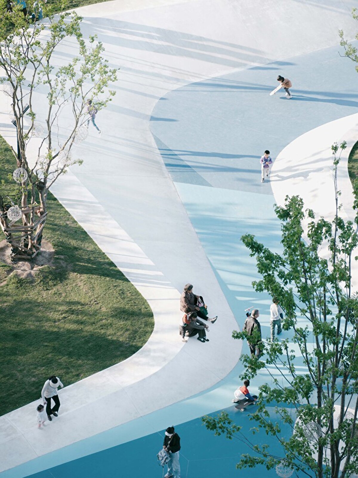 Designed by SoBA, Huachiao Vibrant Sports Park opened in March 2024 in Suzhou, Jiangsu Province, China. Located on Greenbelt Avenue, the 6,000-square-meter park integrates traditional cultural elements with contemporary sports facilities, referencing the flowing waterways depicted in Kunqu opera in its spatial design. A basketball court, skateboard track, table tennis areas, children's play equipment, and seating areas cater to different age groups and user profiles, transforming the space into a multifunctional public venue. Functional zones are connected by fluid forms, facilitating circulation while contributing to the park's holistic perception.