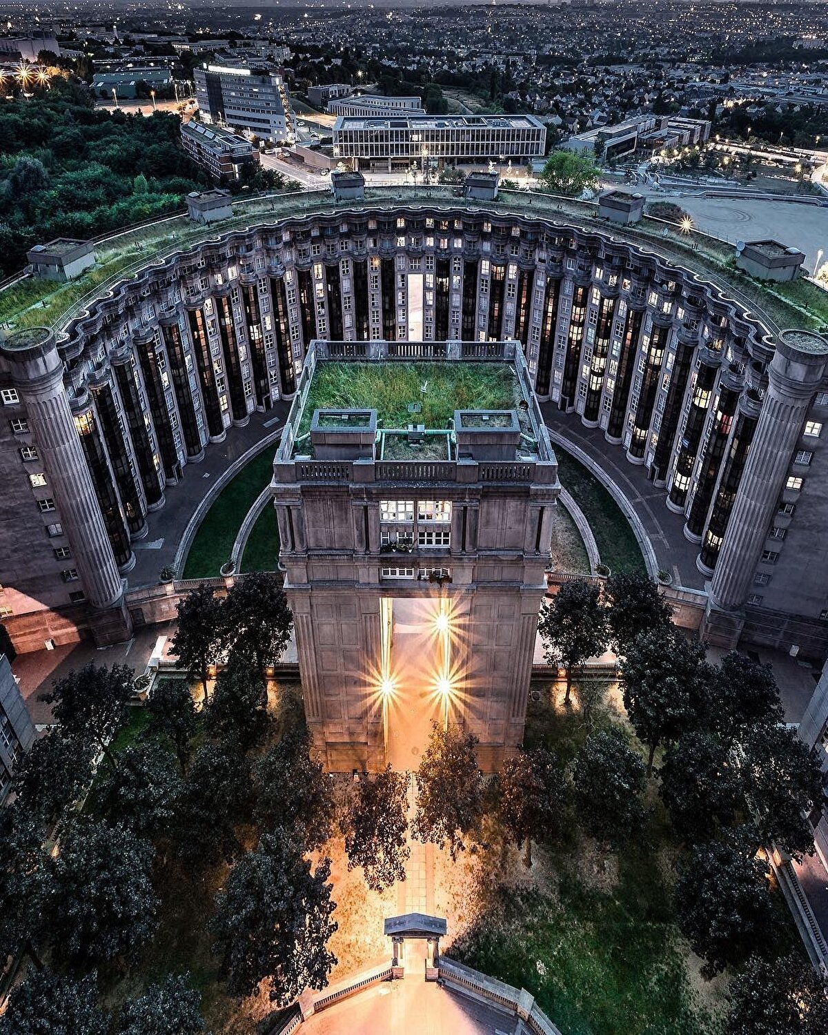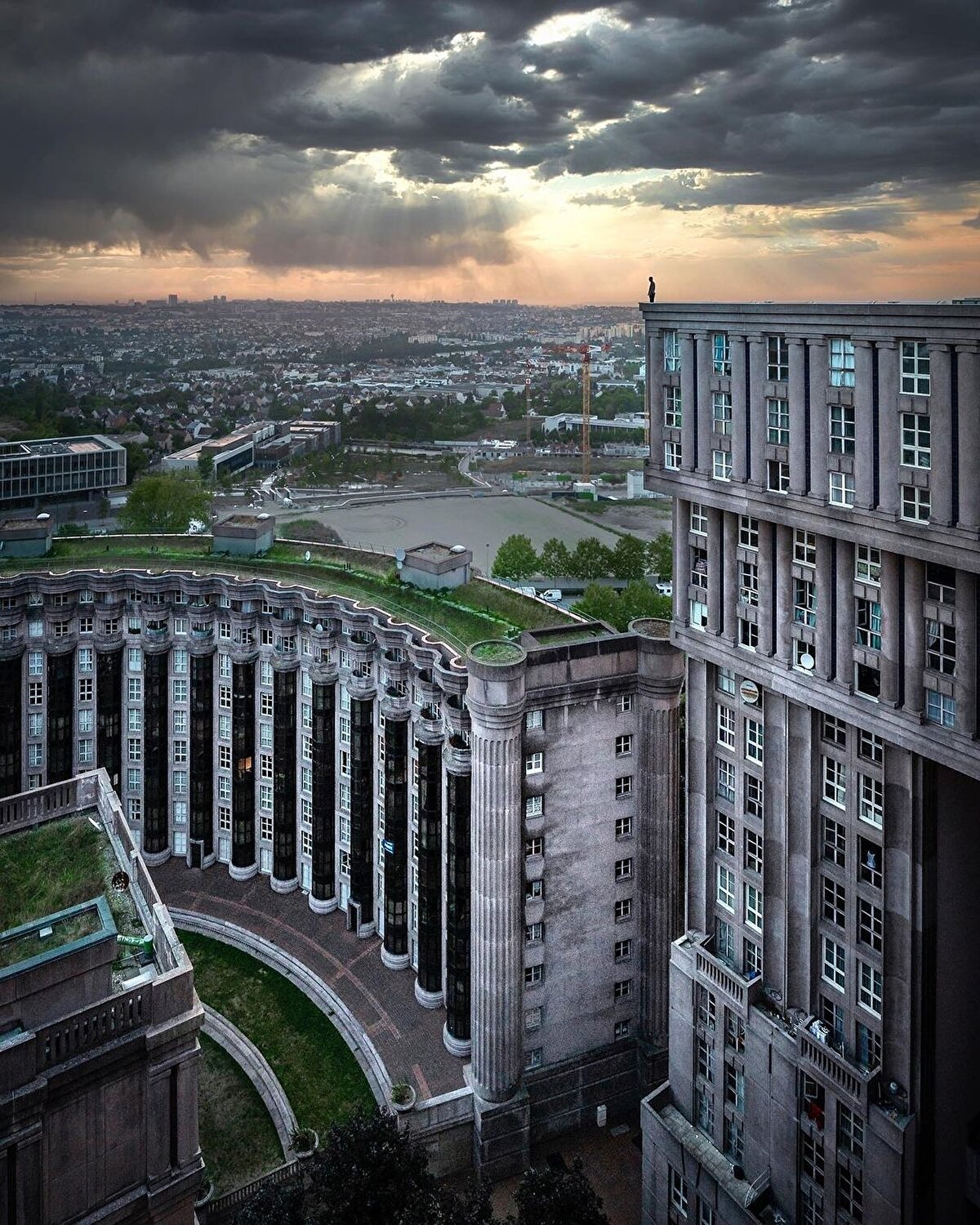 The complex consists of three main buildings: Le Théâtre, L'Arc and Le Palacio. They are designed both to respond to the needs of public housing and to create an artistic space. It stands out with its architectural style, extravagant decorations and wide staircases.