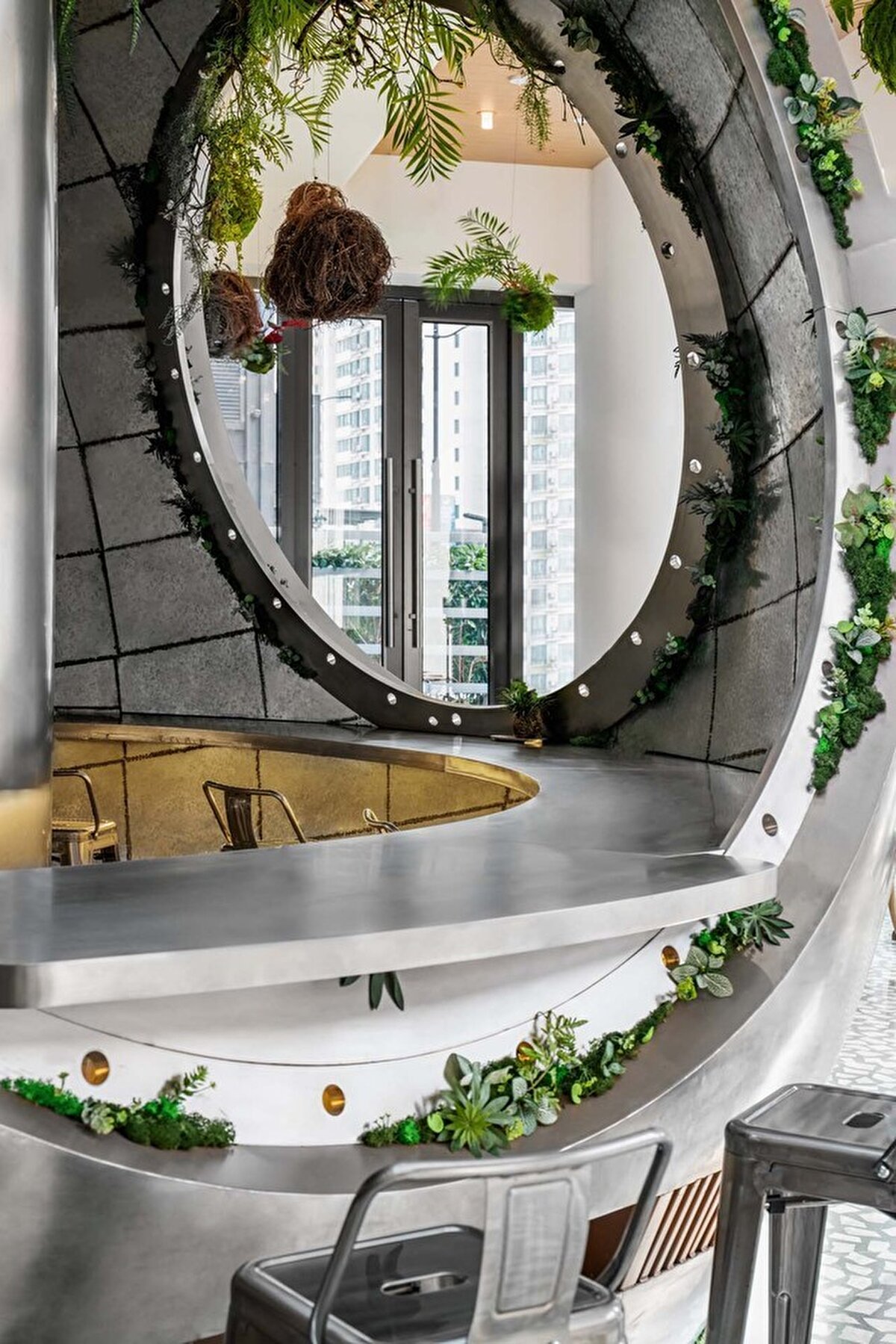 Shanghai Metal Hands Coffee, Şanghay'da kentsel bir zemin katta yer alan küçük bir kahve dükkânı olarak tasarlanıyor. Proje, sınırlı bir alan içinde kullanıcı deneyimini yönlendiren mekânsal bir anlatı üzerine kurgulanıyor. Tasarımda merkezi bir odak eleman olarak konumlanan kapsül biçimli bar hem üretim hem de servis işlevini tek bir noktada toplarken, ziyaretçilere bu elemanın etrafında dolaşma ve farklı oturma alternatifleriyle etkileşim kurma imkânı sunuyor. Küçük hacim, bu şekilde hem işlevsel hem de görsel olarak bir derinlik kazanıyor.