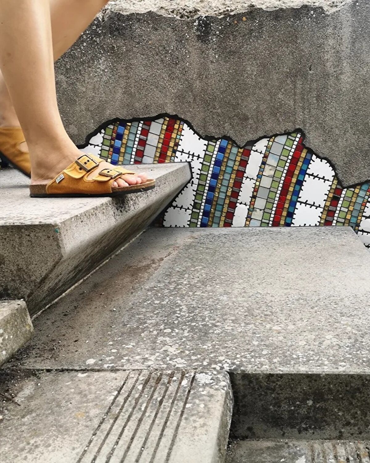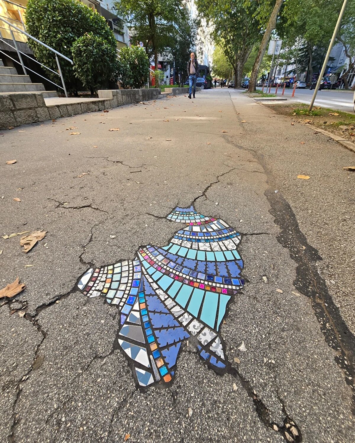Fransa, Lyon'da yaşayan sokak sanatçısı Ememem, çatlak zeminler, kırık yollar ve hasarlı kaldırımları mozaiklerle iyileştirerek sokakları adeta bir açık hava galerisine çeviriyor. @ememem.flacking