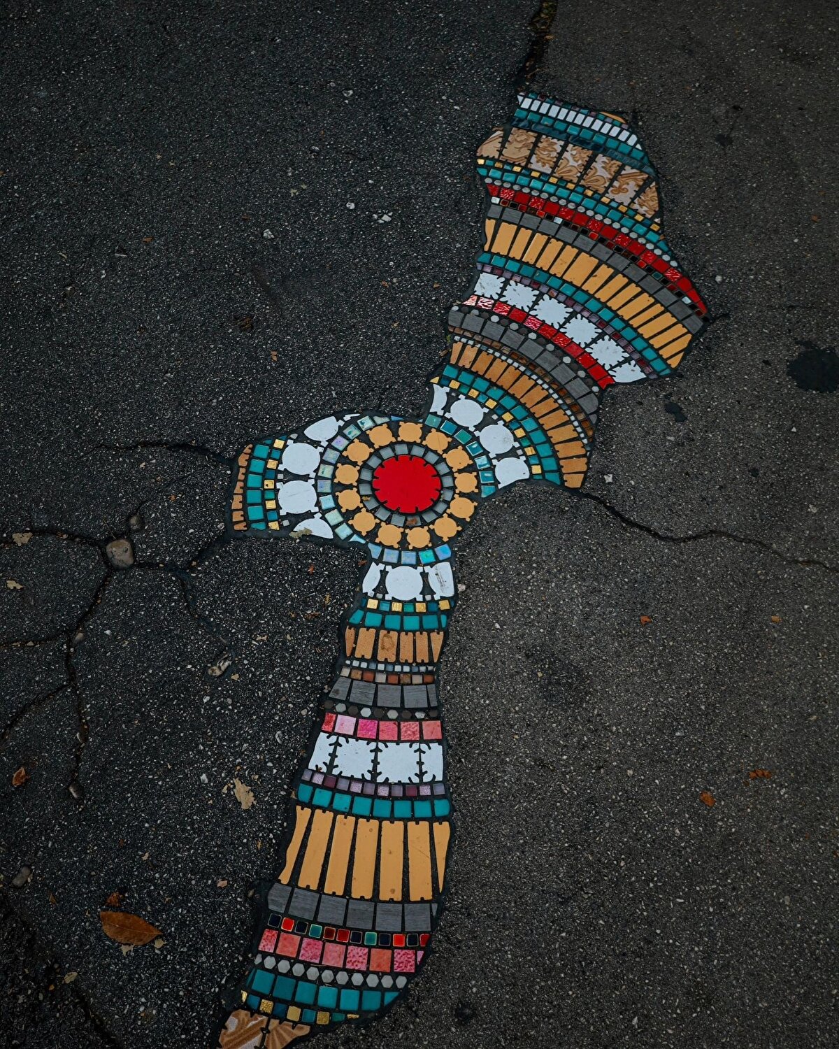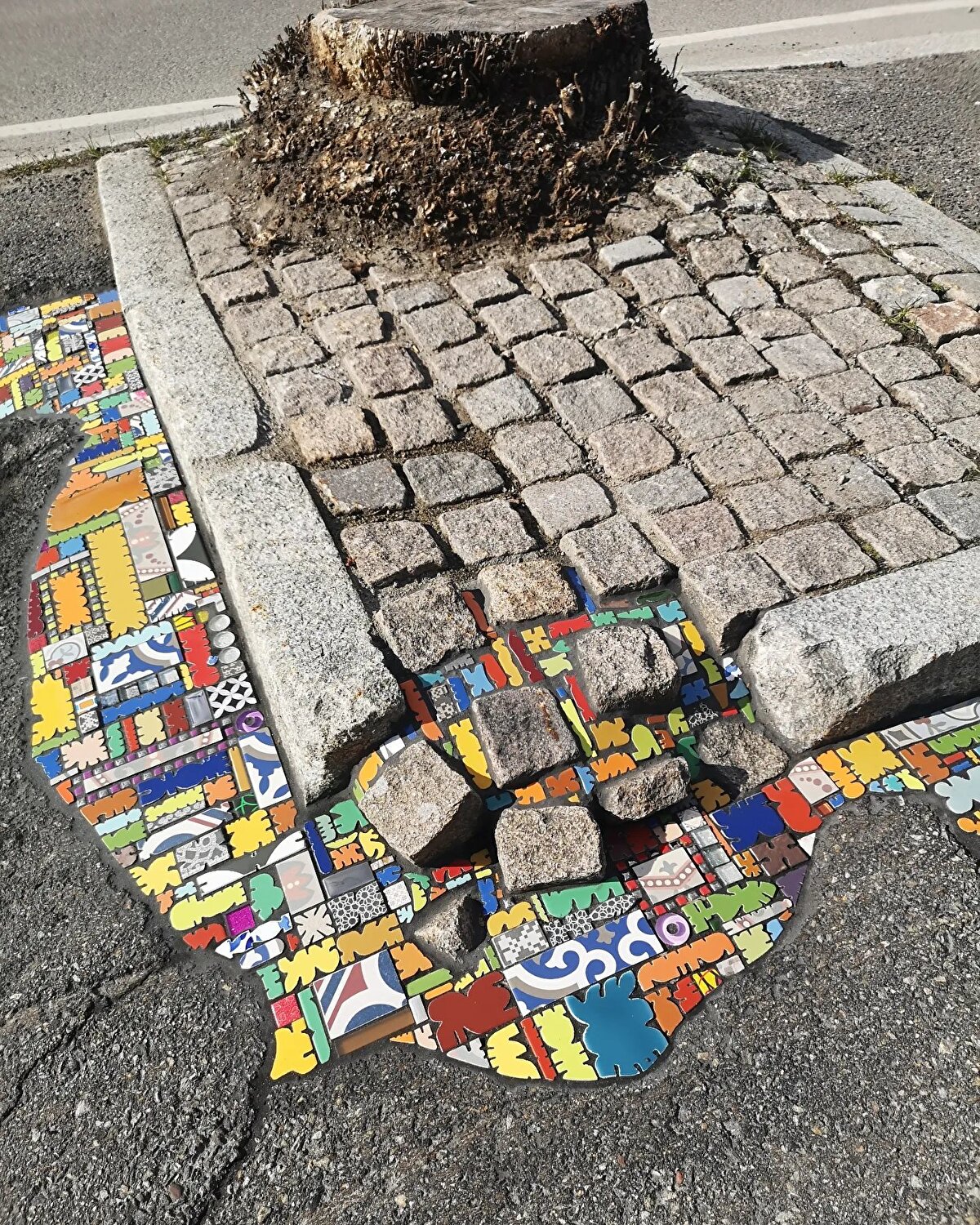 Ememem, a street artist based in Lyon, France, transforms the streets into an open-air gallery by healing cracked floors, broken roads and damaged sidewalks with mosaics. @ememem.flacking