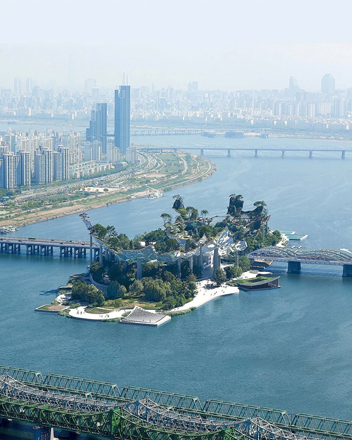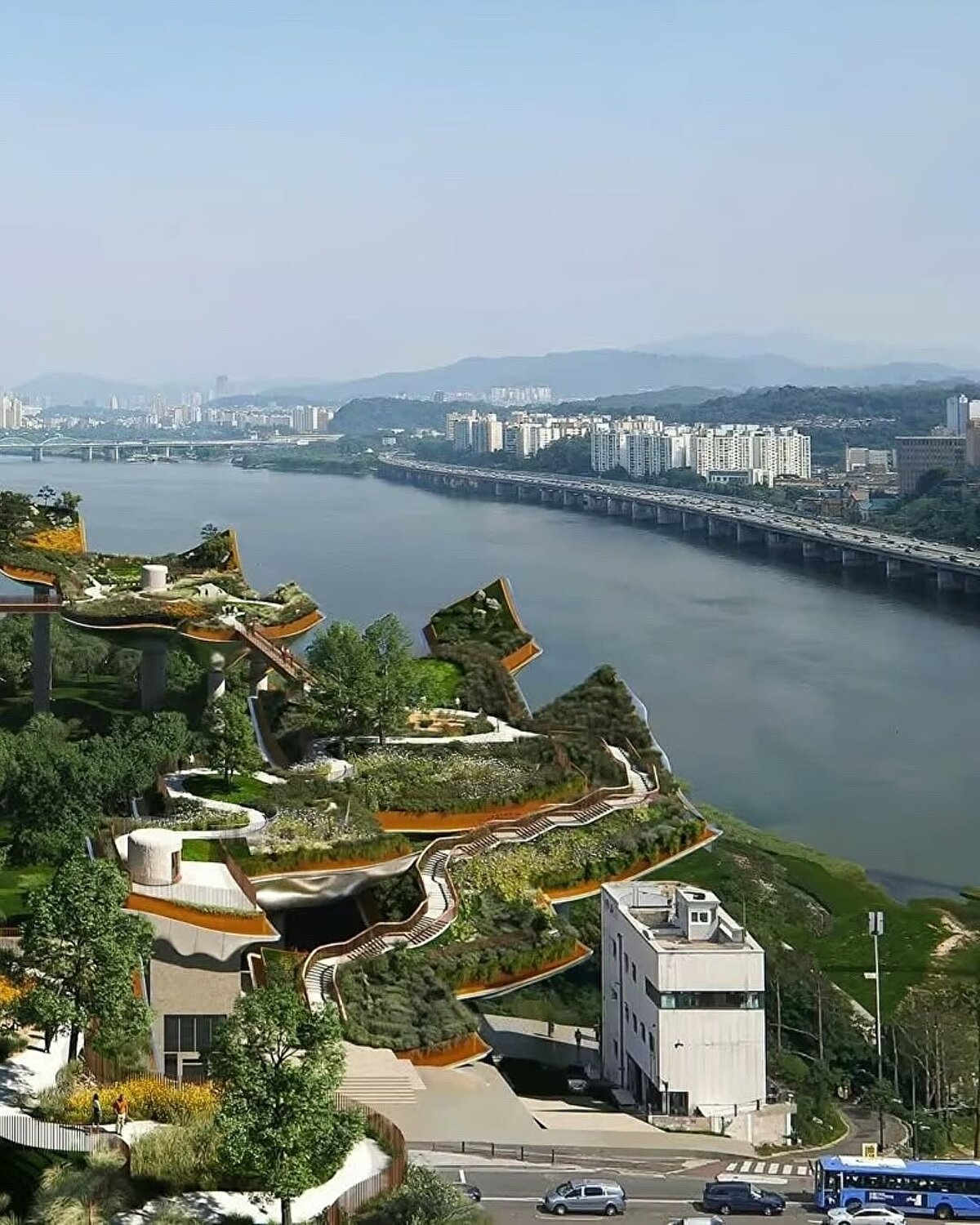 The design is planned to be shaped by a meandering landscape that reflects Seoul's natural landscape and river sounds. The ground floor of the project will include an art center and a public beach, while the upper levels will be supported by walkways and event spaces. The first Heatherwick Studio project in South Korea, the new Nodeul Island is scheduled for completion in 2027.