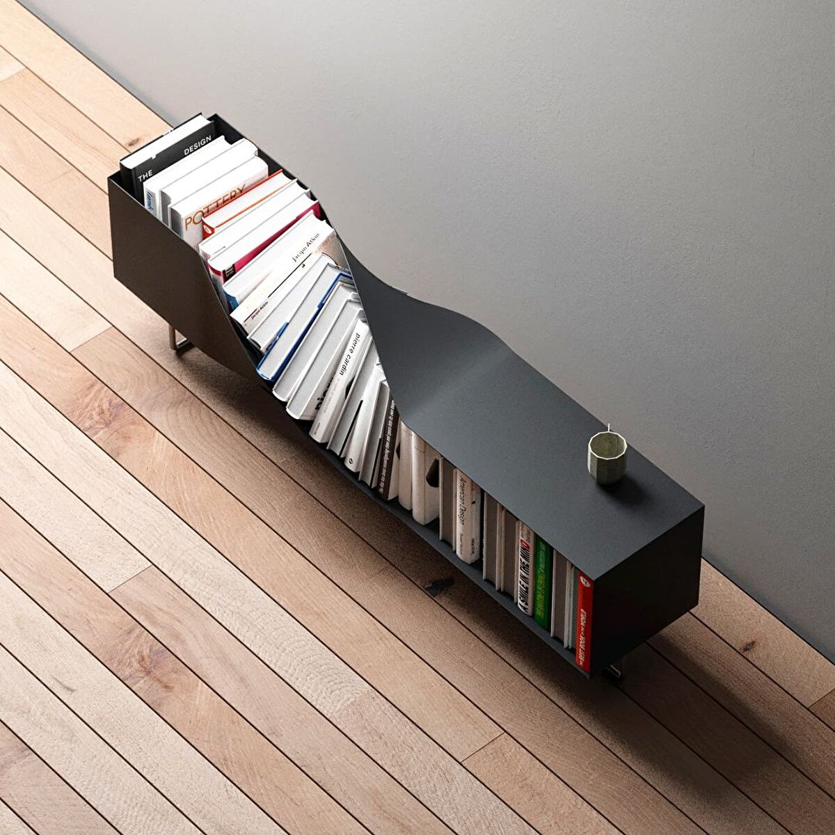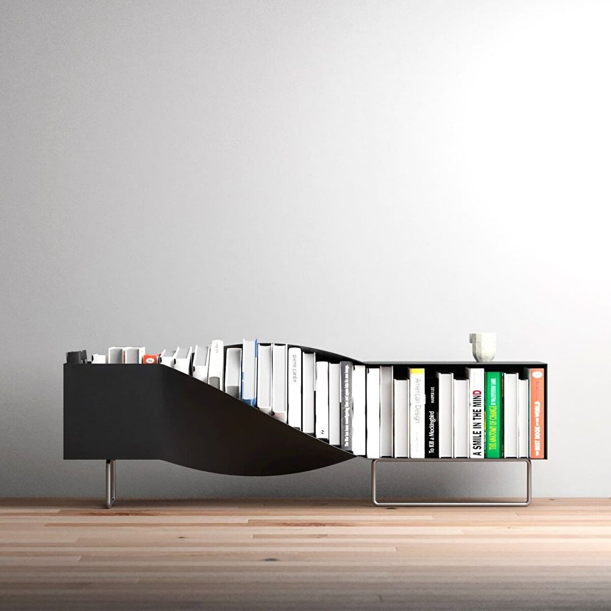 Tasarımcı Deniz Aktay'ın “Bookscrew" adını verdiği çalışması bükümlü formu sayesinde farklı ve çok opsiyonlu bir kullanım sunuyor.