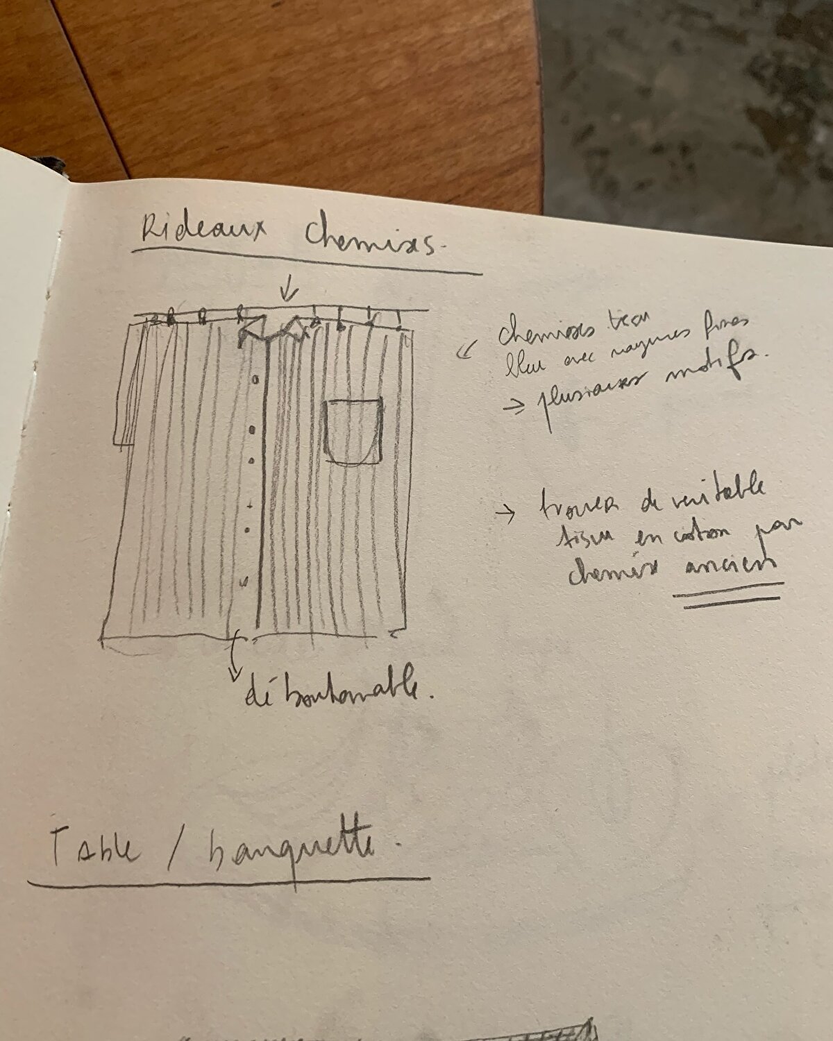 The Rideau-Chemise concept, which started as a sketch five years ago, finally came to life in the exhibition at @34ruelouiseemilie: “A Well-Dressed Apartment."