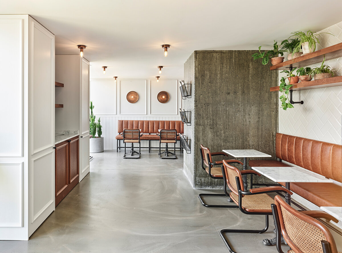 Projenin başlangıç aşamasından itibaren mevcut alan kısıtlamaları giderilmeye çalışılıyor. Tasarımın ilk adımı olarak; kapalı mahaller iç çepere yerleştiriliyor ve ışığın açık ofis alanlarından katın tamamına yayılmasına izin veriliyor.Tavanda ve zeminde kullanılan parlak beton malzeme, yatay yüzeylerde daha sıcak ve dokunsal bir etki oluşturuyor. Ahşap dikme profiller ve tuğlalar, ritmik bir doku içinde bütüncül bir yüzey oluşturuyor.