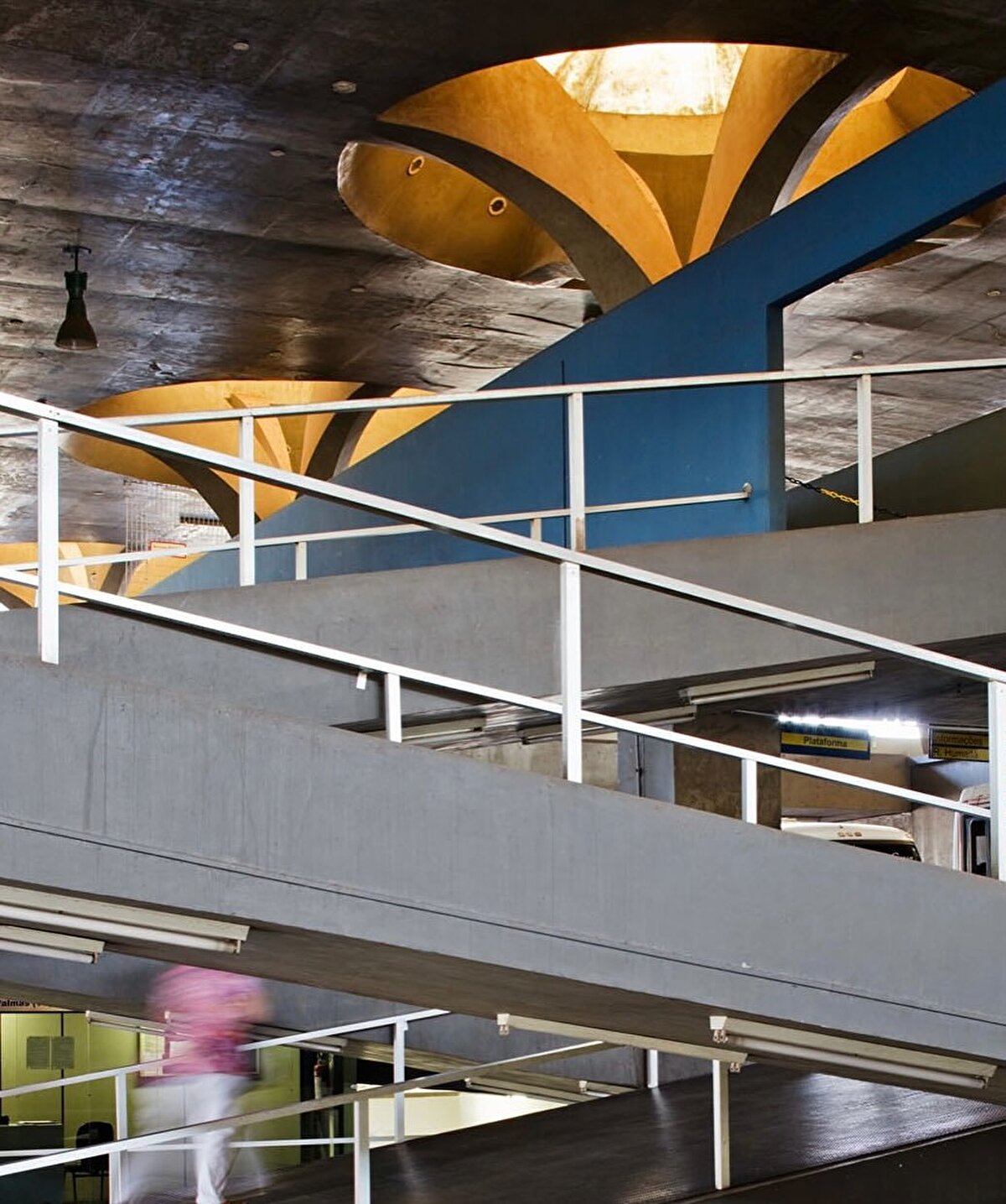 The Bus Terminal in Jaú, São Paulo, was designed by Brazilian modernist architect João Batista Vilanova Artigas between 1973 and 1975. Artigas' emphasis on public spaces and the spatial configuration of circulation is clearly evident in this project. Defined by panels, columns and ramps, the structure is shaped by an open circulation scheme that guides users.