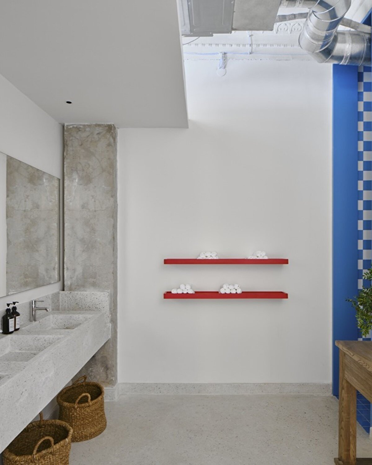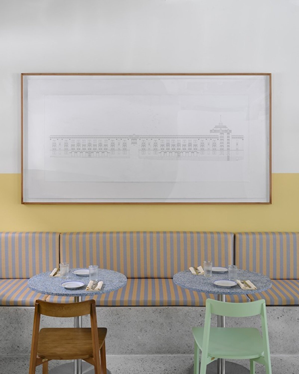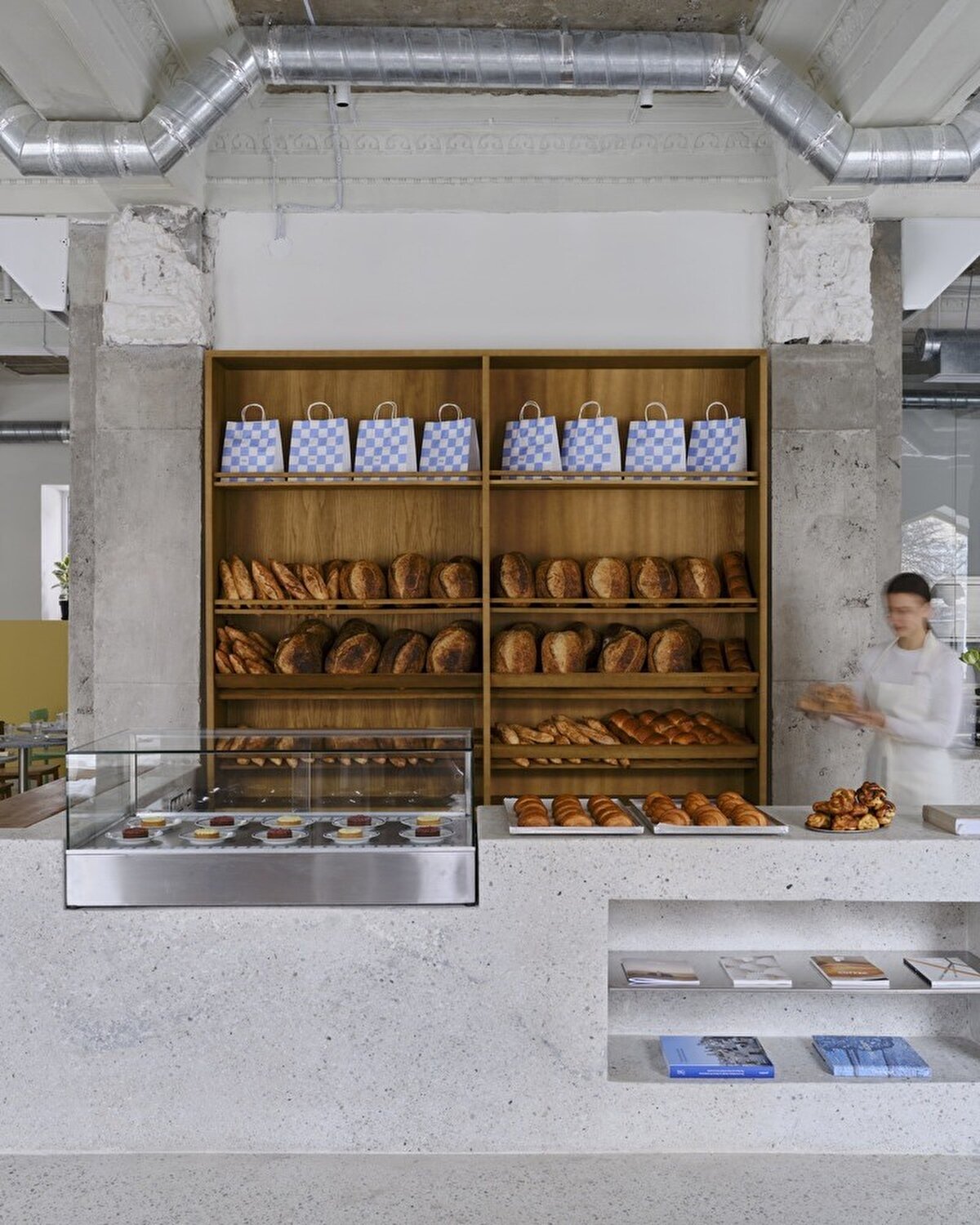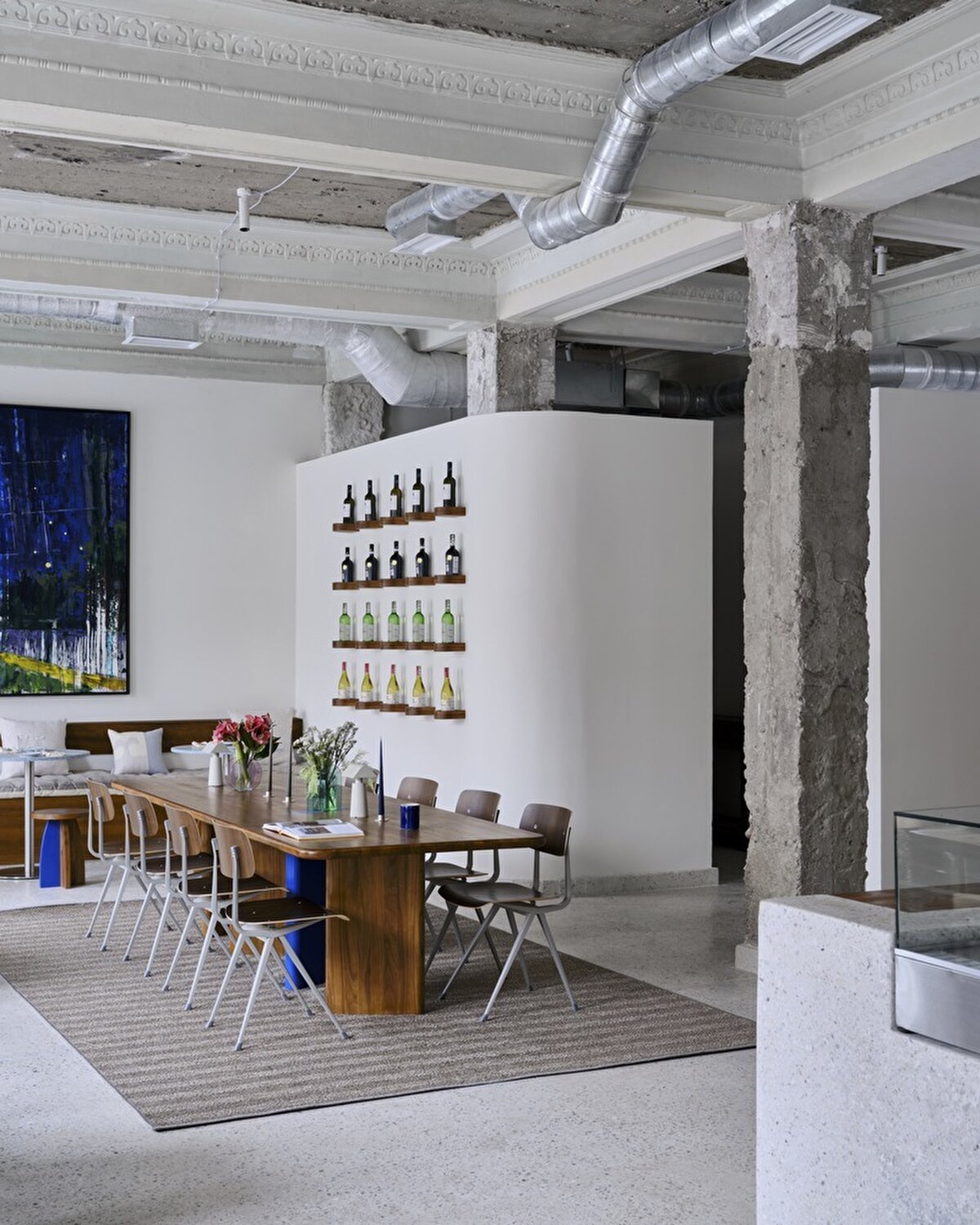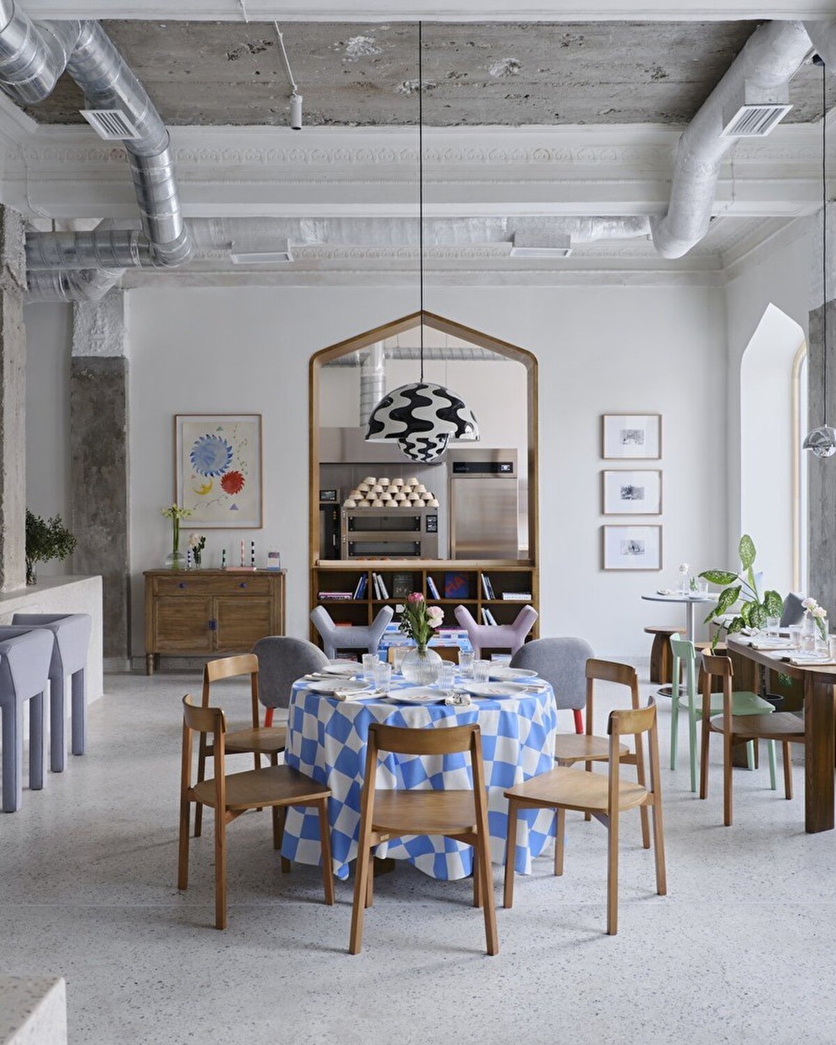 Restoranın en dikkat çekici özelliği, açık alan düzenlemesi. Stüdyo, mekandaki gereksiz duvarları kaldırarak, açık fırın, geniş oturma alanları ve büyük pencerelerle iç mekanı şehrin bir uzantısı haline getiriyor. Zemin malzemesi de dışarıdan başlayarak tüm alanlardan geçip bara kadar uzanıyor.
