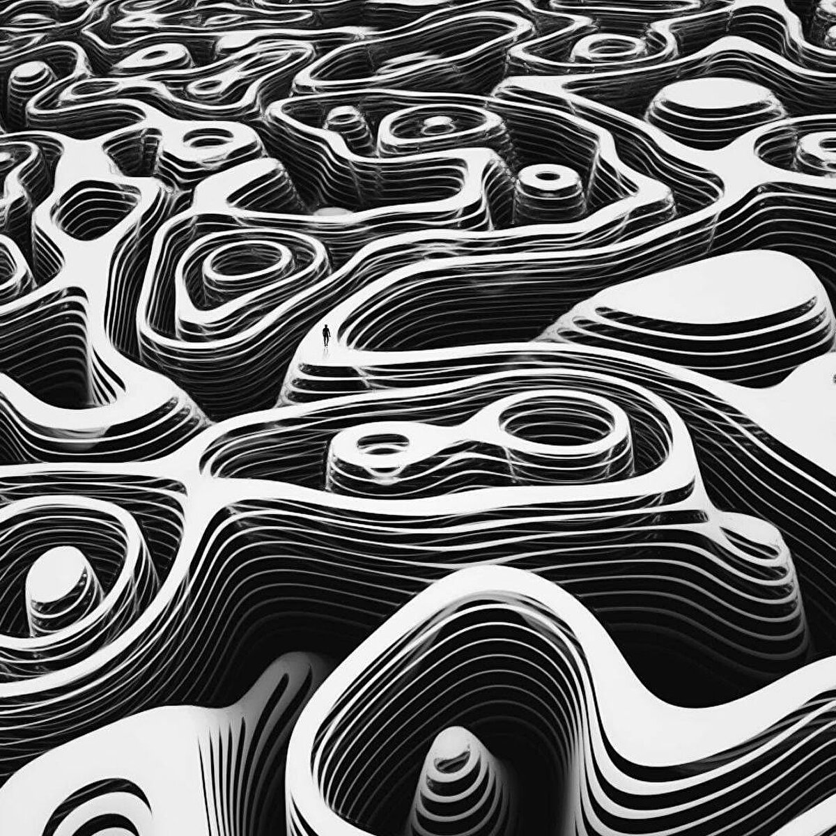 Görsellerinin tamamında yer alan insan figürü, izleyicinin neye baktığına dair algısını değiştiriyor ve soyut tasarımlar 'mekan' oluyor.
