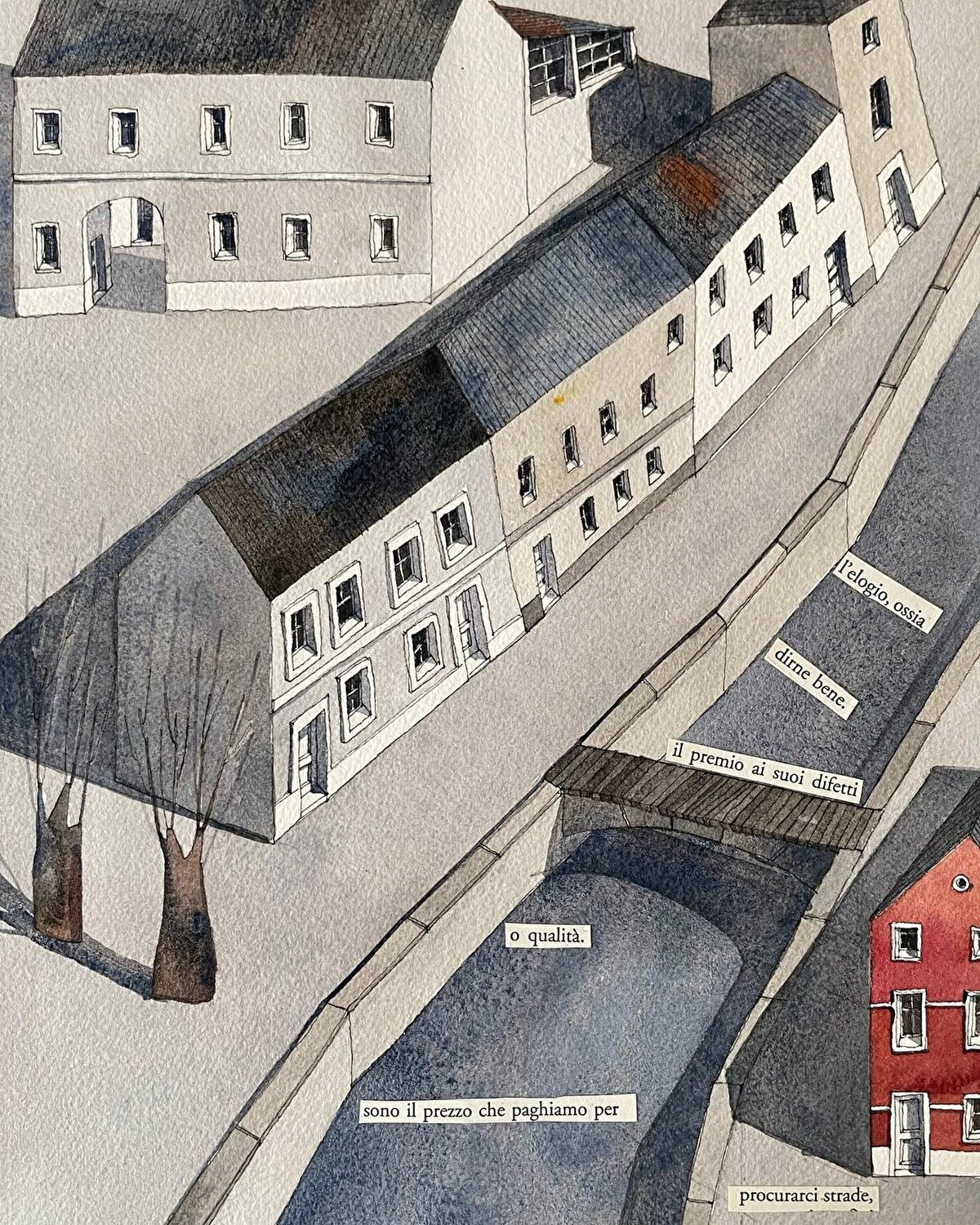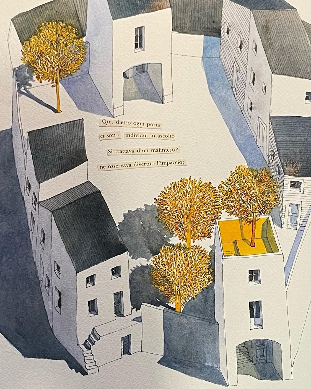 Yazar Cristina Cassanmagnago, yazdığı pasajlardan kesitleri de kullanarak, mimari görsel üretimler oluşturuyor.