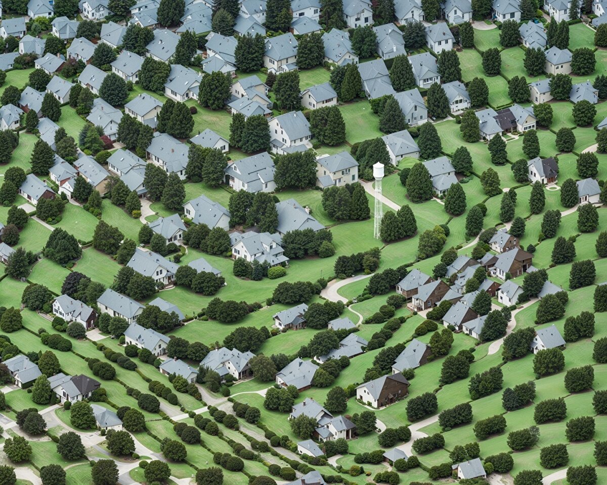 Surrealism, a movement that questions our perception of reality and expands the imagination, is strongly evident in these images. These images, which look like ordinary suburban landscapes when focused on a single frame, proceed in an extraordinary order of repeating forms and twisted perspectives.