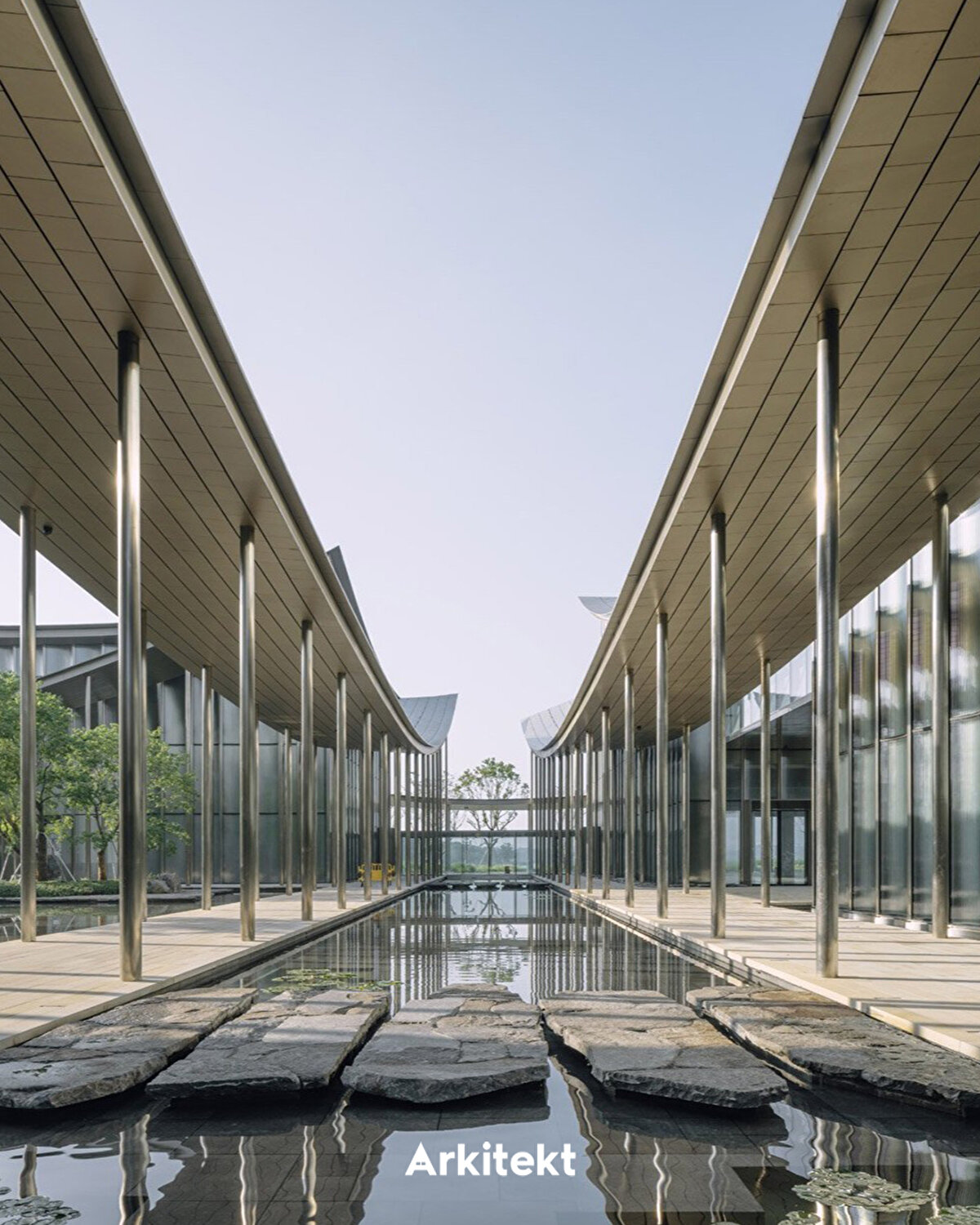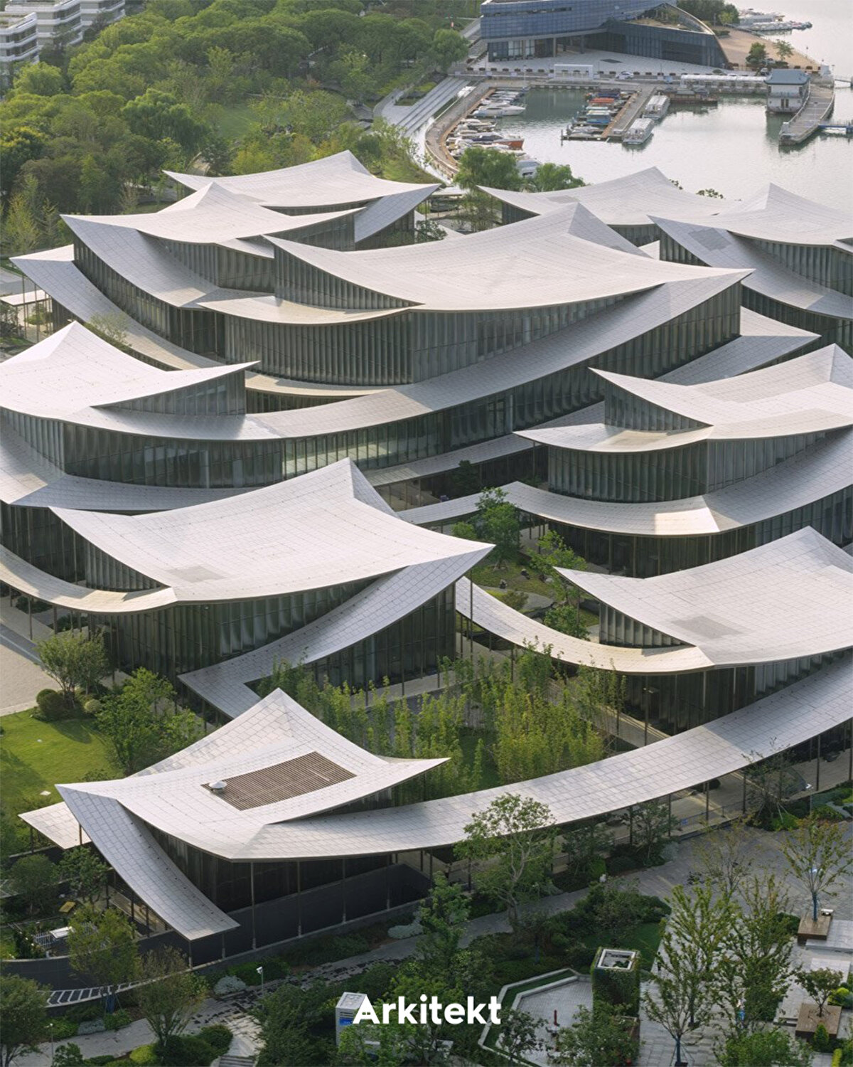 The Suzhou Museum of Contemporary Art in China, designed by BIG (@big_builds), is scheduled to open in 2026. Located along the Jinji Lake waterfront in Suzhou, the 60,000-square-meter museum consists of 12 pavilions under a continuous roof, inspired by the tiled eaves of traditional Chinese architecture. The design reinterprets the concept of “lang," a long, sheltered corridor connecting pavilions commonly seen in Suzhou gardens.