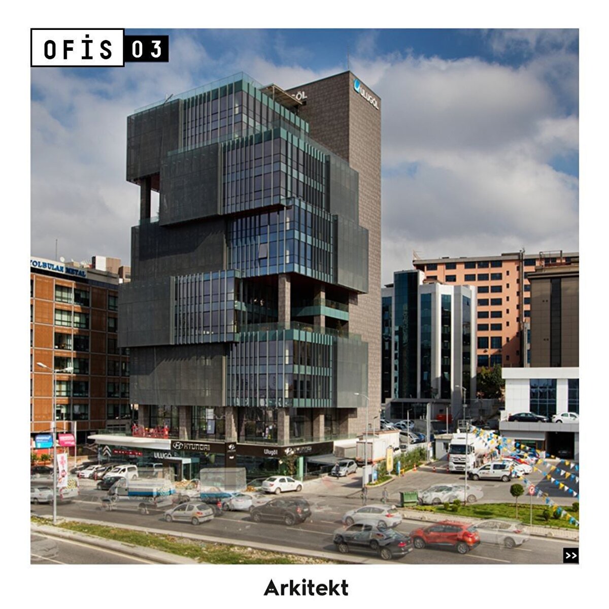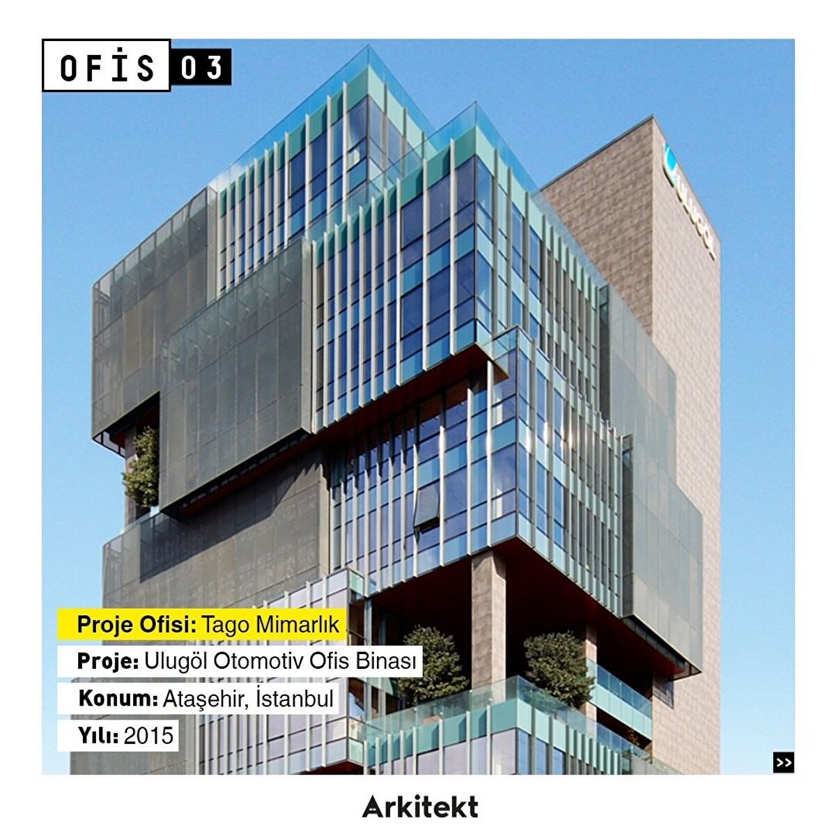 Tago Mimarlık tarafından tasarlanan Ataşehir'deki Ulugöl Otomotiv Ofisi, dinamik cephe formu, terasları ve peyzajı çalışma alanlarına entegre eden standart dışı tasarım anlayışıyla ofis mekanlarına yeni bir yorum getirdi.