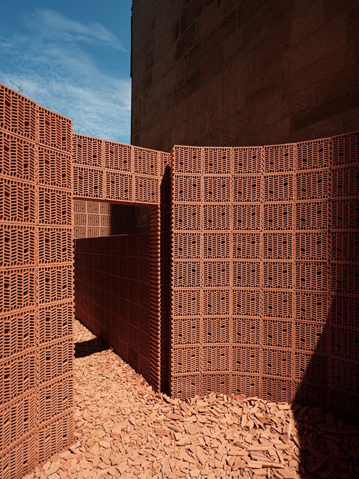 Palma ve Hanghar mimarlık ofisleri, İspanya'nın Logroño kentinde tarihi bacaya giden yolu bir enstalasyona dönüştürdü. @palmamx @hanghar.llc