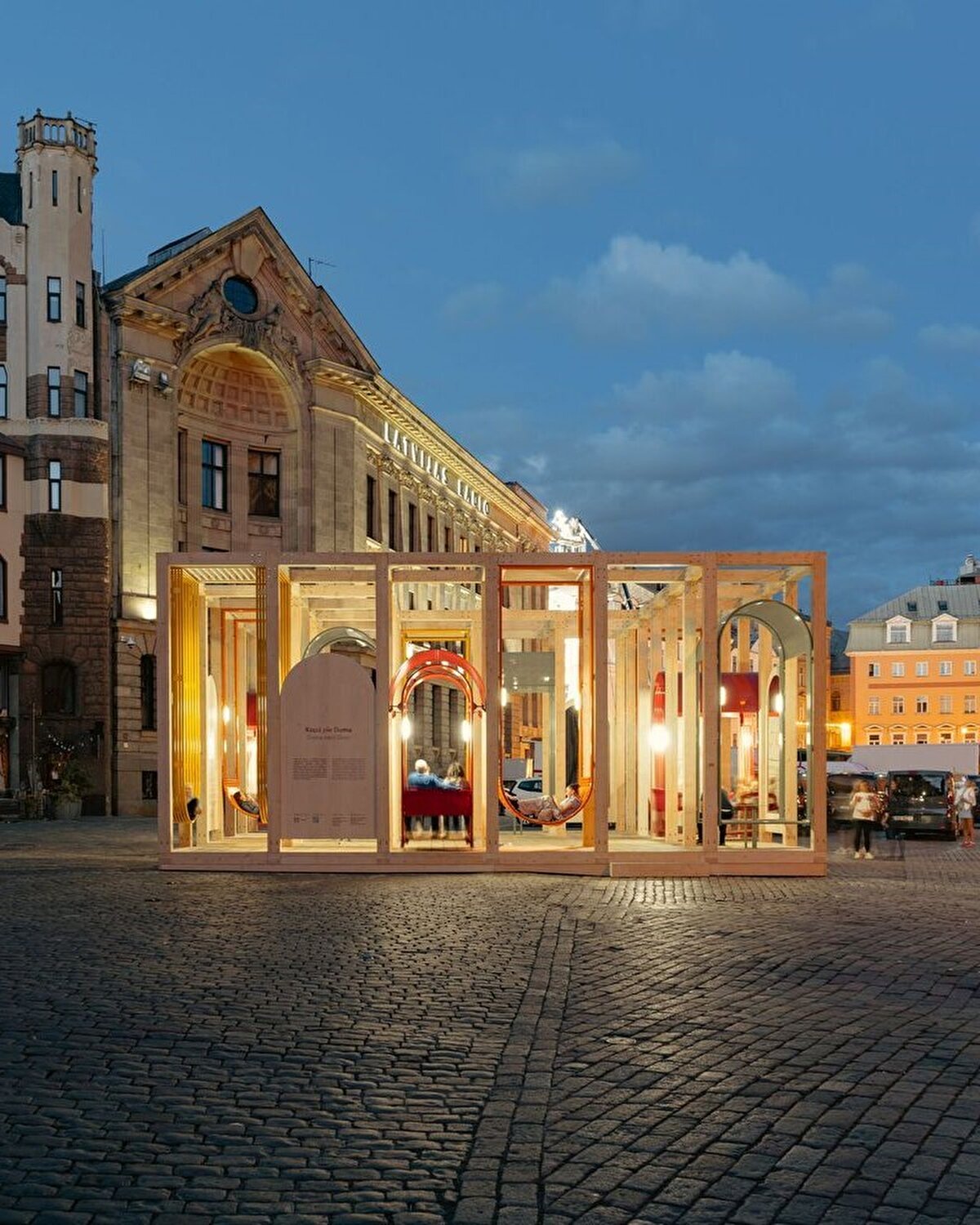 Bu interaktif deneyim, Riga'nın mimari mirasından ilham alarak, Ortaçağ tonozları ve Dome Katedrali'nin geometrik unsurlarını çağdaş bir perspektifle yeniden canlandırdı. Ziyaretçiler, burada hamakta dinlenebiliyor, rahatlatıcı bir pikniğin keyfini çıkarabiliyor, sevdikleriyle buluşabiliyor, aynaların yansımalarıyla oynayabiliyor, kilise manzarası eşliğinde sallanabiliyordu. Eski ve yeninin buluştuğu bu alan, herkesi rahatlamaya, etkileşim kurmaya ve hayal gücünü serbest bırakmaya davet ediyordu.