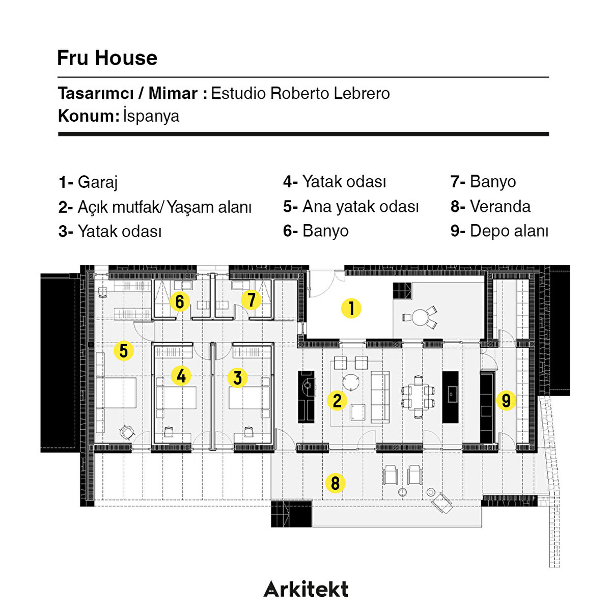 Malzemenin yeniden kullanılmasına ve yerel inşaat tekniklerine vurgu yapan tasarım, basit plan şemasıyla dikkat çekiyor.