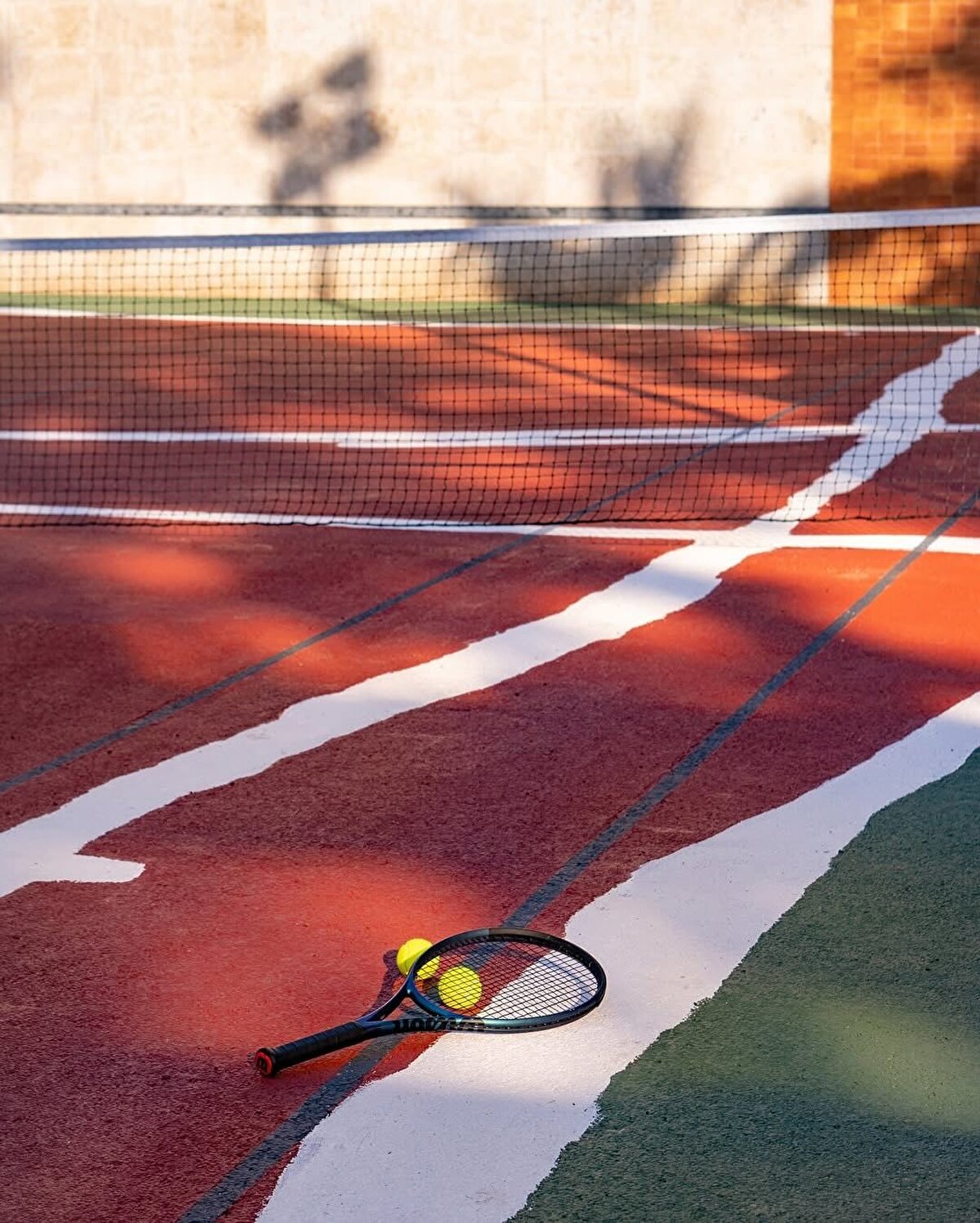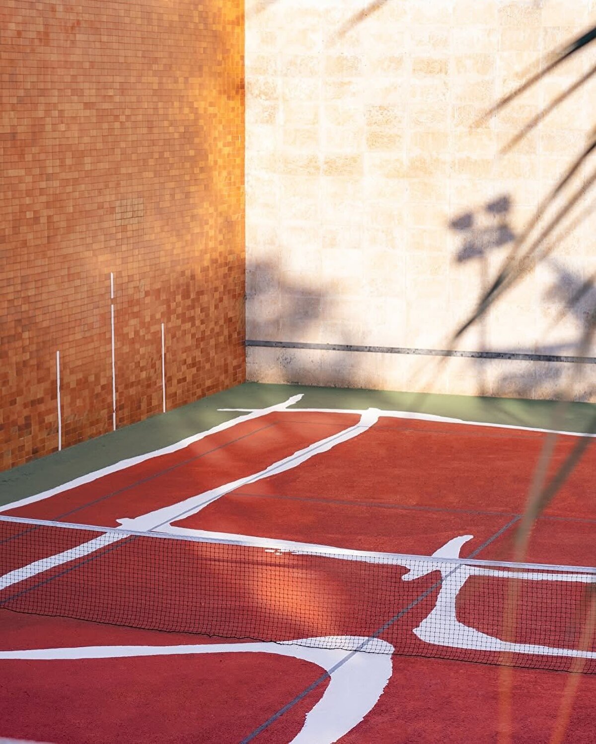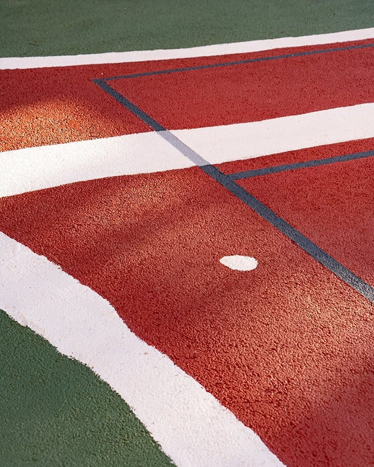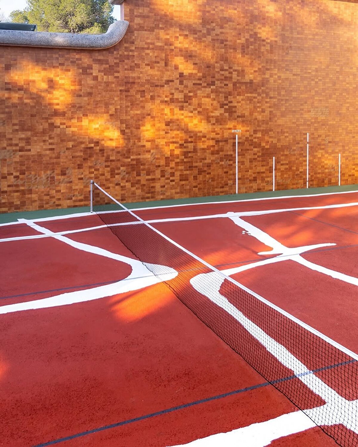 İspanya'nın Valensiya kentinde yer alan Casa Axis'in mevcut peyzaj düzenlemesi kapsamında, sanatçı Felipe Pantone tarafından tasarlanan bu tenis kortu, farklı yaklaşımıyla dikkat çekiyor. El boyamasıyla oluşturulan zemin grafiği, klasik spor alanı çizgilerini bozan bir yaklaşımla yüzeyin algısal sınırlarını yeniden yorumluyor.