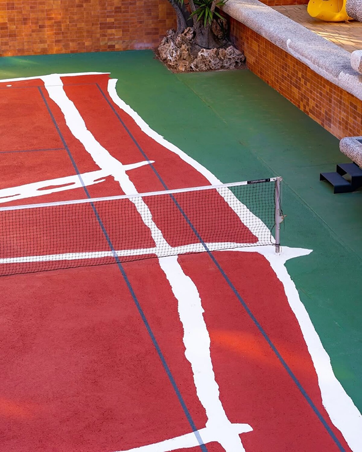 Located in Valencia, Spain, this tennis court designed by artist Felipe Pantone as part of the existing landscape design of Casa Axis attracts attention with its unique approach. The floor graphics, created by hand painting, reinterpret the perceptual boundaries of the surface with an approach that breaks the classic lines of a sports field.