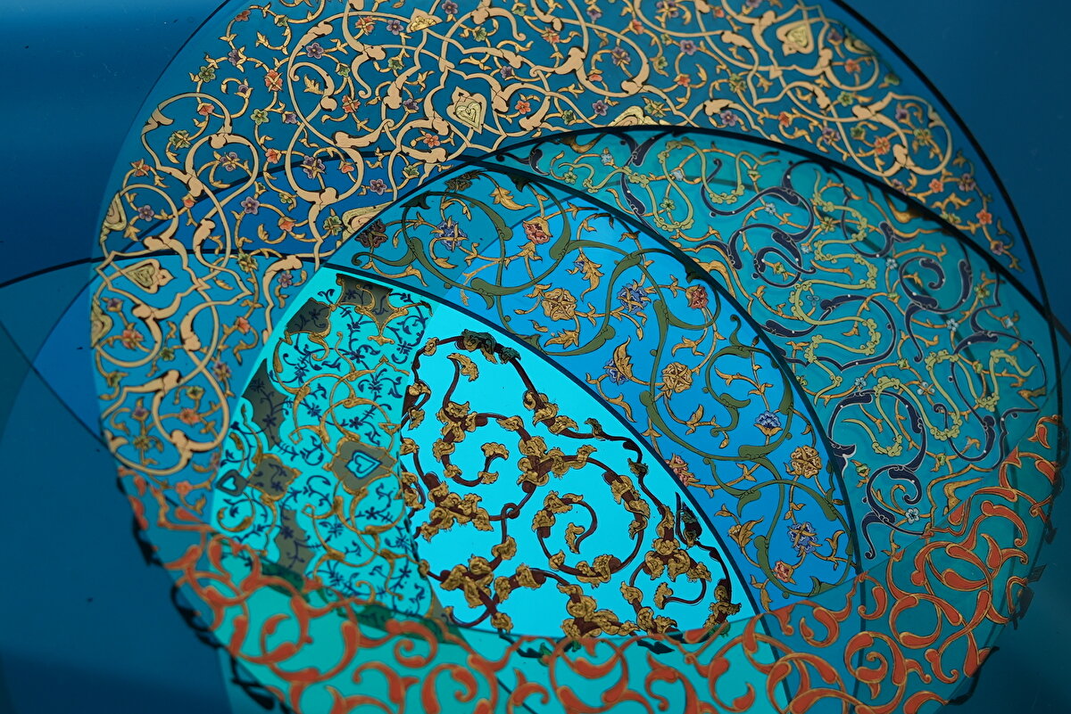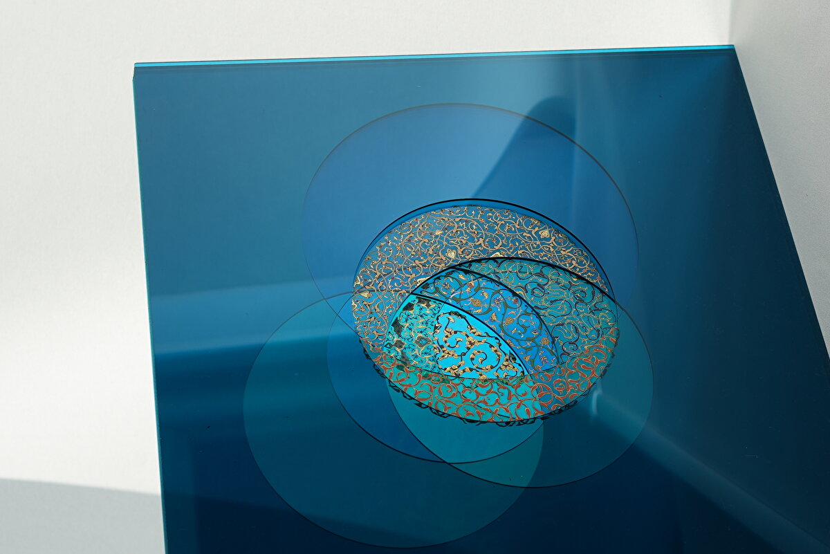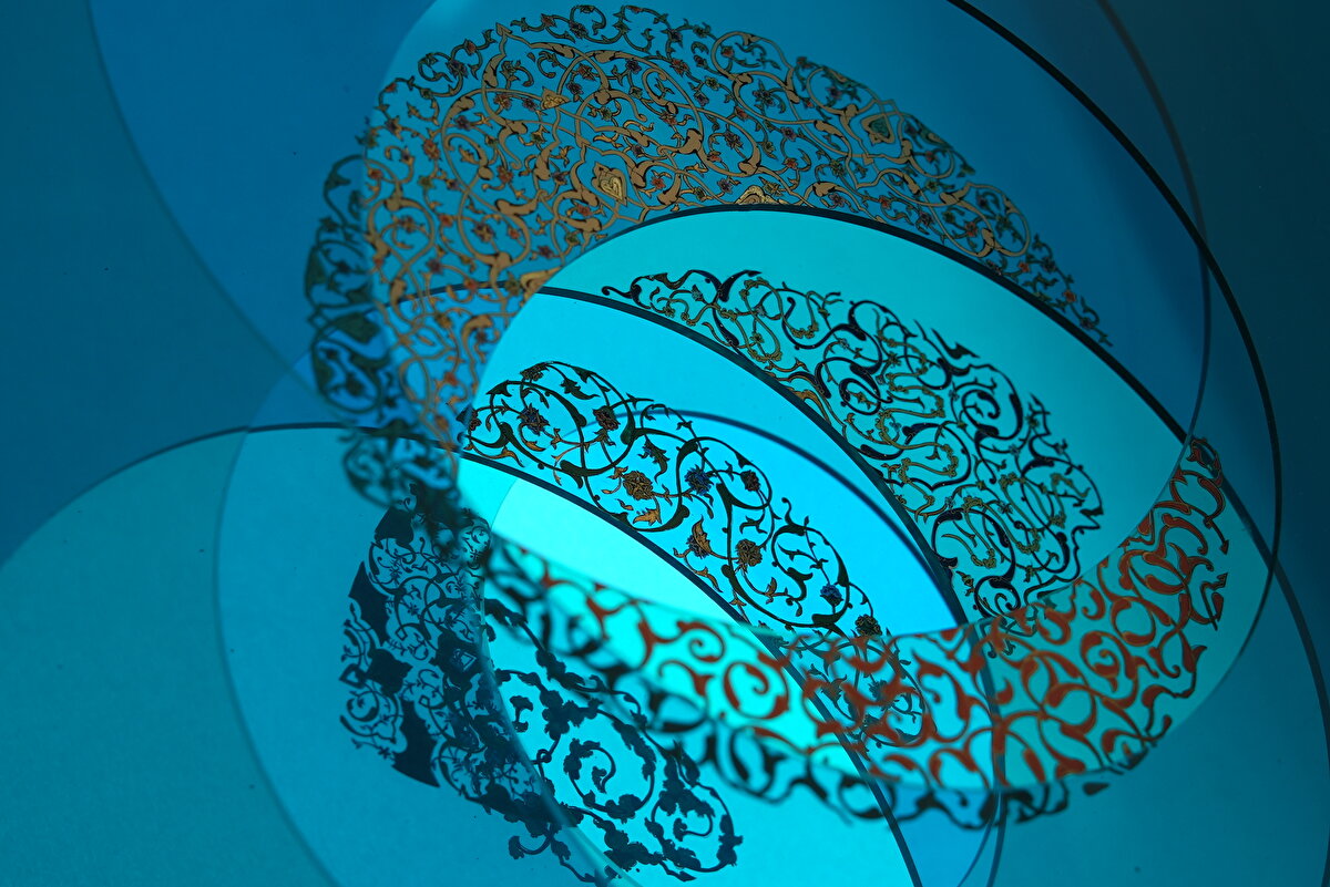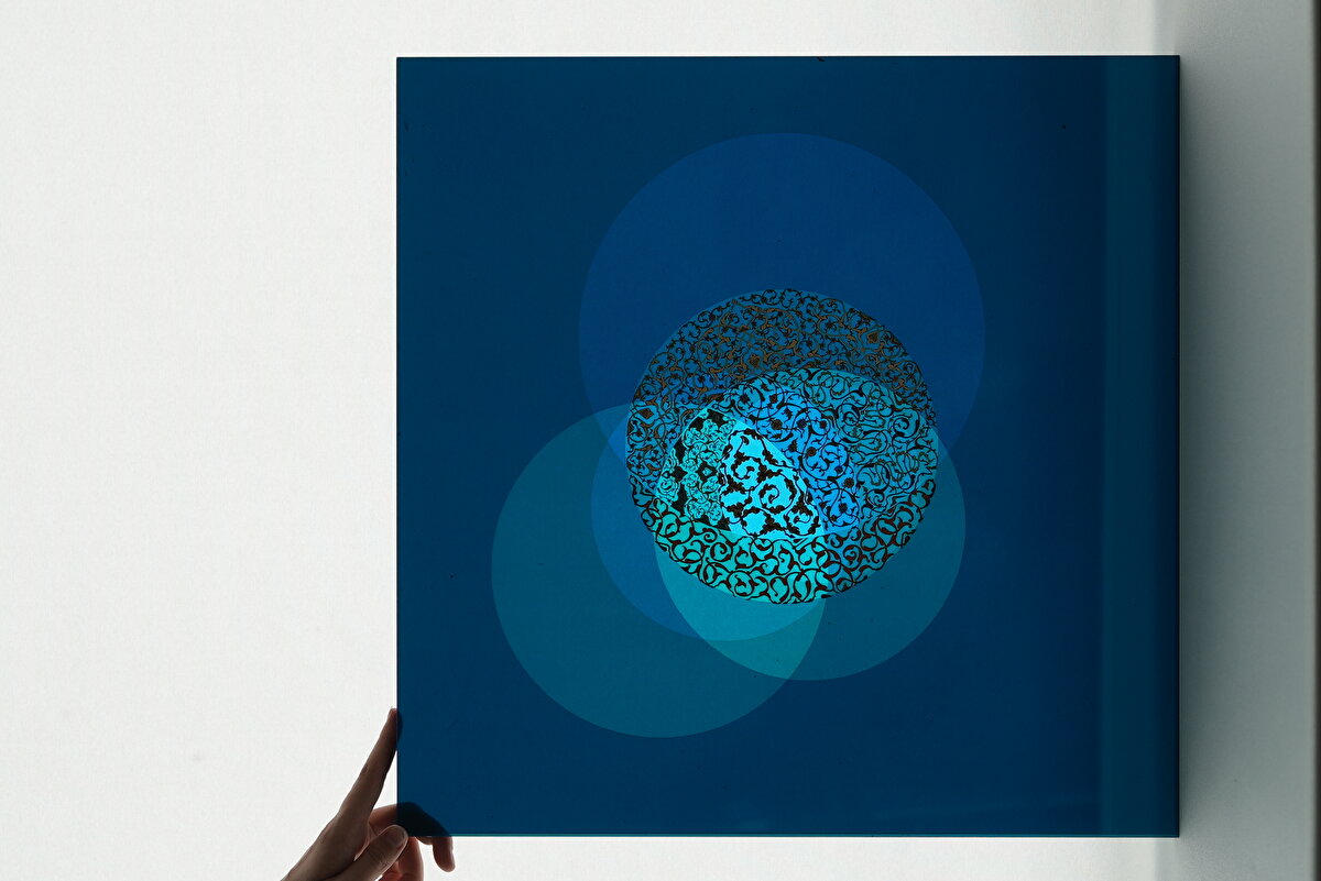 Tezhibin hissiyatını ve ince işçiliğini korurken modern malzemelerle yeni katmanlar oluşturmayı hedefleyen Özen, pleksinin tüm eserde ışıkla ve hareketle birlikte, bakış açısına göre değişkenlik gösteren yenilikçi bir yaklaşım oluşturduğunu ifade ediyor.