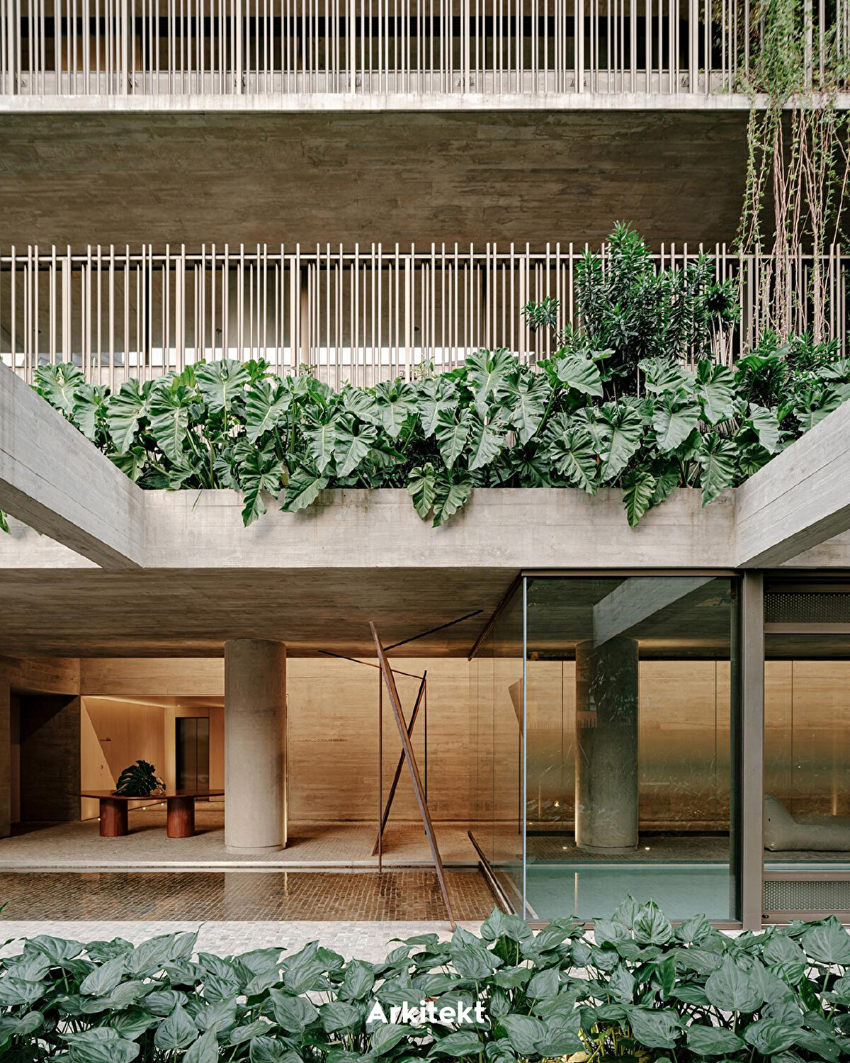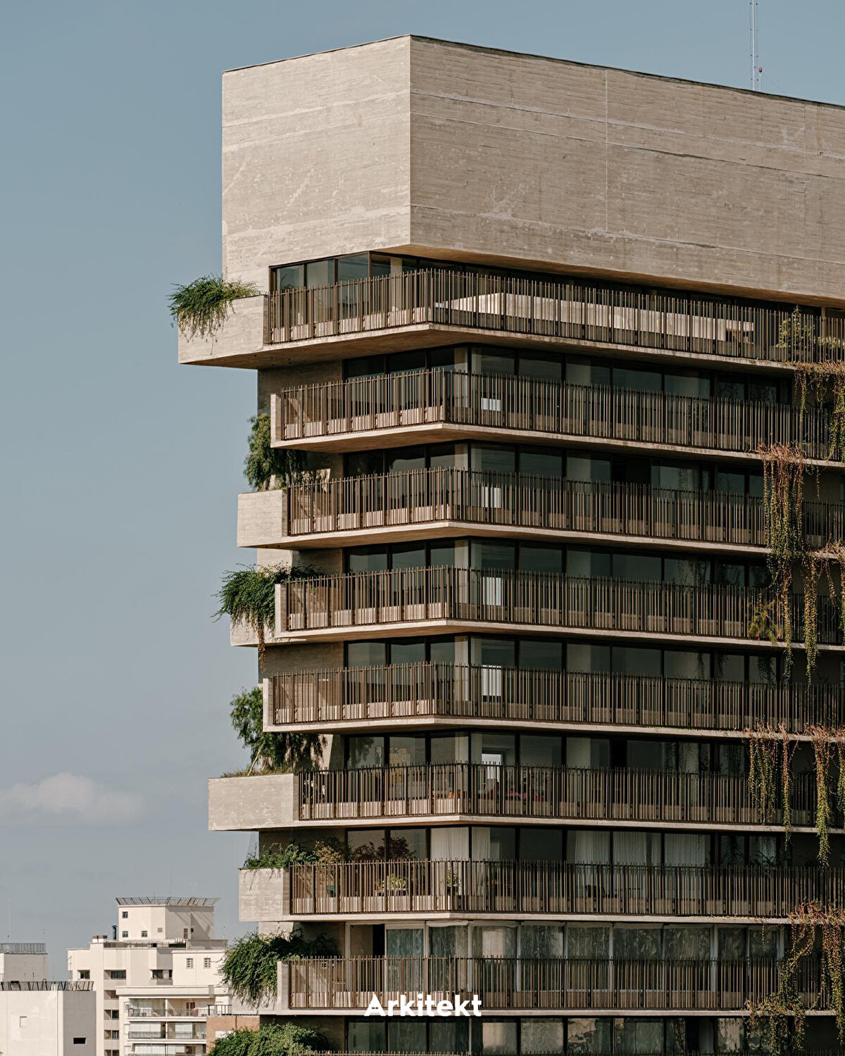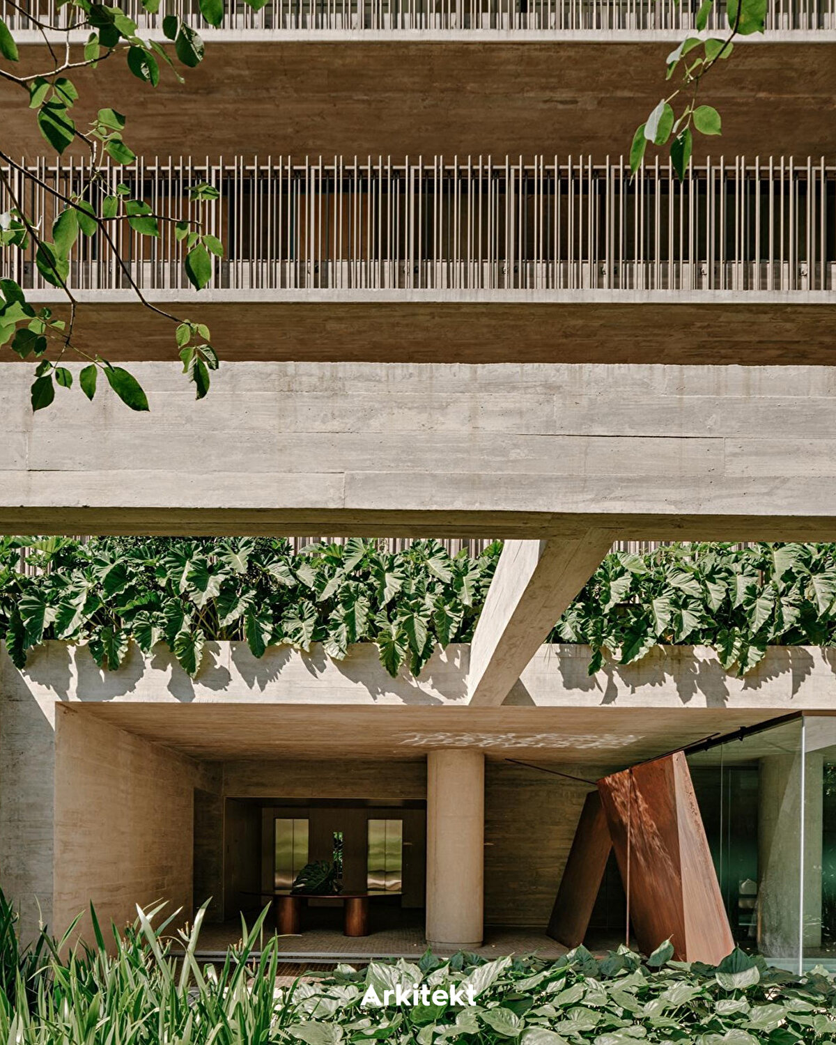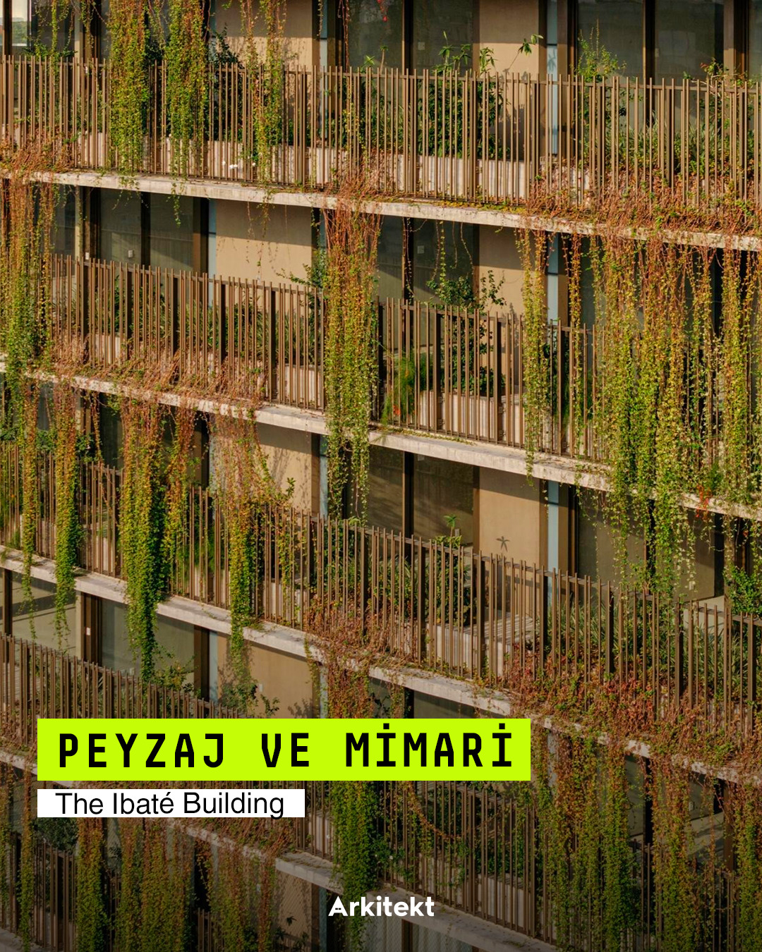 The Ibaté Building, Studio Arthur Casas tarafından 2025 yılında São Paulo'nun Vila Nova Conceição bölgesinde tasarlanıyor. Proje, dikey bahçe sistemini cephe tasarımının bir bileşeni olarak ele alarak yapının mikroklimatik konforunu ve çevresel performansını güçlendiriyor. Pigmentli ve nervürlü yüzeye sahip beton cephe boyunca konumlanan saksı modülleri, her katta farklı bir düzende yer alıyor. Bu sistem, bitkisel katmanların sürekliliğini sağlarken cepheye derinlik, gölgeleme ve doğal havalandırma sağlıyor.