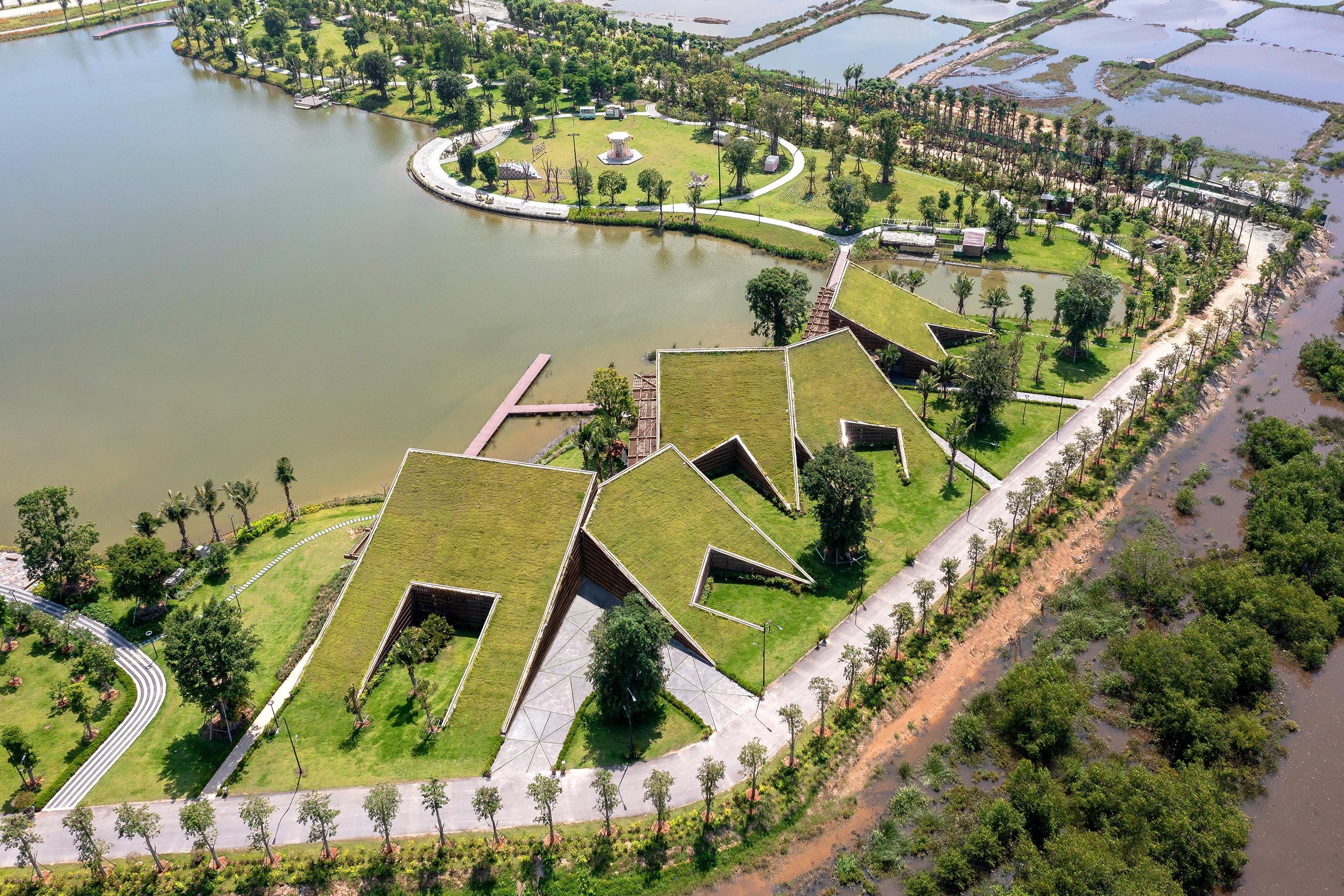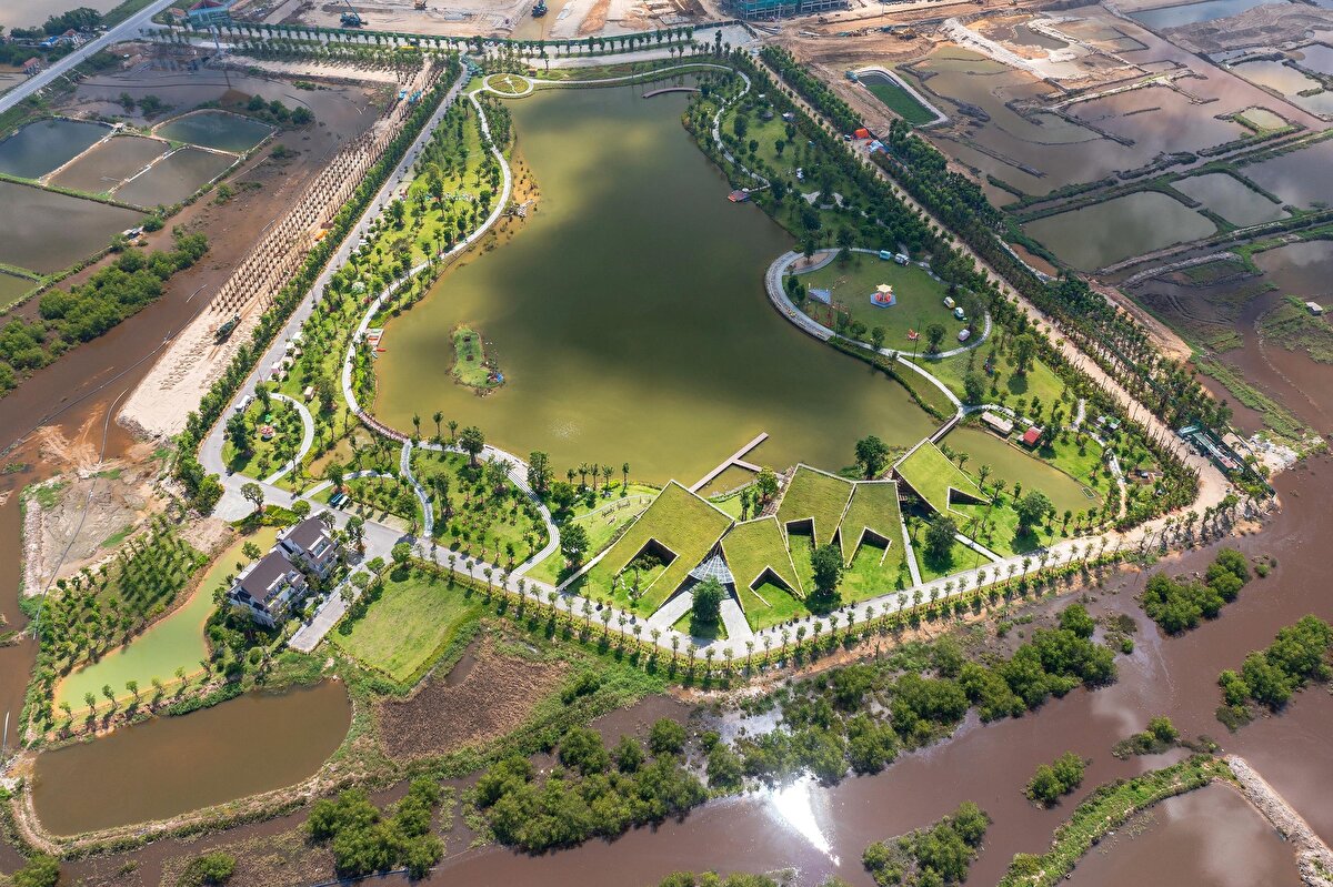MIA Tasarım Stüdyosu tarafından Vinh'de tasarlanan ve 2023'te tamamlanan The Park, kentsel çevre içinde peyzajla bütünleşen bir kamusal tesis işlevi görüyor. Proje, ana trafik eksenine uyumlu yerleşimiyle geniş yeşil alanları yapı kütlesiyle ilişkilendiriyor. Mevcut topografyadan alınan referanslarla işlevsel alanlar göl manzarasına doğru açılıyor ve yamaç bahçeleriyle süreklilik sağlanıyor.