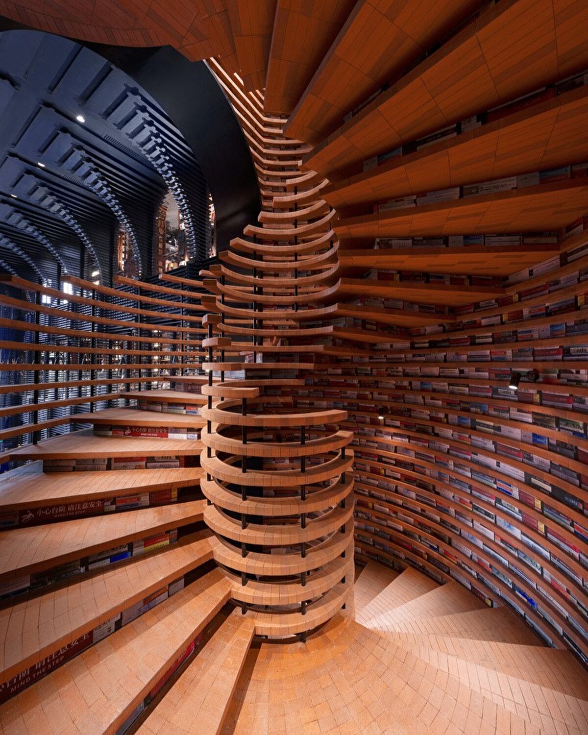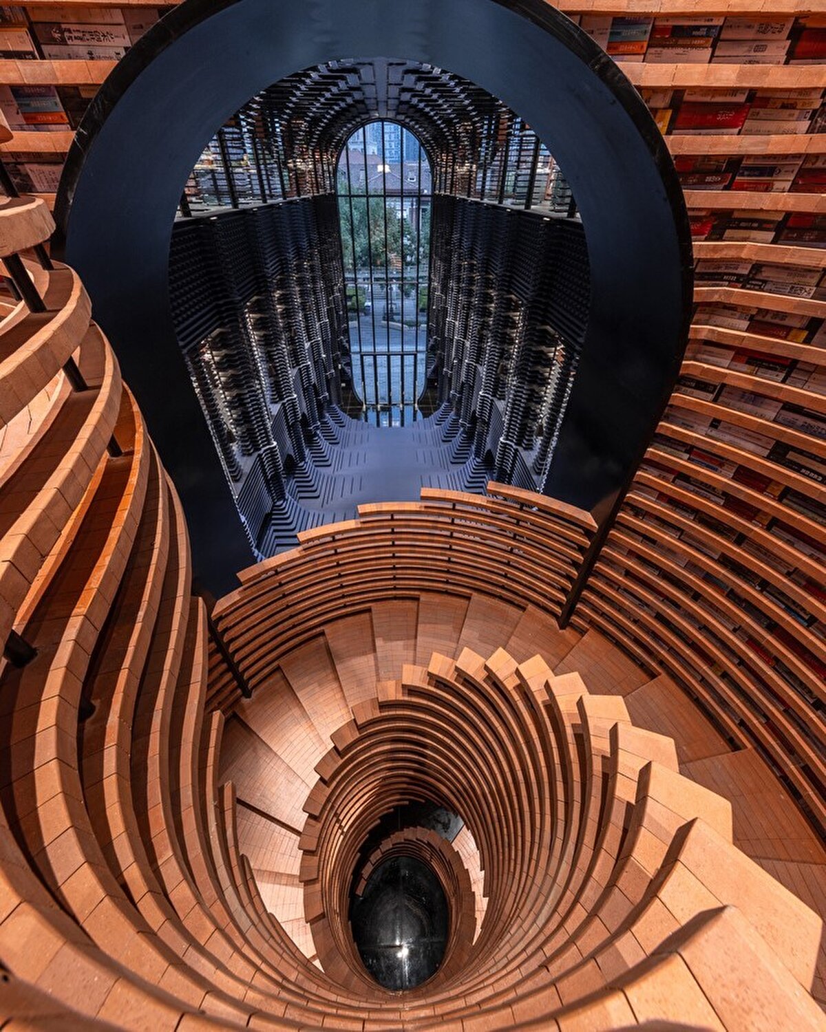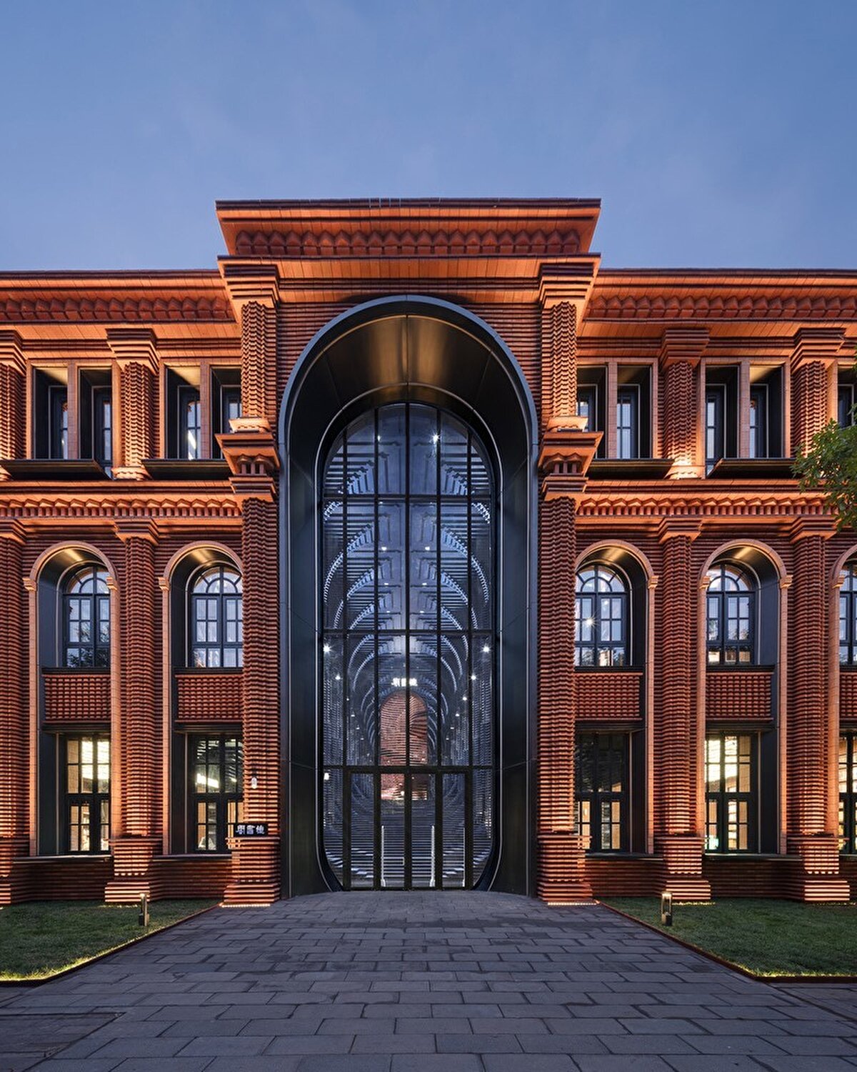 Tianjin Zhongshuge Kütüphanesi, yüzyıllık İtalyan mimarisinin dikkat çekici örneklerinin bulunduğu ve kırmızı tuğlalarla tanımlanan Tianjin'in İtalyan tarzı bölgesinde konumlanıyor. İlk olarak modern ve çevresindeki klasik dokudan bağımsız bir bina olarak tasarlanan Tianjin Zhongshuge'nin yeni düzenlemesi, bölgenin kültürel atmosferine uyum sağlayan bir mimari ve iç tasarım entegrasyonunu zorunlu kılıyor. Bu proje için İtalyan mimarisinin temel yapı malzemesi olan kırmızı tuğlalar, tasarımın ana unsurlarından biri haline geliyor.